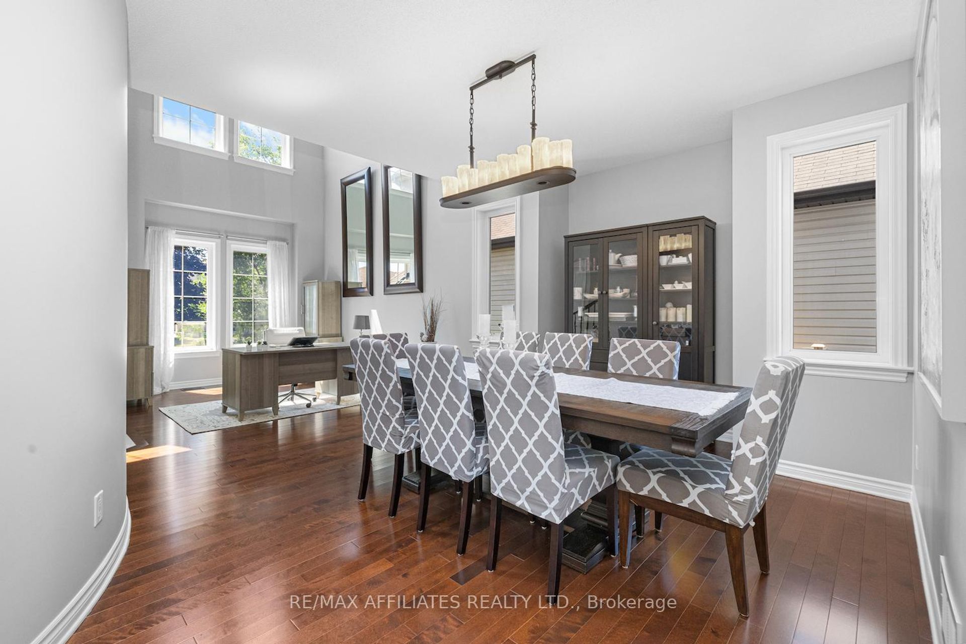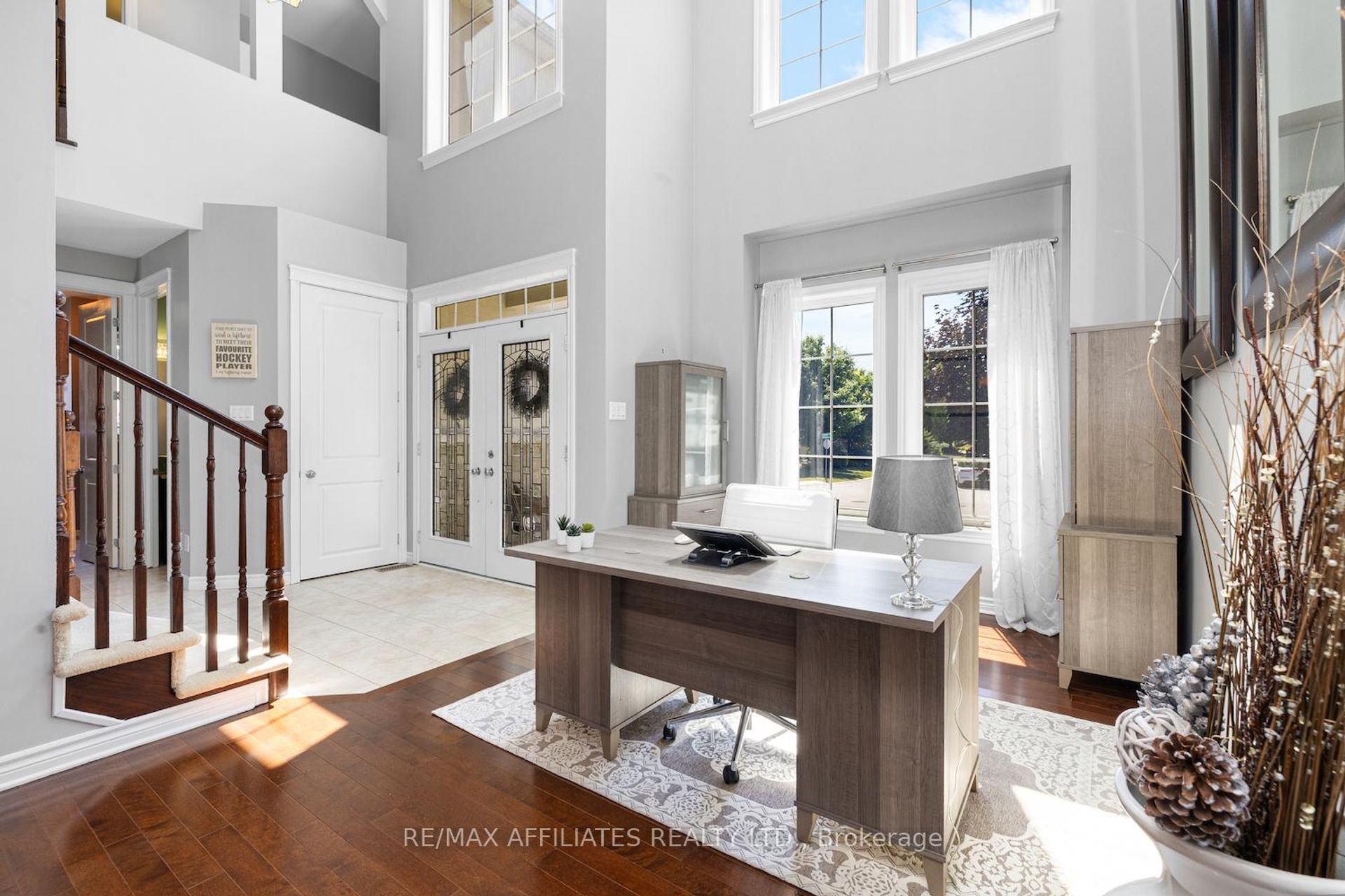"Go confidently in the direction of your dreams. Live the life you have imagined." - Thoreau. And if that life includes elegant design, thoughtful upgrades, and a location that connects nature, community, and convenience, this 4-bedroom, 3-bath home is the one to see. Set on a generous lot with a fully fenced yard, this home blends traditional charm with contemporary finishes. Double glass French doors welcome you into a sun-soaked main level with 9' ceilings, striking 8' doors, and a stunning 17' ceiling in the family and living rooms. A curved wood staircase adds just the right touch of drama. Deslaurier custom cabinetry, granite counters, upgraded light fixtures, and floor-to-ceiling custom drapes in the family room show that no detail was overlooked. The layout flows with purpose: formal living and dining rooms for special occasions, plus an eat-in kitchen and sun-soaked family room for everyday life. Theres even a dedicated main floor office for the remote work crowd.The 2-car garage, and parking for 6 vehicles ensure practicality meets polish. Downstairs, the unfinished basement offers oversized windows, perfect for future bedrooms or a bright rec space. Outside, the back deck has built-in stair lighting for evening ambiance, while the gazebo with electrical invites lingering late-summer dinners. You're just a short stroll to parks, schools, the arena, and Mississippi River trails. Even downtown is walkable, your morning coffee and evening ice cream cones are closer than you think.This is more than a home, it's a lifestyle built for connection, comfort, and a touch of everyday luxury.