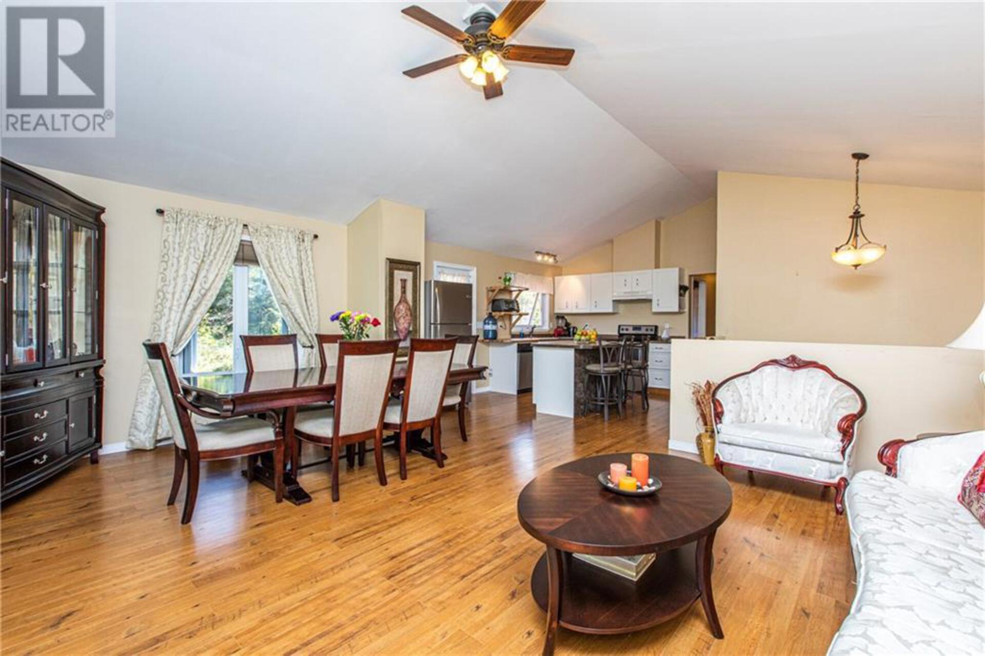 Welcome home to the stunning 1069 Burney Point Road! This home is privacy and comfort at its finest. The home sits on over 8.5 acres of beautiful land near Sharbot Lake. Walking up the stairs into the upper level of the home is a lovely open concept living and dining area. The kitchen features a tasteful island, and a door leading to your wonderfully maintained, large deck and back yard. Every room in this home experiences an absolute abundance of natural light pouring in through the large windows. The primary bedroom features a private walkout to the deck and an entrance to a full bathroom! The secondary and tertiary bedrooms on the upper level are both spacious and filled with natural lighting. Walking downstairs into the finished lower level, you will immediately notice the walkout doors, the second full kitchen, large living room and dining area, spacious bedroom, full bathroom, laundry room, and a huge storage area. This really is your own private oasis! (id:14735)