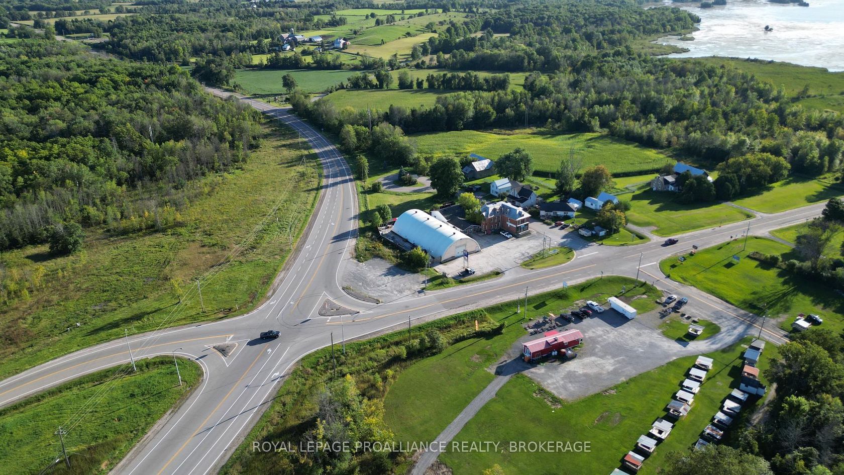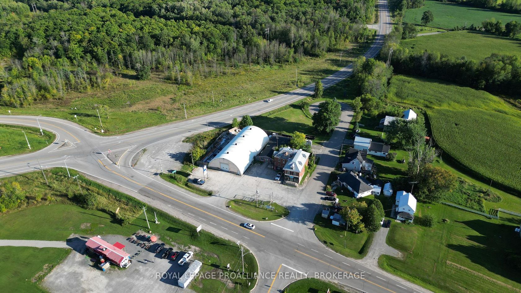 Prime commercial property, Retail store with offices, dome, and circa 1850 building that was once used as the local general store and residence. Rental income could come from the store and dome while you're store the circa 1850 dream home, or simply buy as an investment property. This parcel is centrally located in the heart of the Rideau Lakes tourist region at the busiest intersection in the area. It has great visual lines of sight from both hwy 15 and 42. It is only 30 minutes to Kingston, Gananoque or Brockville.15 minutes to Westport or Smiths Falls. The Ministry of Transportation is planning on making a circle at this intersection in 2025.