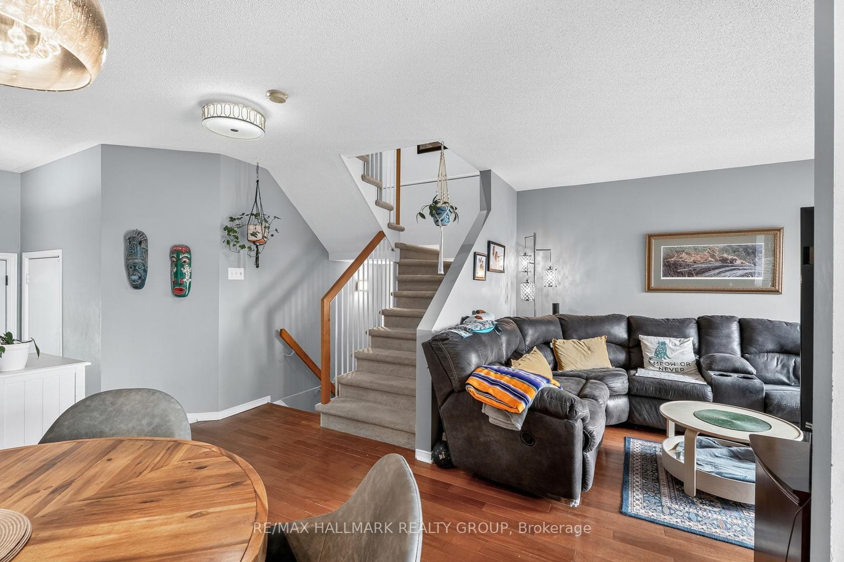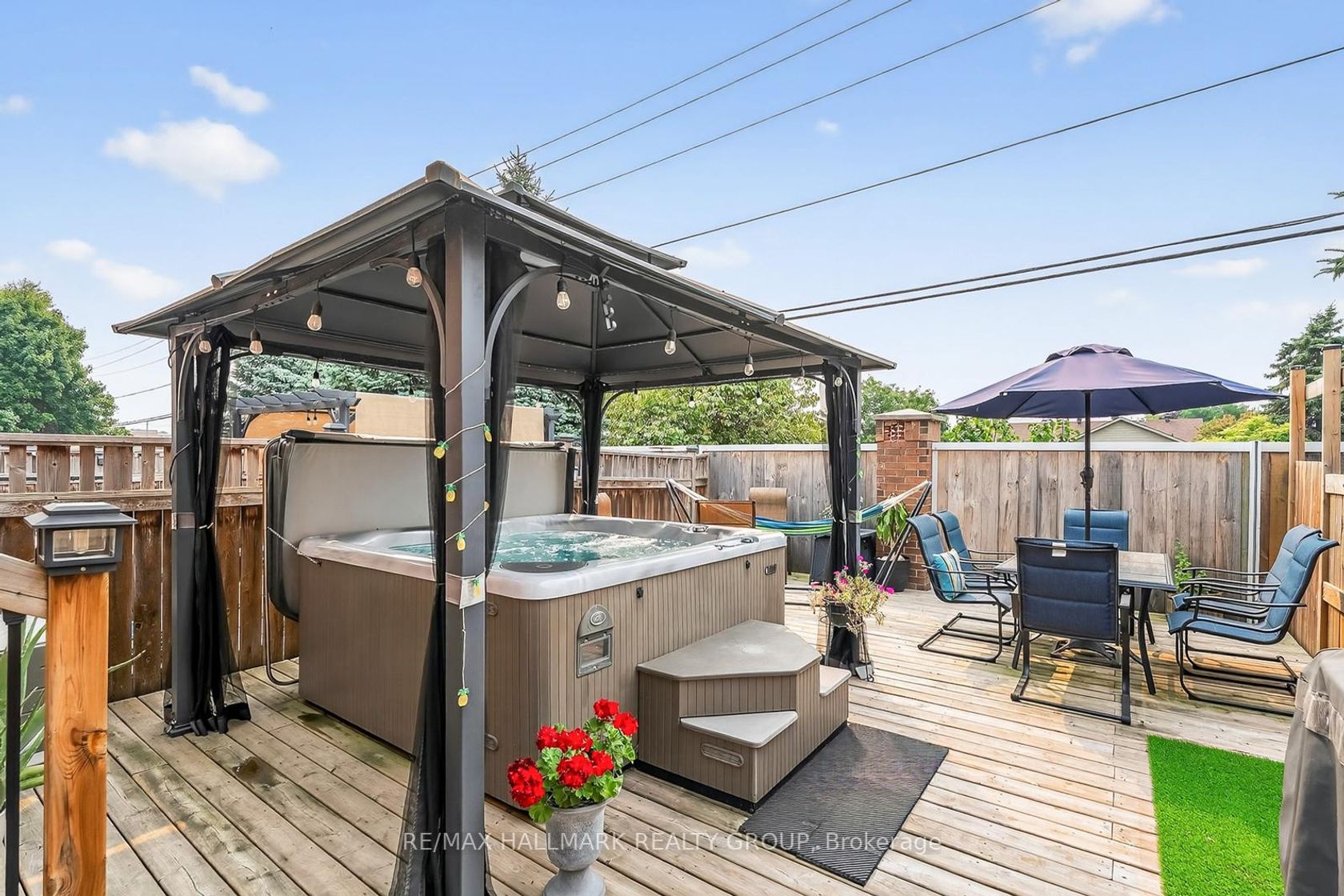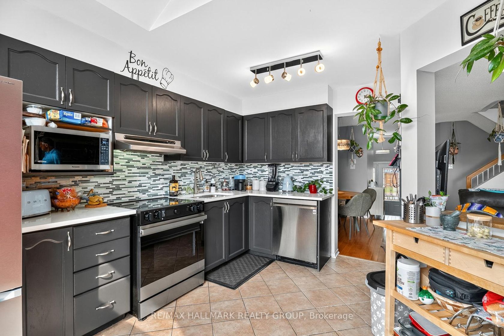 This impeccably maintained 3-bedroom, 3-bathroom row unit offers stylish living with numerous high-end upgrades, including a modern kitchen with quartz countertops, marble backsplash, stainless steel appliances, and task lighting, plus a stunning floor-to-ceiling pantry. The main floor features a dining room, welcoming living room, and a conveniently located powder room. Step outside to a maintenance-free backyard oasis, fully decked and fenced, featuring a 7-person Beachcomber hot tub, gazebo, and natural gas BBQ line - perfect for entertaining. Upstairs boasts spacious bedrooms, including a 3-piece ensuite in the principal bedroom, while the lower level offers a bright family room with high ceilings, laundry, and ample storage. Major upgrades within the last 15 years: patio door, front door, windows, shingles & ice shield, high-efficiency gas furnace, central air, garage door & opener. This home blends comfort, quality, and convenience in every corner!