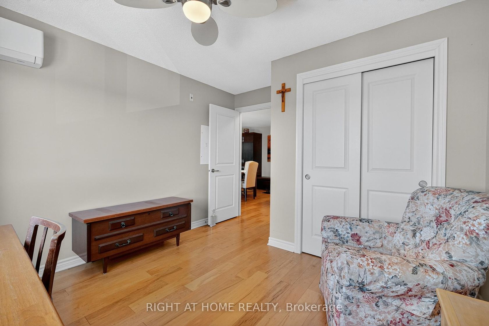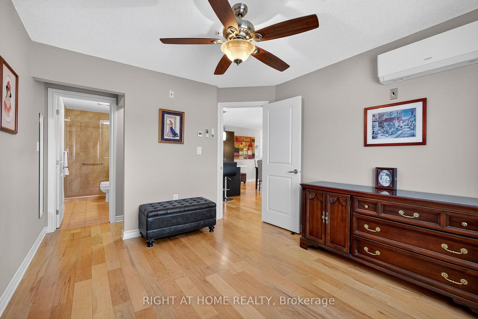 Available for Quick Occupancy. Immaculate 2 bedroom / 2 bath condo in one of the most desired buildings in Orleans, Elevator in building, heated underground parking, located on the 3rd floor 2 doors down from the elevator. Open concept living rm dining rm and Kitchen area, Wood floors-no carpet, Radiant floor heating and water included in condo fees, three (3) New AC wall units with remotes and outside main AC unit 2024, Master bedroom has an ensuite bathroom with a new walk in Ceramic shower with Rainfall shower head and Glass sliding door, a large walk in closet. Both bathrooms have unique wooden storage units above the toilets. Kitchen has an additional custom extra-large and deep pantry with slider shelves, ample kitchen cabinets with Pot and pan drawers, extended countertop for breakfast bar with stools, stainless steel appliances included, built in microwave, dishwasher. Additional large storage closet in unit near main bathroom, separate laundry room in unit with stacked washer and Dryer. includes 3 ceilings fans, Balcony with patio door. Underground parking space #306 is conveniently located adjacent to elevator, the garage parking space also has an adjoining large storage room.
