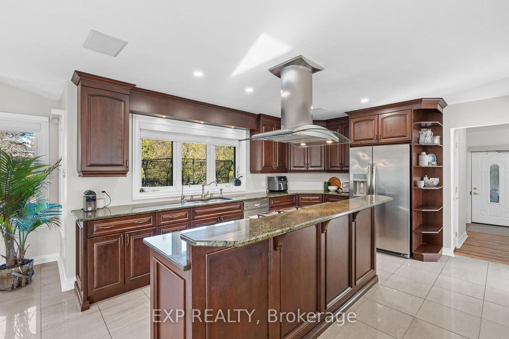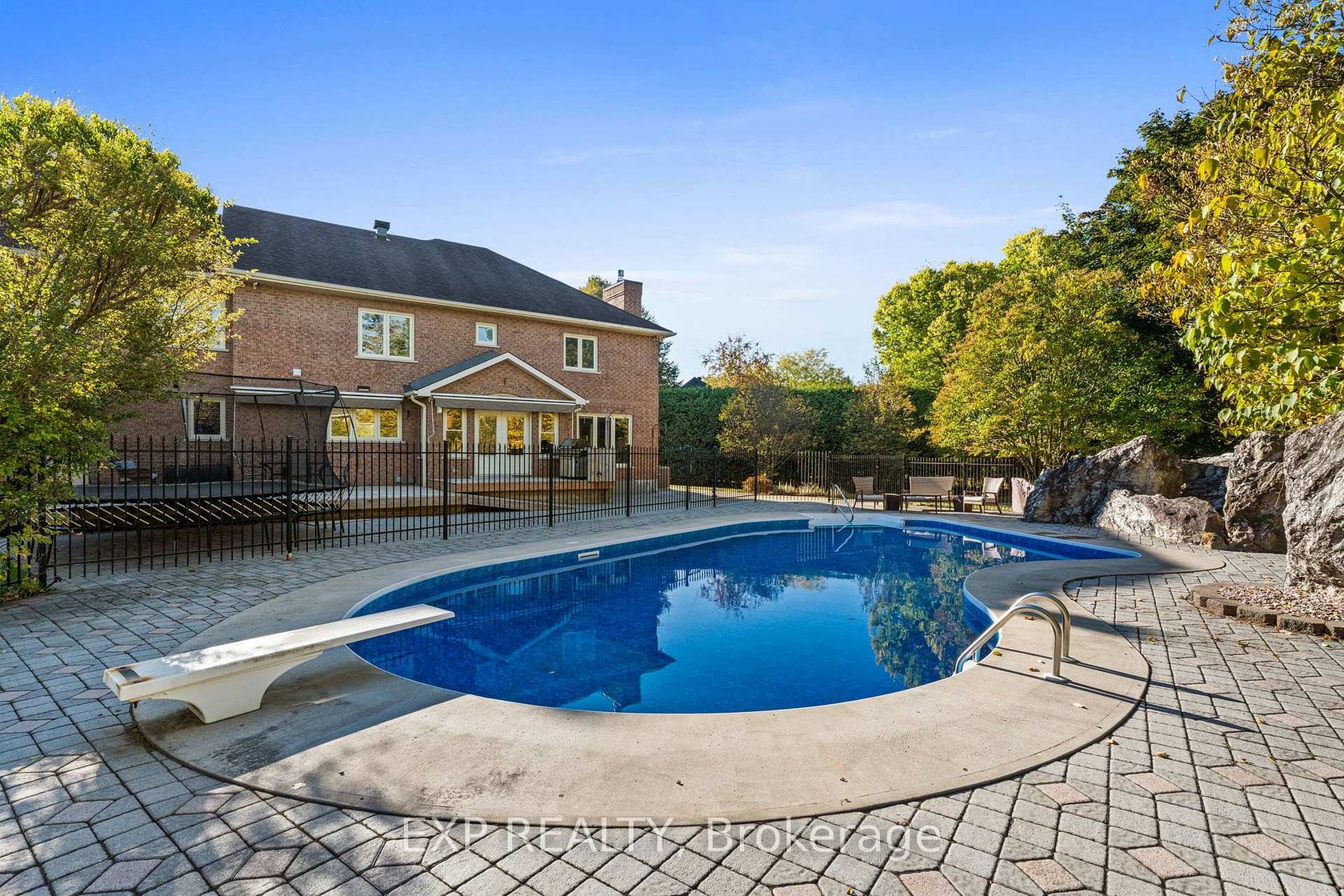 Stunning 4-bedroom, 6-bathroom brick home tucked away on an exclusive quiet cul-de-sac in prestigious Manotick Estates. The full-brick exterior, intricate interlock driveway, double garage, and manicured landscaping set the stage for this impressive property. Step inside the grand two-storey foyer, where a sweeping staircase and oversized window fill the space with natural light. The main floor features gorgeous hardwood and tile flooring, high ceilings, and a bright, welcoming layout. A spacious office sits just off the entrance, while a large formal dining room with picture window is perfect for family gatherings. The chef's kitchen is the heart of the home, offering two large islands, rich cabinetry, granite counters, high-end stainless-steel appliances, and a bright eating area overlooking the backyard. The adjoining family room includes a cozy gas fireplace and expansive windows with views of stunning backyard oasis and gorgeous mature trees, creating a warm and inviting space. The second floor features a luxurious primary bedroom with beautifully renovated ensuite with marble tile, glass shower, and freestanding clawfoot tub. Center hall plan leads to three large bedrooms, two with their own full ensuite bath. The massive 4th bedroom with gas fireplace and elevator provides endless possibilities for an additional family room, guest suite, gym, or multigenerational living etc. Final touch is the loft area with built-in desk. That's right this home has an elevator providing access to all 3 levels. The partially finished lower level includes tons of space with a huge recreation area, play zone, two storage rooms, and a bathroom. The backyard is a true private retreat with heated saltwater pool, diving board, massive decorative boulders, stone interlock, large deck, pool house/shed, surrounded by mature trees, and timeless wrought-iron fencing. This fabulous home perfectly blends luxury, comfort, and safe family living in Manotick's most desirable neighbourhood.