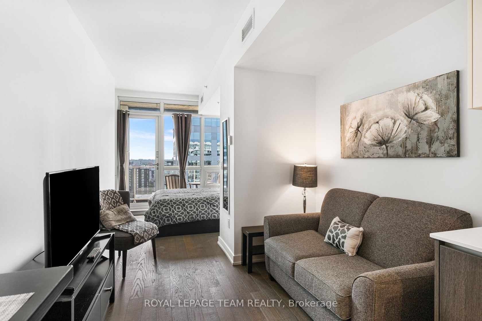 One of Ottawa's most sought out condominium buildings in the heart of downtown Ottawa - The Slater - boasts an elegant and modern design in a convenient location. Located up on the 21st floor, this unit features great views of downtown from its floor to ceiling windows, which also allows natural light to flow through the space. This studio style apartment offers a functional layout that makes great use of the space. Starting with a modern kitchen with stone counters, stainless steel appliances, cupboards, and an area for a breakfast bar or workspace. The unit also features a large, luxurious bathroom with spa-like features. The living room includes room for a couch and TV and leads into the bedroom area. The unit also features a private balcony with southern exposure. This building offers several high end amenities, including a full gym, theatre room, lounge, and a hot tub. With so much in walking distance (Excellent Walk Score), you have everything at your doorstep from Shopping to Transit, to High End Restaurants! This is an opportunity to take advantage of a great price, a great location, fantastic amenities, and ownership, all while experiencing the best of downtown living. Unit can potentially be offered partially furnished. Flexible closing date!