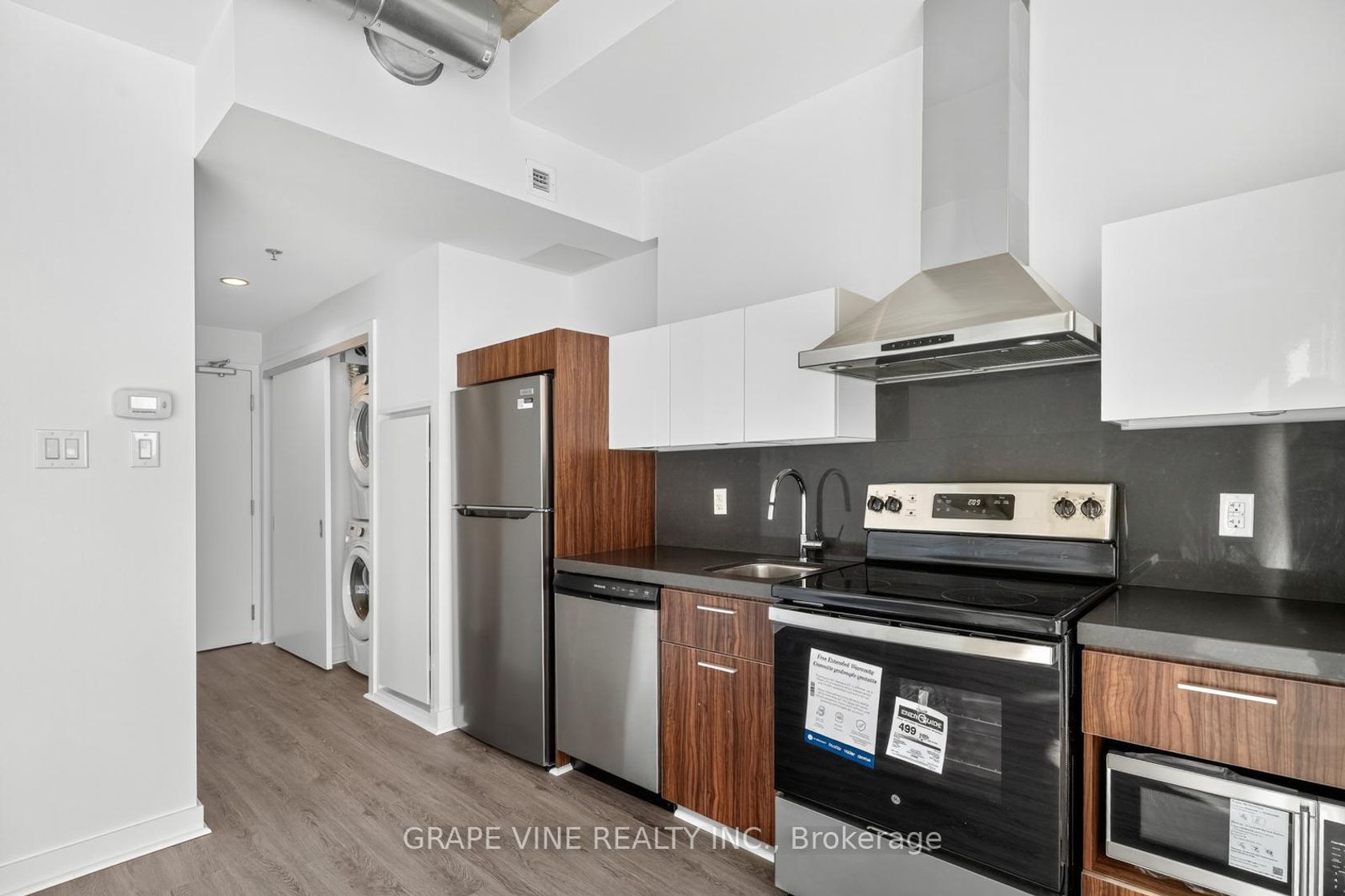 Welcome to 340 McLeod St, in the stylish Hideaway apartment complex. This Park Chennai model (lower penthouse) is conveniently located in downtown Ottawa. This 1 bedroom suite offers open concept living with west facing views from the floor to ceiling windows, allowing plenty of natural light to flow throughout. Perfect for first time buyers, downsizers, and investors alike. 10 ft ceilings, and a modern kitchen with all brand new stainless steel appliances, hood fan, modern cabinetry and quartz countertops. Unique concrete ceilings and ductwork in the main areas. Enjoy relaxing on the private balcony with unobstructed views of the city. The bedroom is divided from the main living area by sliding doors, and includes wall to wall cupboard space. Convenient in suite laundry, and 4 piece bathroom. Amenities include a gym, beautiful outdoor salt water pool with lounge chairs, party/media room, movie theatre, and outdoor patio area. Heat, water, central air conditioning, and building insurance included in the monthly condo fee. Walking distance to all downtown has to offer, including shopping, restaurants, etc.