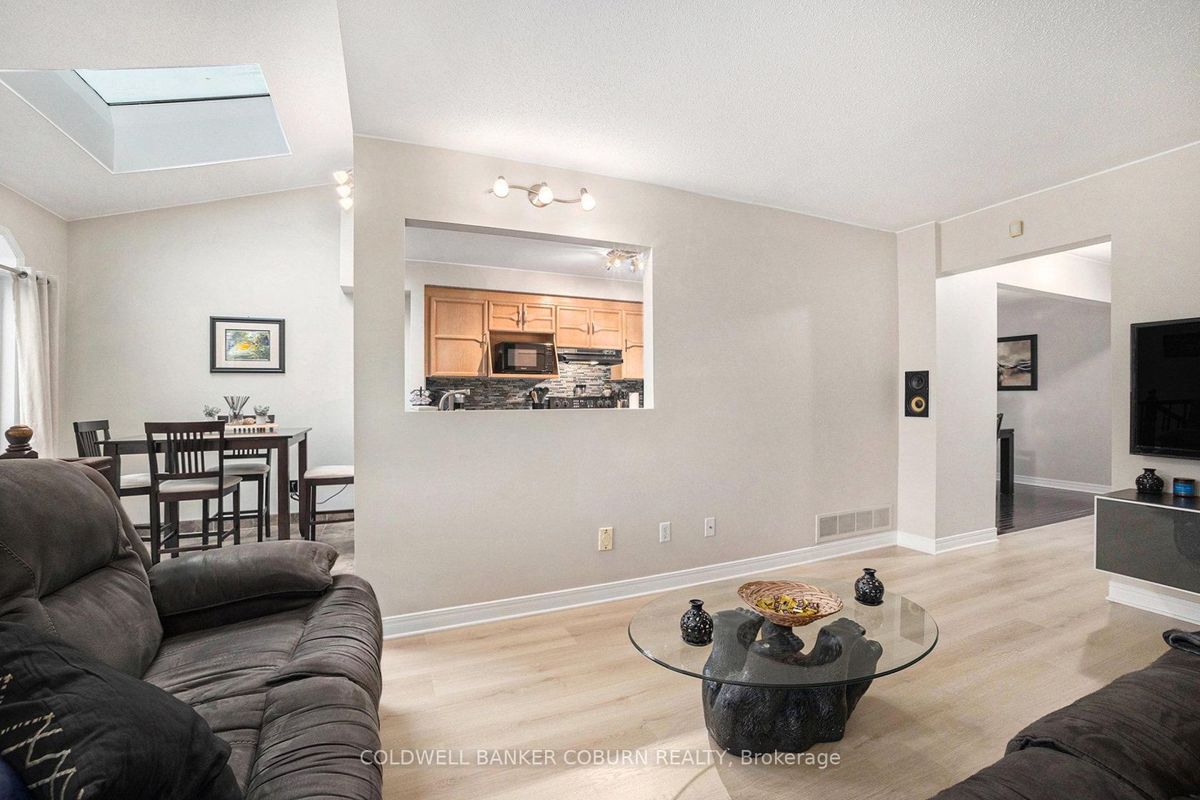 Step into this generously sized townhome offering over 1,800 sq. ft. of well-designed living space. The main level welcomes you with a spacious foyer, soaring vaulted ceilings, and a skylight that fills the home with natural light. A dedicated dining area and a bright breakfast nook provide comfortable spaces for everyday living and hosting. Recent updates include new flooring on both the main and upper levels, giving the home a clean, updated feel throughout. The upper level features a spacious primary bedroom complete with a walk-in closet and private ensuite, creating a quiet retreat. Downstairs, the fully finished lower level adds excellent versatility with a cozy family room highlighted by a wood-burning fireplace, a functional workshop area, and a large laundry and storage space. Outside, enjoy a private rear patio with no rear neighbours, perfect for relaxing or entertaining. A natural gas hookup for the BBQ and an additional gas connection in the garage add extra convenience. Situated in a friendly, family-oriented neighbourhood close to schools, parks, shopping, and recreation, with quick access to the 417 for commuters, this home is move-in ready and waiting for its next owners.