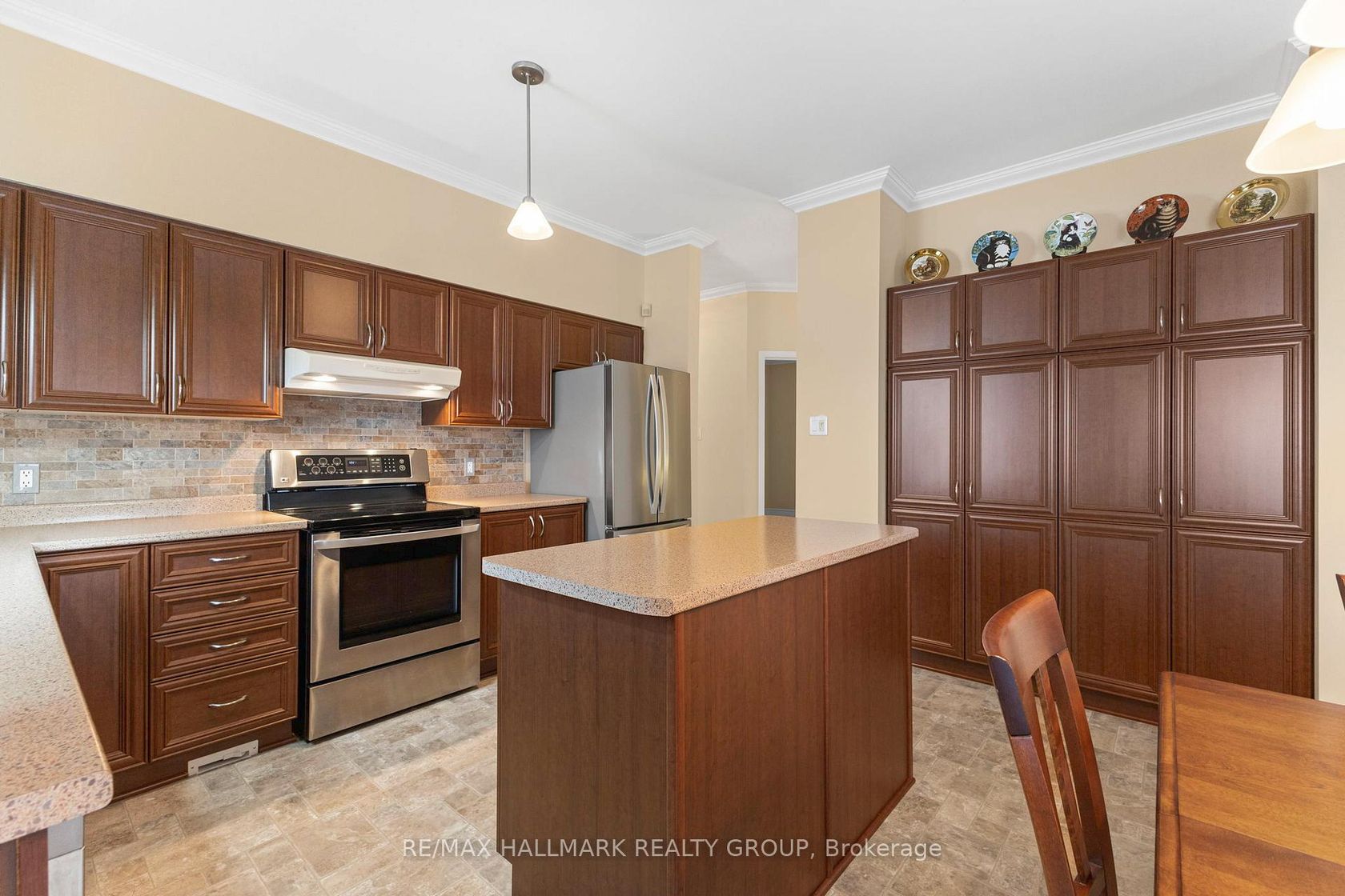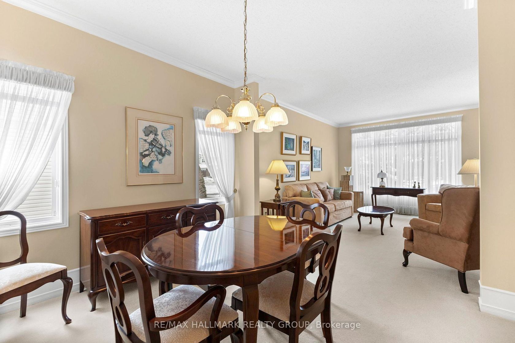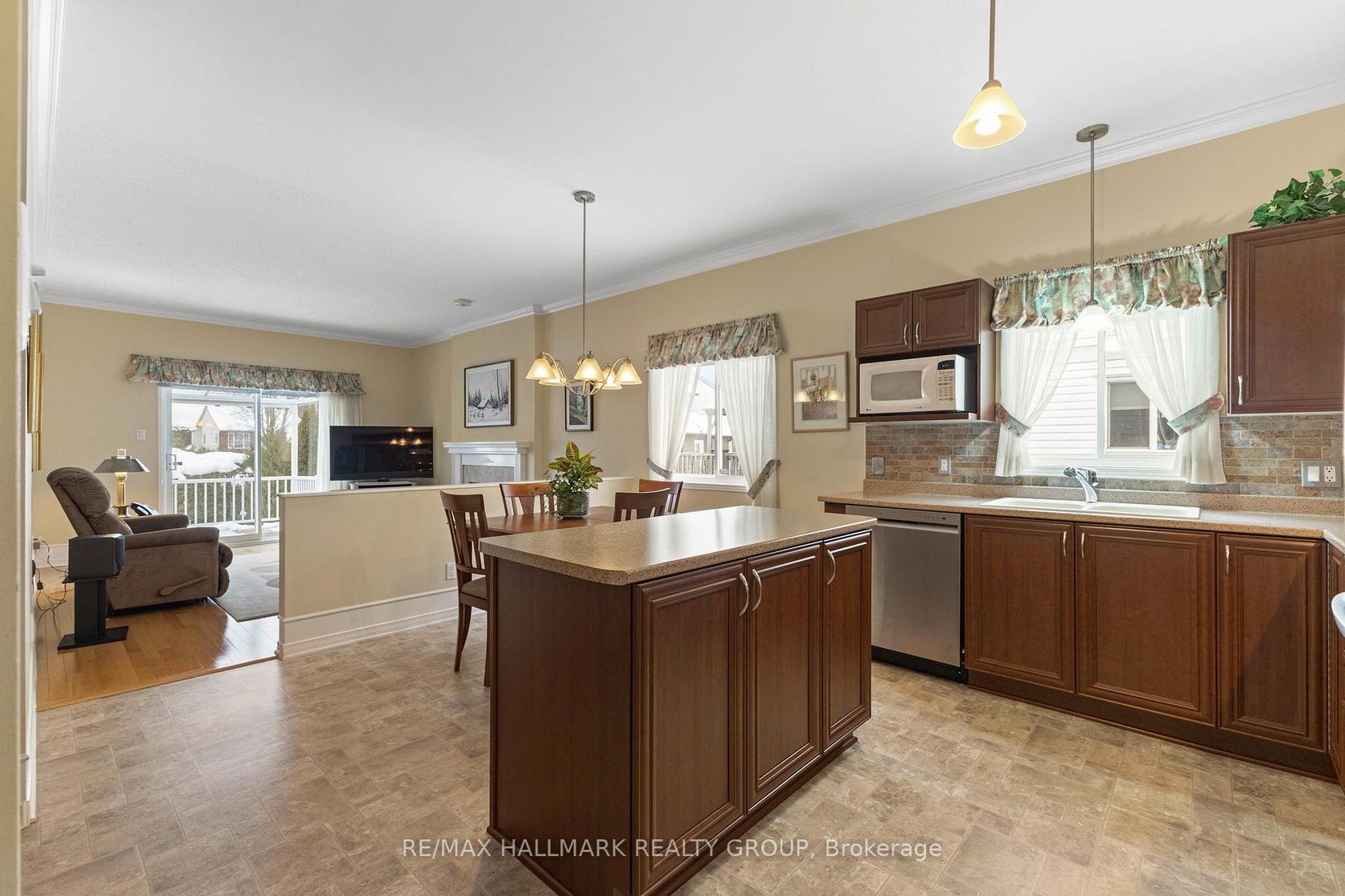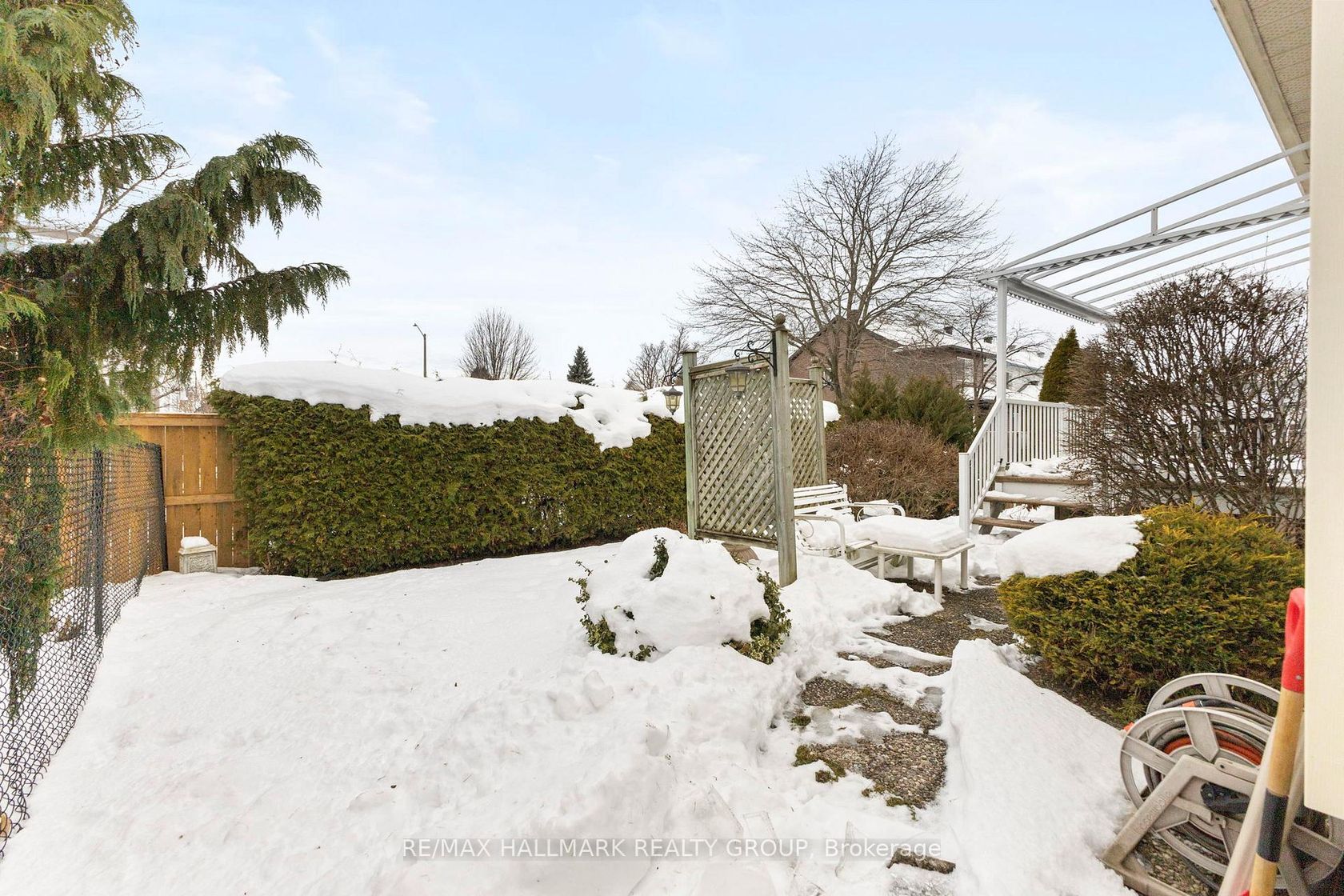 Tucked away on a quiet crescent in the highly sought-after community of Chapel Hill, this very lightly lived-in bungalow offers a rare combination of comfort, privacy, and turnkey living. The crescent itself is surrounded by mature wooded space, creating a peaceful setting with minimal through traffic and a strong sense of privacy throughout the street. Proudly owned and meticulously maintained by the original owners, the home is exceptionally clean and move-in ready. The main floor features 9-foot ceilings throughout, abundant natural light, and large windows that create a bright, welcoming atmosphere. The kitchen is both functional and well appointed with quality cabinetry, an extended pantry, and a convenient eat-in area. The family room showcases hardwood flooring, a cozy gas fireplace, and large patio doors that lead to a fiberglass deck, perfect for enjoying the outdoors. A well-placed, well-lit dining room and a sun-filled living room with a large window offer comfortable spaces for entertaining or relaxing, while the inviting foyer includes a built-in closet. Two bedrooms and two full bathrooms complete the main level, along with access to an oversized single-car garage. The lower level is impressively bright thanks to larger windows and offers three versatile flex spaces, including a rec room, TV room, and an additional recreation area, along with a furnace room providing extra storage and a separate full bathroom.A thoughtfully designed and beautifully maintained bungalow in an exceptional Chapel Hill location.