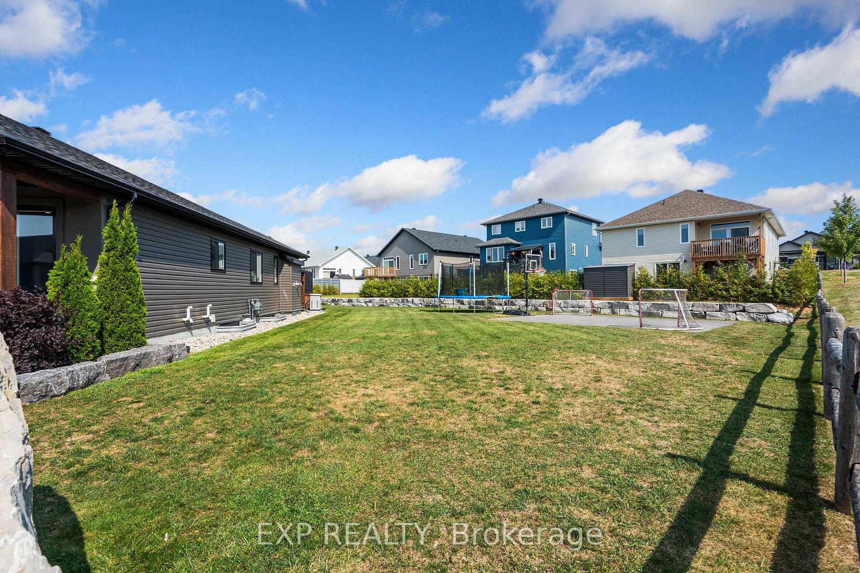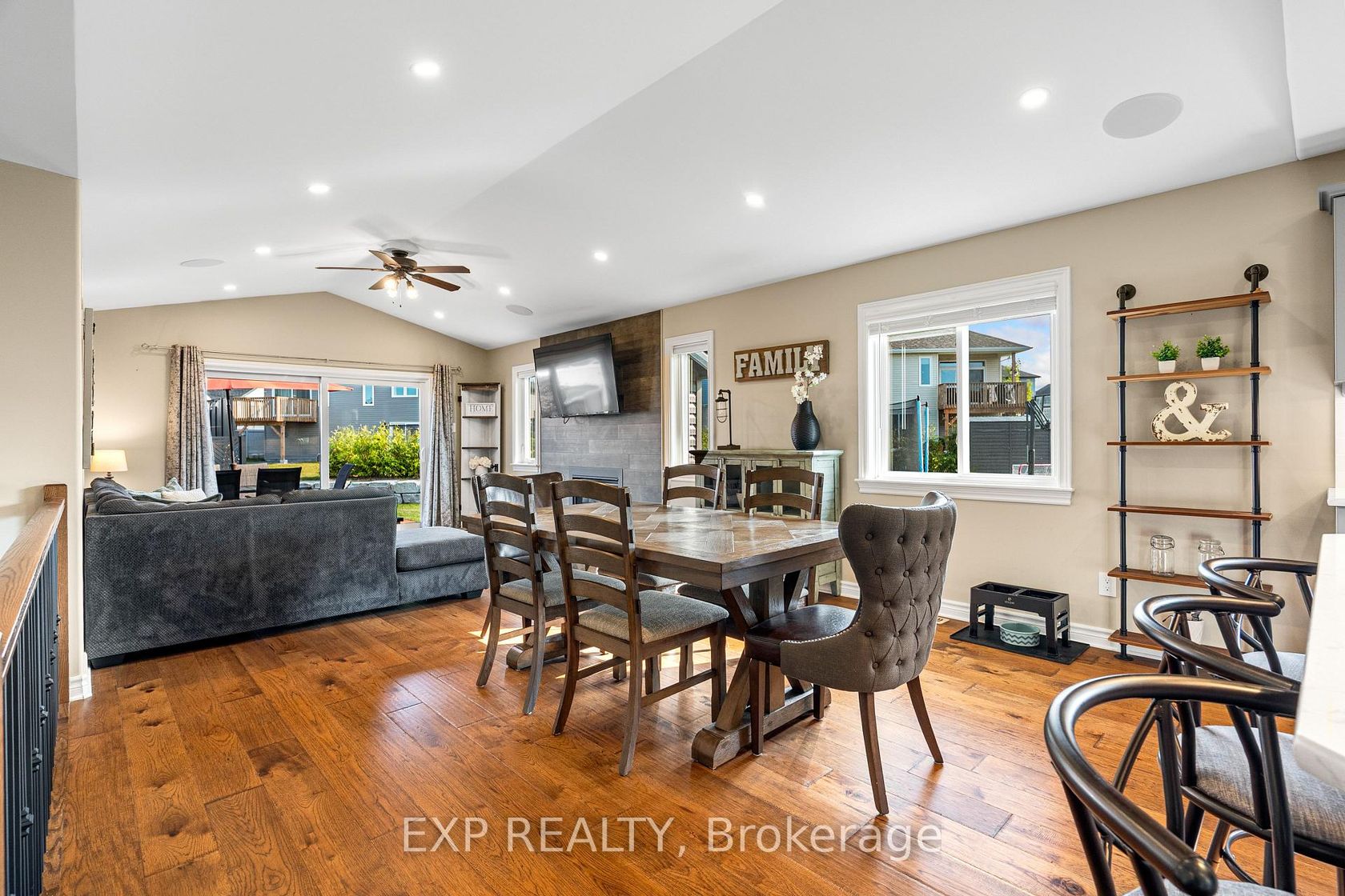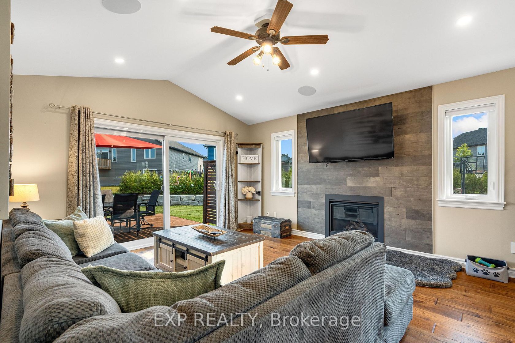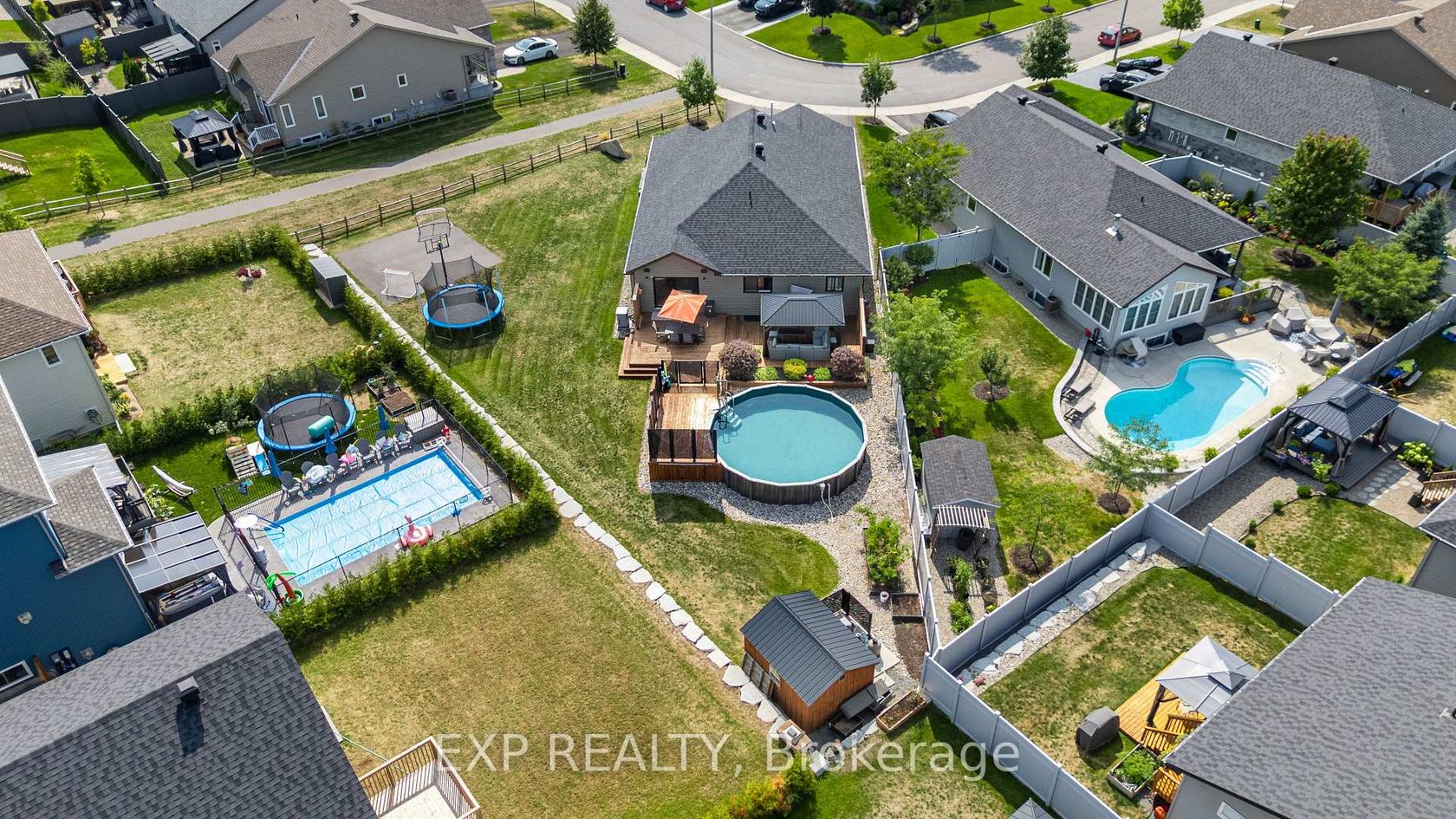 Experience luxury living in Mill Run, Almonte with this exceptional 4-bedroom, 3-bath bungalow, perfectly nestled on an expansive pie-shaped lot. Constructed in 2019, The McIntosh welcomes you with a striking front entrance and tiled foyer featuring ample closet storage and a stylish sliding barn door. A spacious front office, bathed in natural light, provides the perfect workspace or reading nook. Step into the heart of the home in a stunning Deslaurier-designed kitchen complete with granite countertops and premium stainless-steel appliances, seamlessly flowing into an open-concept dining and living room. Gather by the modern gas fireplace or enjoy effortless indoor-outdoor entertaining with 8 feet patio doors leading to multi-level decks and a backyard oasis. The main level boasts elegant hardwood barn-style flooring, laundry/mudroom with extra storage, two large kids bedrooms, and a crisp family bath. Also on the main floor is your private primary suite, a true retreat with generous proportions, a walk-in closet, and a spa-inspired ensuite. The finished basement extends the living space with a bright family room warmed by an additional fireplace, a fourth bedroom, full bath, and abundant storage solutions including an area for a gym. Parking is never an issue with an insulated and heated double garage plus a triple-wide, six-vehicle driveway. Enjoy a backyard designed for every lifestyle: a paved sports/basketball area, versatile decks for summer dining, a shaded patio, a salt-water heated above-ground pool, plus mature gardens and handy storage shed. This thoughtfully designed home blends everyday comfort with standout style. Located only minutes from Almonte's vibrant core of shops & restaurants & amenities. This home provides the perfect balance of modern living and small-town charm. Don't miss your opportunity to make it yours. Schedule your private tour today.