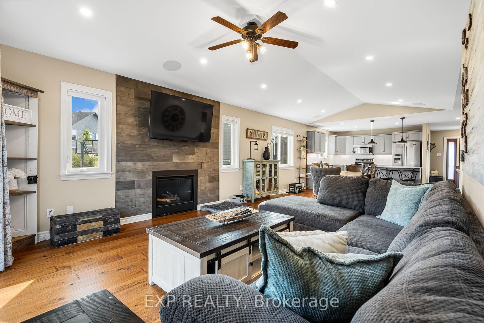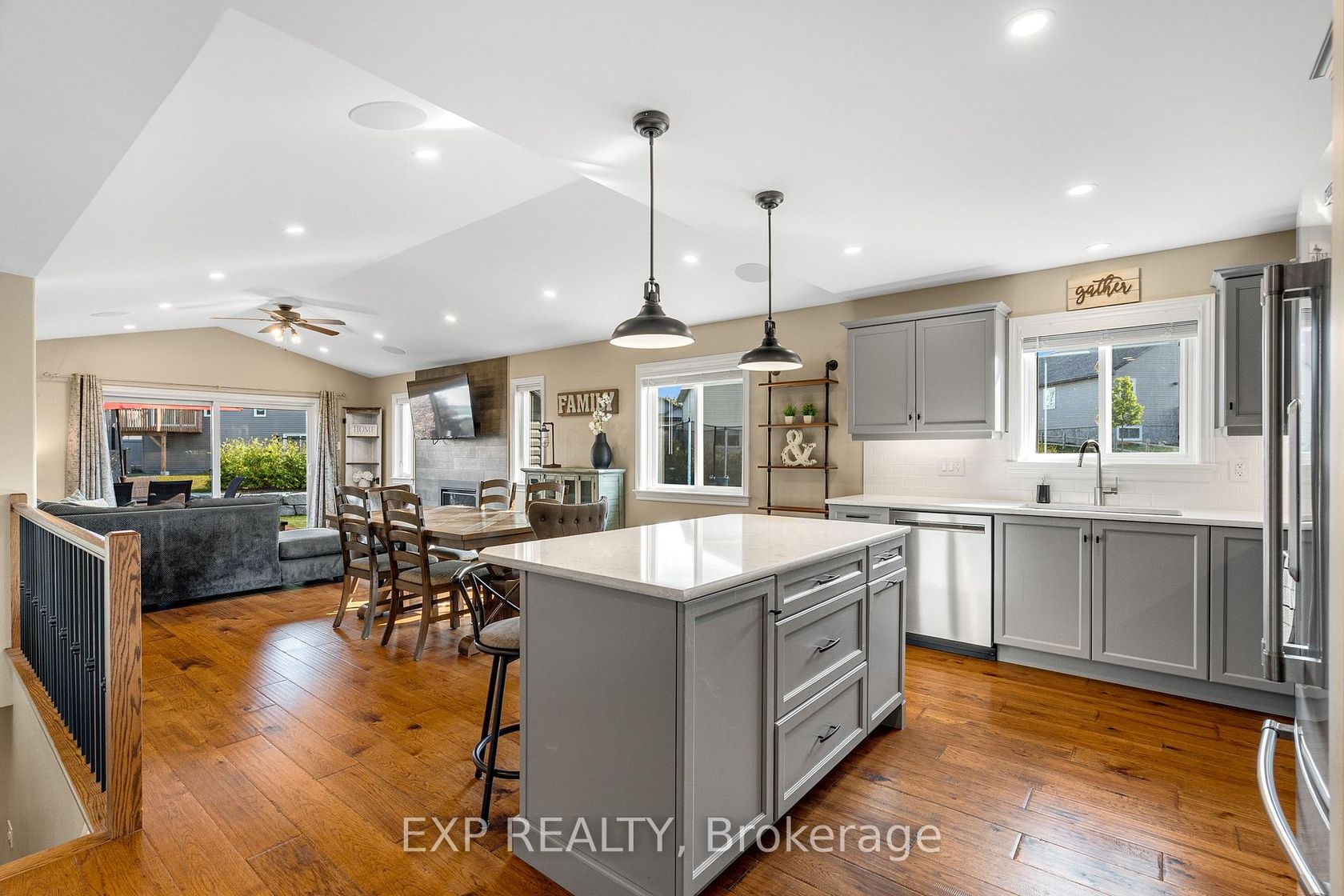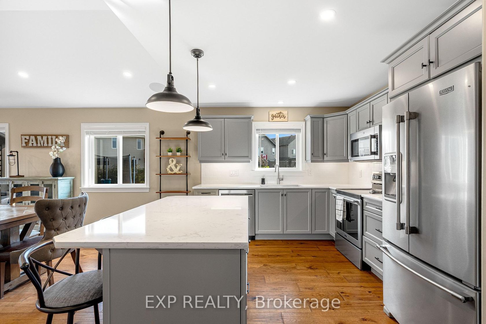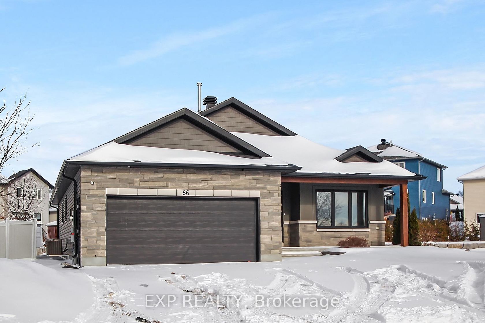 Experience luxury living in Mill Run, Almonte with this exceptional 4-bedroom, 3-bath bungalow, perfectly nestled on an expansive pie-shaped lot. Constructed in 2019, The McIntosh welcomes you with a striking front entrance and tiled foyer featuring ample closet storage and a stylish sliding barn door. A spacious front office, bathed in natural light, provides the perfect workspace or reading nook. Step into the heart of the home in a stunning Deslaurier-designed kitchen complete with granite countertops and premium stainless-steel appliances, seamlessly flowing into an open-concept dining and living room. Gather by the modern gas fireplace or enjoy effortless indoor-outdoor entertaining with 8 feet patio doors leading to multi-level decks and a backyard oasis. The main level boasts elegant hardwood barn-style flooring, laundry/mudroom with extra storage, two large kids bedrooms, and a crisp family bath. Also on the main floor is your private primary suite, a true retreat with generous proportions, a walk-in closet, and a spa-inspired ensuite. The finished basement extends the living space with a bright family room warmed by an additional fireplace, a fourth bedroom, full bath, and abundant storage solutions including an area for a gym. Parking is never an issue with an insulated and heated double garage plus a triple-wide, six-vehicle driveway. Enjoy a backyard designed for every lifestyle: a paved sports/basketball area, versatile decks for summer dining, a shaded patio, a salt-water heated above-ground pool, plus mature gardens and handy storage shed. This thoughtfully designed home blends everyday comfort with standout style. Located only minutes from Almonte's vibrant core of shops & restaurants & amenities. This home provides the perfect balance of modern living and small-town charm. Don't miss your opportunity to make it yours. Schedule your private tour today.