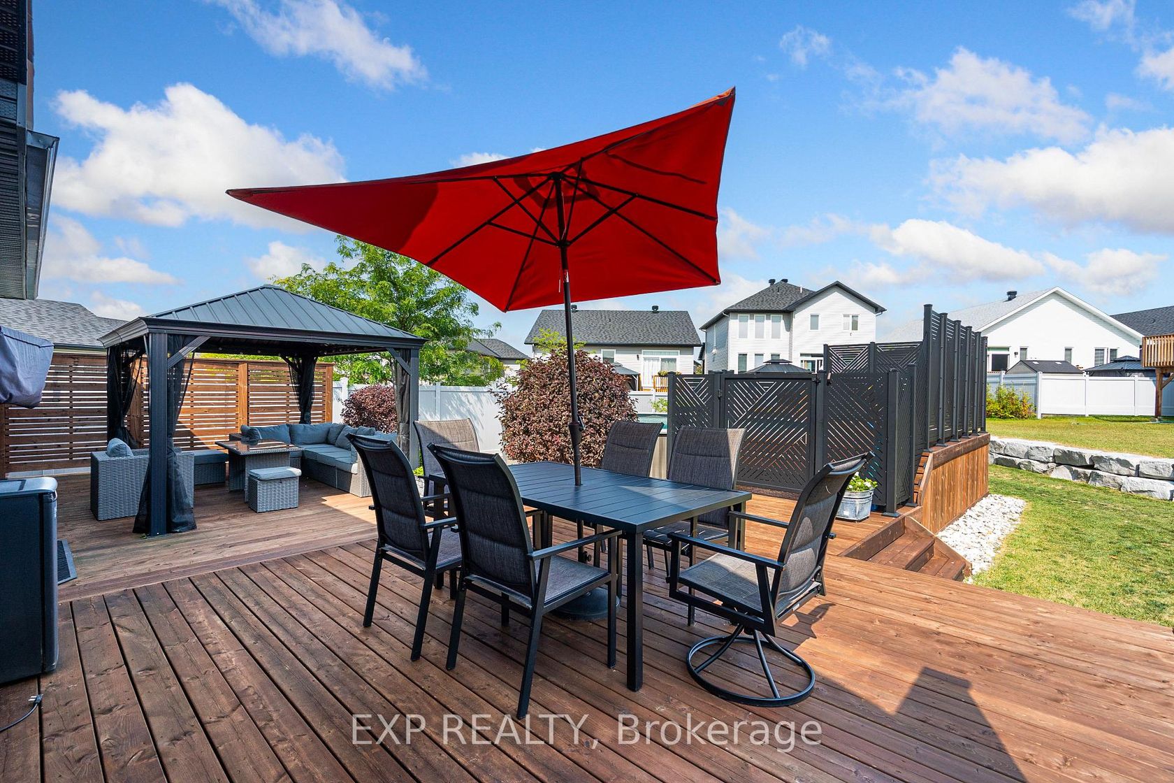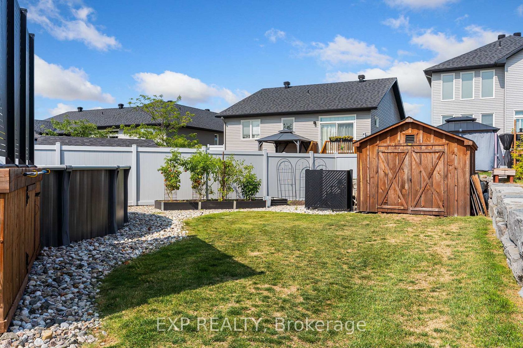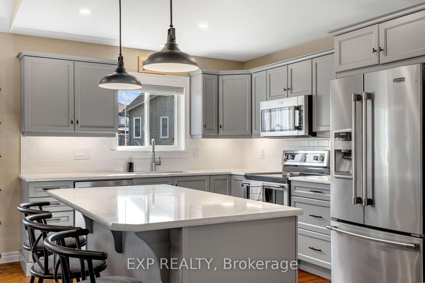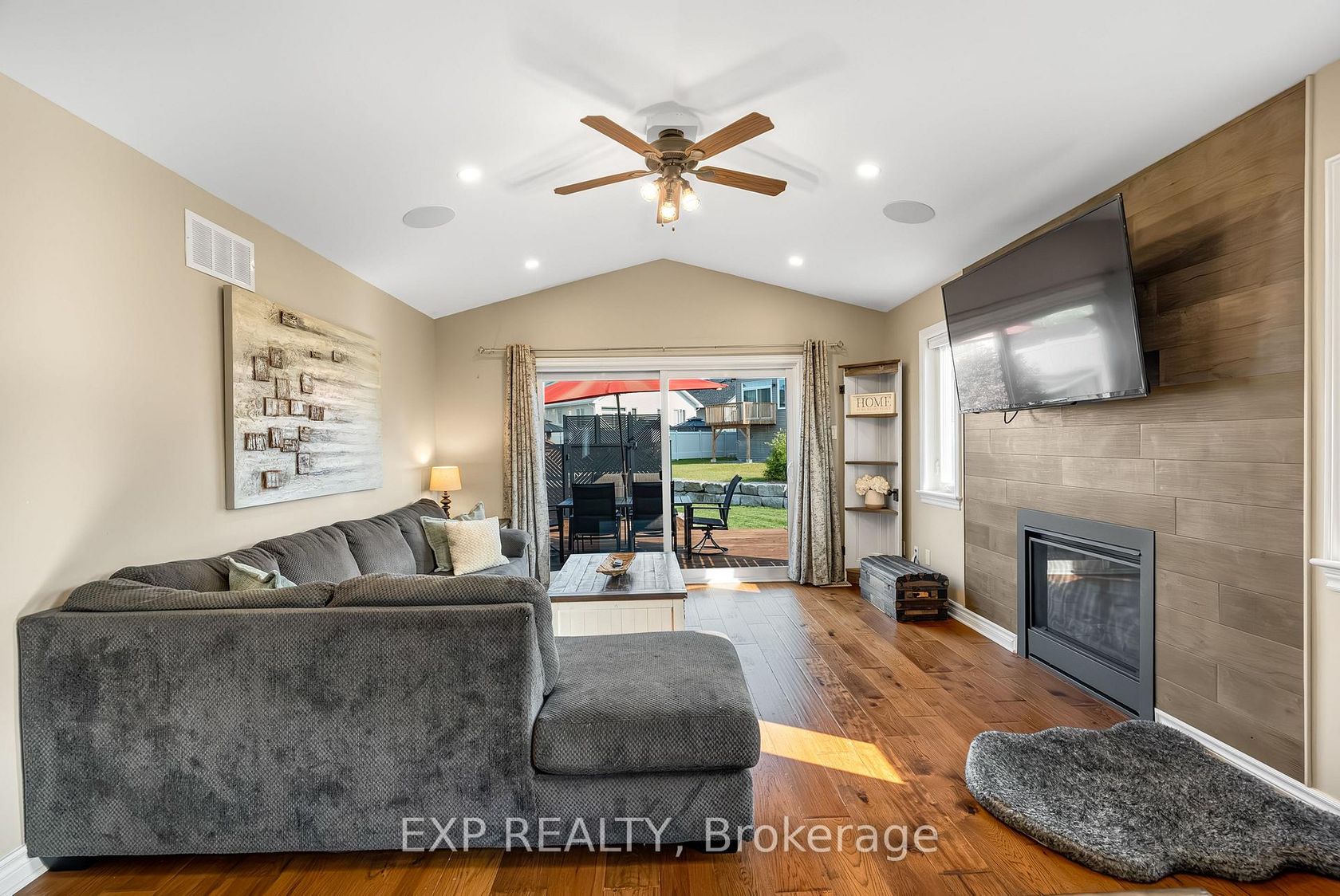 Experience luxury living in Mill Run, Almonte with this exceptional 4-bedroom, 3-bath bungalow, perfectly nestled on an expansive pie-shaped lot. Constructed in 2019, The McIntosh welcomes you with a striking front entrance and tiled foyer featuring ample closet storage and a stylish sliding barn door. A spacious front office, bathed in natural light, provides the perfect workspace or reading nook. Step into the heart of the home in a stunning Deslaurier-designed kitchen complete with granite countertops and premium stainless-steel appliances, seamlessly flowing into an open-concept dining and living room. Gather by the modern gas fireplace or enjoy effortless indoor-outdoor entertaining with 8 feet patio doors leading to multi-level decks and a backyard oasis. The main level boasts elegant hardwood barn-style flooring, laundry/mudroom with extra storage, two large kids bedrooms, and a crisp family bath. Also on the main floor is your private primary suite, a true retreat with generous proportions, a walk-in closet, and a spa-inspired ensuite. The finished basement extends the living space with a bright family room warmed by an additional fireplace, a fourth bedroom, full bath, and abundant storage solutions including an area for a gym. Parking is never an issue with an insulated and heated double garage plus a triple-wide, six-vehicle driveway. Enjoy a backyard designed for every lifestyle: a paved sports/basketball area, versatile decks for summer dining, a shaded patio, a salt-water heated above-ground pool, plus mature gardens and handy storage shed. This thoughtfully designed home blends everyday comfort with standout style. Located only minutes from Almonte's vibrant core of shops & restaurants & amenities. This home provides the perfect balance of modern living and small-town charm. Don't miss your opportunity to make it yours. Schedule your private tour today.