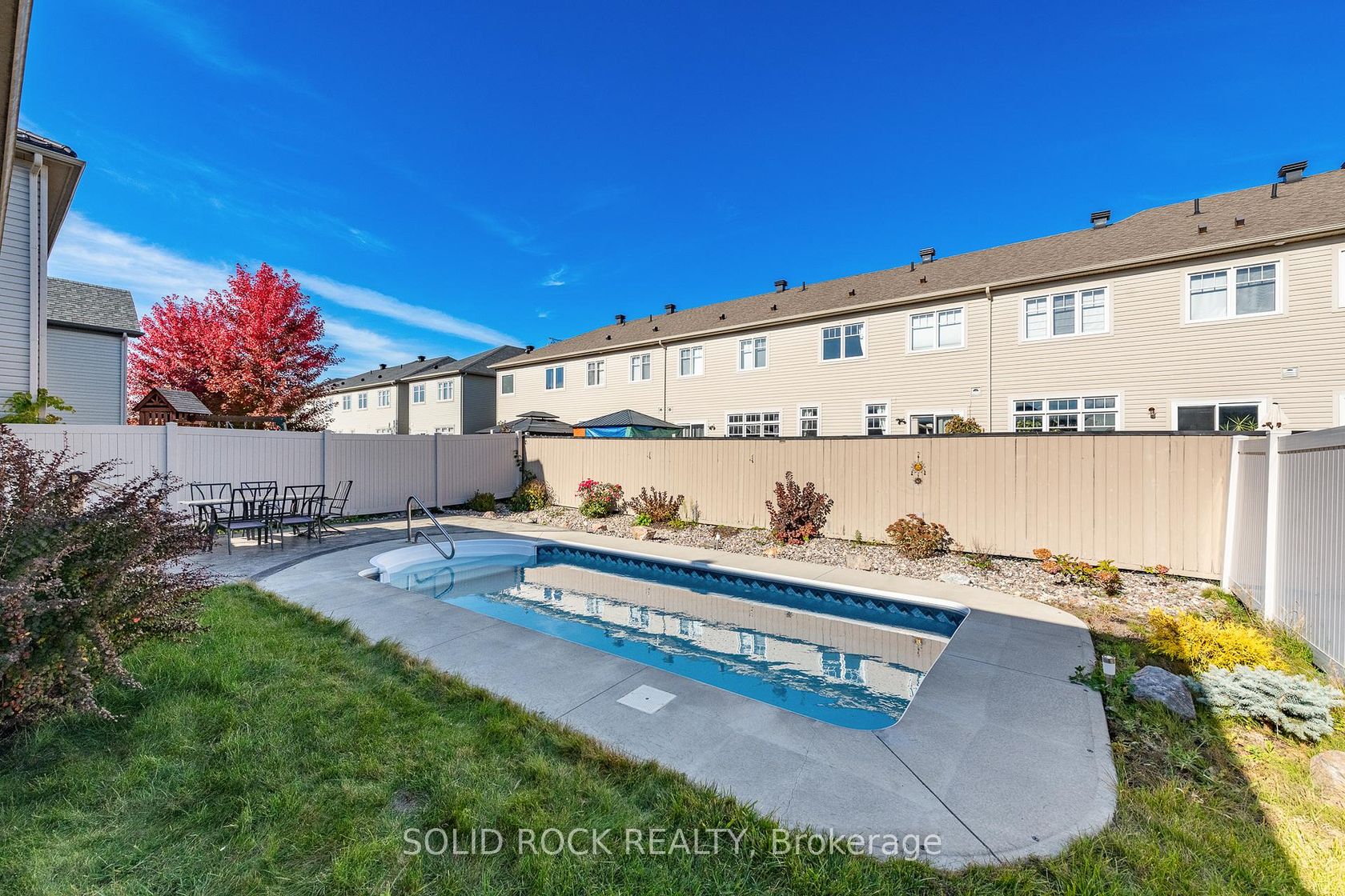 Welcome to this beautifully maintained Monarch-built Bungalow, built in 2013 and nestled in a desirable suburban community between Kanata and Stittsville. Designed for both comfort and functionality, this home offers 3 bedrooms and 3 full bathrooms, making it ideal for families, downsizers, or multi-generational living. The main floor features two spacious bedrooms, two full baths, and an inviting open-concept living space. The kitchen is thoughtfully designed with two-level counter seating, built-in appliances, and excellent sightlines, perfect for everyday living and entertaining. Large windows and a sliding patio door flood the space with natural light and create a seamless connection to the outdoors. Laundry is on the main floor. The fully finished lower level adds valuable living space with a third bedroom, a full bath, and flexibility for guests, a home office, or a recreation area. Step outside to your private backyard retreat featuring a low-maintenance, fully fenced yard, accented with river rock landscaping, and an inground swimming pool - perfect for summer entertaining and relaxing evenings at home. Located close to parks, shopping, schools, and all the amenities that Kanata is known for. This home offers bungalow living at its best in a quiet, family-friendly setting. Hi-efficiency Goodman furnace 98.1 rating. Two furnaces rooms listing indicates two sections.