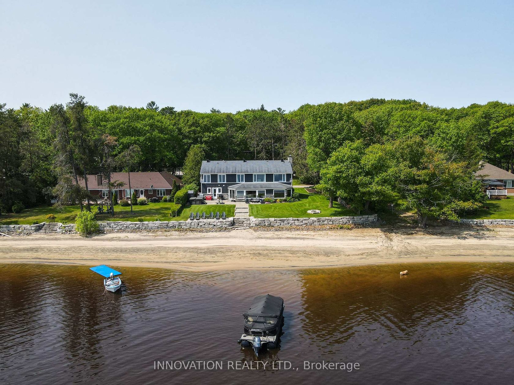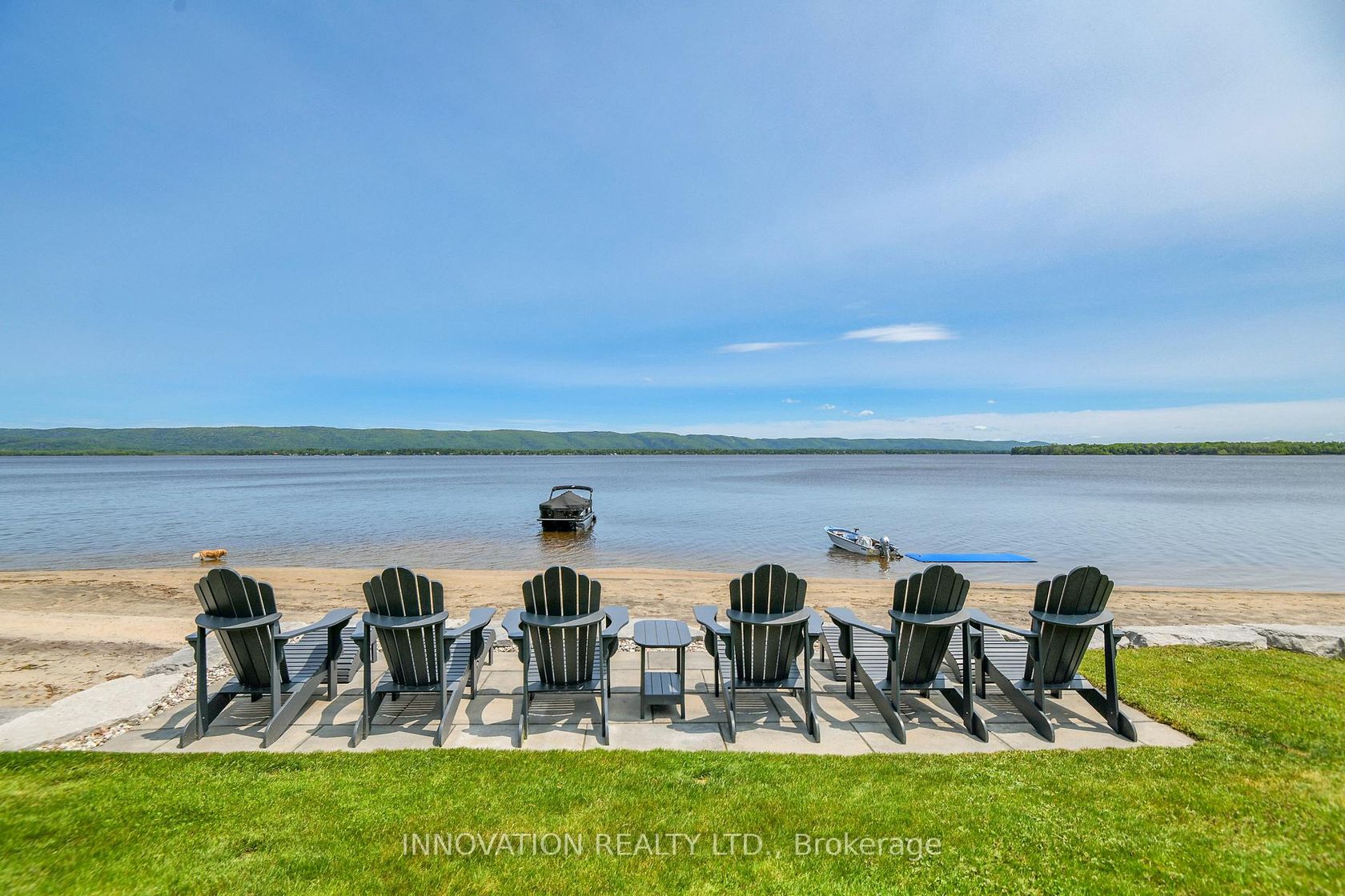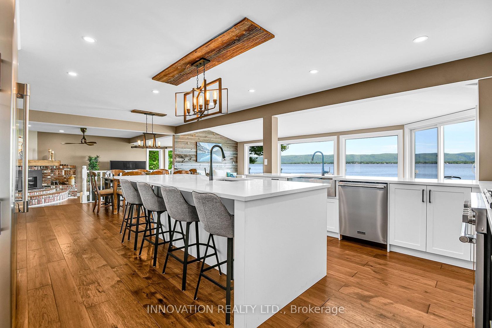 Stunning Cape Cod style luxury beach house! Now this is a lifestyle beyond compare. You don't need to wait for summer. Year round activities include skating, ice fishing, snowmobiling in the winter months. Every detail of this property has been updated to suit the most discerning buyer. The scale of this home has each living area spacious with no compromises. The open concept designer Kitchen, Dining area, Family room and Living room are entertaining size yet feel so comfortable and welcoming. Huge windows in all primary rooms capture the ever changing views of the bay, the river and the Gatineau Hills. Naturally sourced hickory floors, aged barnboard accent wall, ancient timber mantelpiece are all a nod to the rustic beauty of this beach front property. Sit by the bonfire and enjoy the manicured lawn and gardens with friends and family. The four bedroom main house is perfect for family and for overnight guests. Primary Suite has a sumptuous Ensuite bath with huge shower and a walk in closet set up for any city girl. Three additional bedrooms share a spacious renovated bath. A separate suite with its own private washroom, Living/Dining and Kitchen plus bedroom area has many possibilities: nanny suite, in-law suite, guest rental, private guests.Elevated lawn leads to a natural retaining wall and stone steps to the beach. This is a truly unique opportunity on 100 feet of privately owned beach, not in a flood plain. Year round activities include boating, kayaking, fishing, skating, cross country skiing, ice fishing, snowmobiling and more. Walk to the local pub for live music. This is The Art of Living.