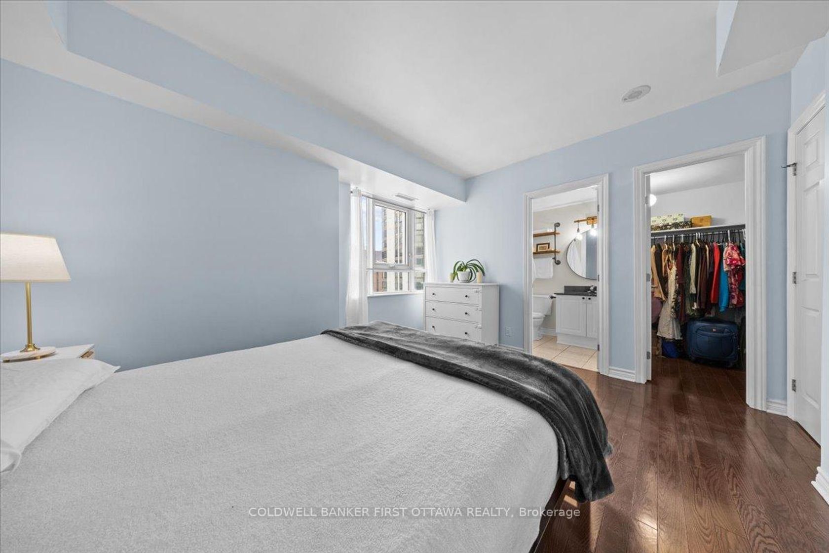 Welcome to this beautifully designed, open-concept condominium. Conveniently located two blocks from Lyon LRT Station, homeowners are minutes away from premier grocery shopping, Parliament Hill, Byward Market, vibrant restaurants and entertainment venues, as well as the future Ottawa Public Library and Ottawa's financial core. Floor-to-ceiling windows flood the living and dining areas with natural light, highlighting the sleek hardwood floors and open living design. The warm kitchen boasts a breakfast bar, granite countertops, and abundant cabinetry-perfect for culinary creativity and entertaining. Retreat to the spacious master bedroom featuring a walk-in closet and a luxurious 4-piece ensuite. A second generous bedroom with double closet offers flexibility for guests or a home office. Enjoy the convenience ofin-suite laundry, a 4-piece main bath with ceramic flooring, underground parking (P1 #7), and a private storage locker (level 2 #86). Building amenities also include bike storage, as well as a common/party room complete with kitchen, bathroom, and ample seating.