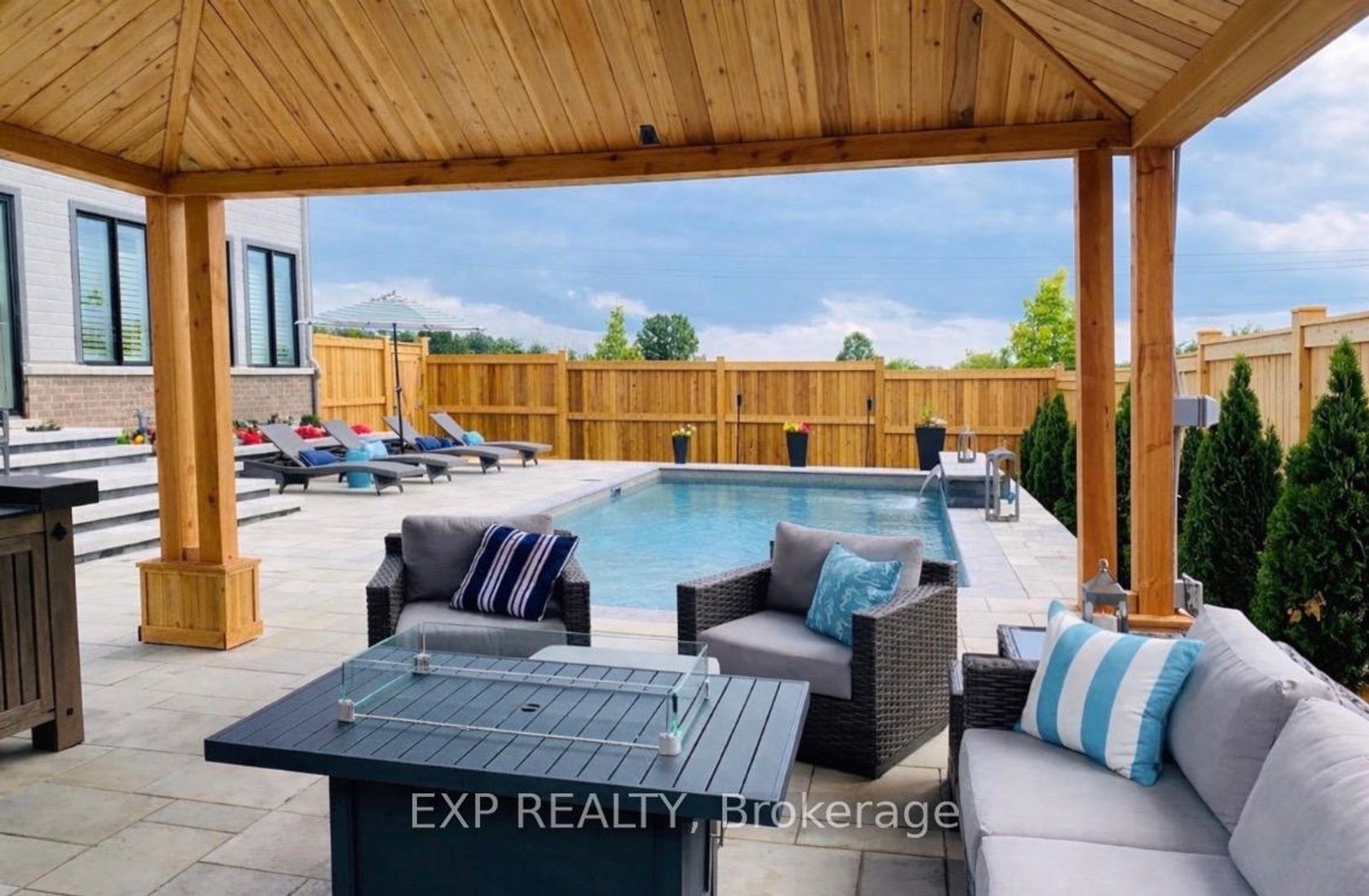 **OPEN HOUSE Feb 1st 2-4PM** Exquisite Heartwood Minto home, on a coveted 75'x100' corner lot in the prestigious Mahogany Community. This luxury residence features 5 bedrooms & 4 bathrooms, perfect for multi-generational living, with over $75,000.00 in premium builder upgrades. An interlock expanded driveway with grand stone steps welcomes you into this one-of-a-kind home, boasting 9ft ceilings on main level & basement. Rich hardwood flooring & elegant tile, grace the main & upper levels. The main floor includes a private home office, a sophisticated formal dining room, & a chef's kitchen with quartz countertops, stainless steel Kitchen Aid appliances (induction stove), Sharp drawer microwave. A spacious mudroom off the garage, ensures organization. The family room captivates with a white brick feature wall, a gas fireplace, as well as a wall of windows that fill the space with natural light. Custom California shutters adorn the windows throughout the home. The main-floor overlooks the backyard oasis, with over $200.000.00 invested in creating a vacation-like setting. Sunshine bathes the yard from morning to evening, anchored by a custom electrified gazebo with integrated lighting, gutters, & sunshades, overlooking a large, stunning inground pool with relaxing waterfall. Impeccable stonework, raised garden bed, & fully fenced perimeter, as well as the cedar lined back fence, create a private resort-style setting. Upstairs, find 4 generous bedrooms, plus a luxurious primary retreat with a spa-inspired 5-piece ensuite. A 4-piece bathroom & convenient second-floor laundry room enhances everyday living. The fully finished lower level adds versatility, with laminate flooring, a large recreation room, a 4-piece bathroom, & a 5th bedroom with walk in closet. Ample storage throughout the home showcases unmatched craftsmanship, & thoughtful design. This extraordinary home is truly a showstopper, featuring outdoor living space perfect for enjoying Ontario summers in style.