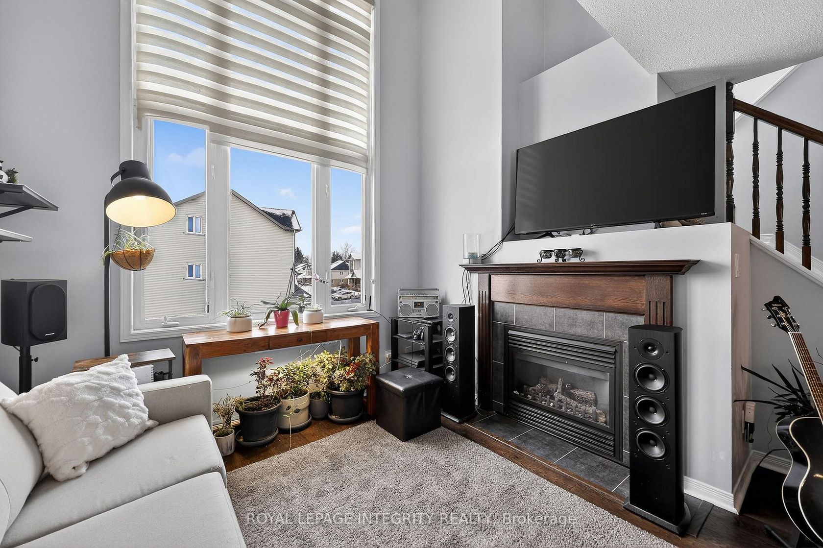 Bright and well-maintained upper-unit terrace home offering an ideal layout for professionals, first-time buyers, or investors. The inviting chalet-style living room features a gas fireplace and second-floor loft overlooking the space below. The open-concept main floor includes a modern kitchen with stainless steel appliances, shaker-style cabinetry, subway tile backsplash, double sinks, and pot lighting, with access to a private balcony.The spacious living and dining area is filled with natural light from a large picture window. Upstairs, the generous primary bedroom offers a cheater ensuite and private balcony. A well-sized second bedroom and a versatile loft-perfect for a home office or lounge area-complete the upper level.Conveniently located with easy access to Orléans, shopping, transit, and downtown Ottawa via Navan Road.