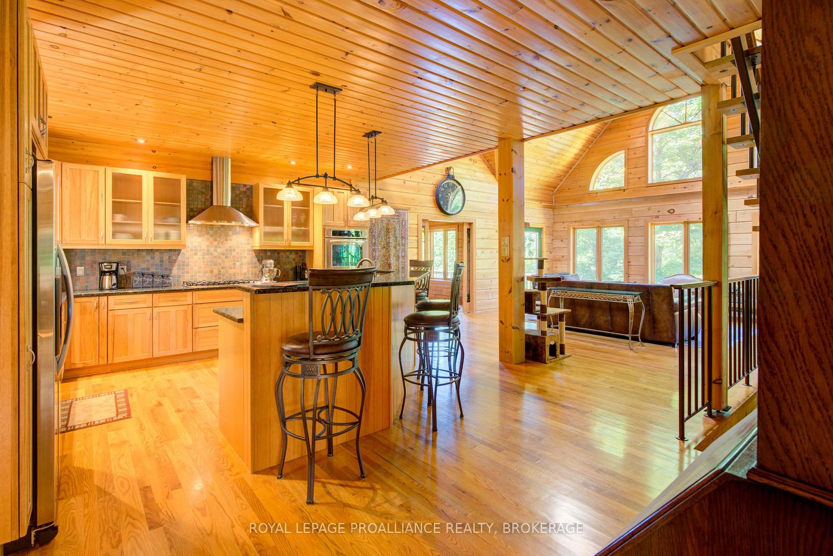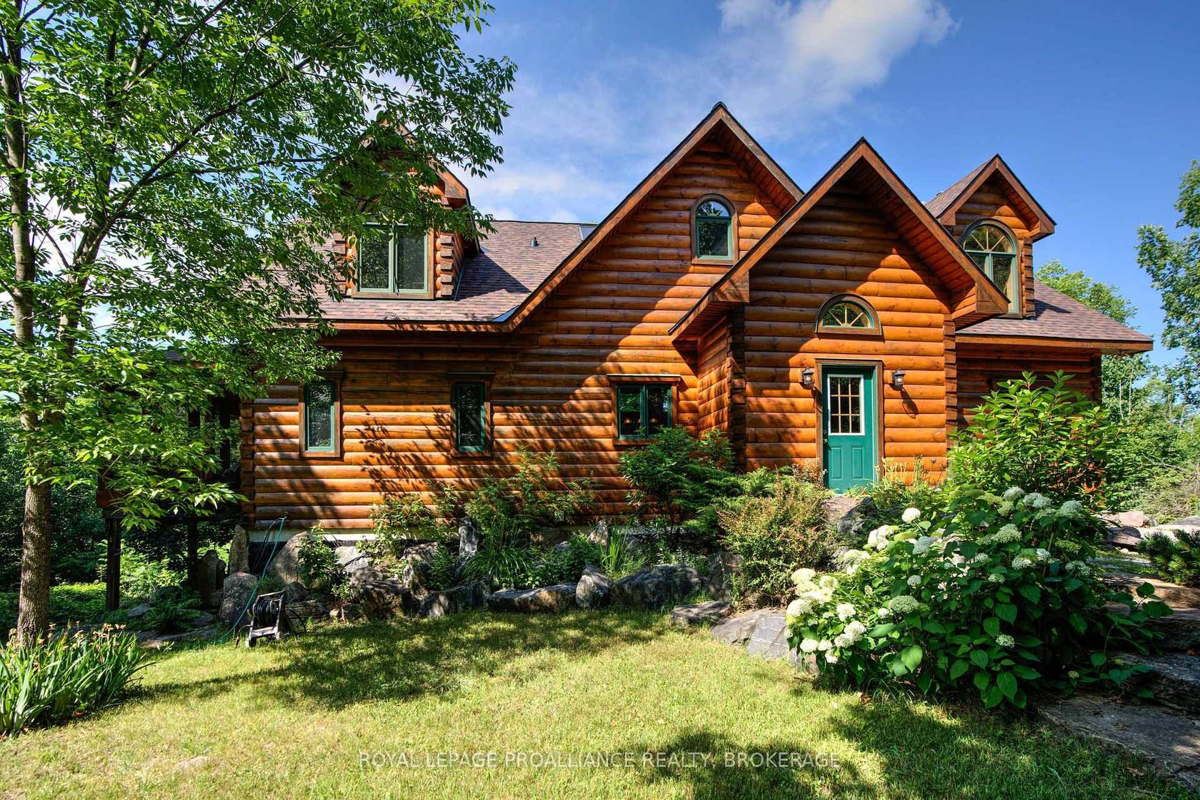Hidden gem on Little Crosby Lake just north of Westport! This stately colonial concept log home sits immersed in trees on 6 acres of land with total privacy. Upon entering the home, you will find yourself in awe looking at the grand living room with beautiful windows and large custom hickory kitchen with a 6 burner Viking cooktop, double wall ovens, Miele dishwasher, granite counter tops and amazing locally sourced red oak flooring. This level has a family room with a granite boulder fireplace, an attached dining area, a 2pc powder room and a welcoming foyer. The primary bedroom has an attached 5pc ensuite with whirlpool tub and access to a large bronze-screened porch which is a wonderful place for your morning coffee. Walking up the custom oak and steel frame stairs to the second level, you will see a large loft area, two bedrooms and a 3pc bathroom. There is a Jotul propane stove in one of the bedrooms and all bedrooms have birch flooring. The walkout basement has 9' high ceilings, a workshop, craft room, undeveloped recreation room with a woodstove, cold room and laundry room. There are two doors that access the yard from this level. The house is serviced by a drilled well and septic system and includes a water softener, heat pump, 200 amp electrical service and two 40-gallon electric water heaters. Wandering down the path toward the lake, you will pass a 2-bedroom cedar bunkie with plenty of space for guests. Continuing along the path to the lake brings you to the dock area with a natural shoreline that is a perfect spot for your boat. Along the shoreline to the west is a lovely platform for sitting and enjoying deeper swimming waterfront. Looping back toward the house, there is a catwalk section on the path bringing you back home. There is a large garden shed behind the house - perfect for all your yard equipment. This stunning property is located just 10 minutes north of Westport with easy access to all amenities and unique dining and shopping options.