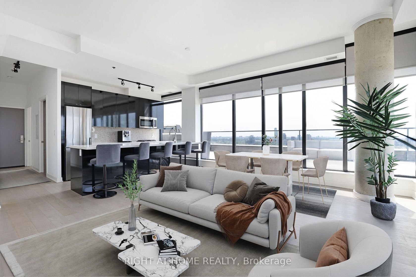 Welcome to this one of a kind Corner Penthouse in the sought after SoBa Condominium. This 2 bedroom 2 bathroom unit has $50K upgrades from the builder plus $50K upgrades/renovations such as California closets, electric dual shade window blinds in living room, full wall tiling in bathrooms and Napoleon BBQ built in 5 burner with granite finish. This Penthouse shows like brand new. Floor to ceiling windows, pre-engineered hardwood floors, stainless steel appliances including build-in oven and natural gas cook-top, window blinds. This 1238 sq. ft. (as per builders plan) has plenty of living space and room for your home office. The open concept floor plan makes this unit airy and the Large windows let in plenty of natural light. You can enjoy barbecuing and entertaining your guests on your private 1164 sq. ft. wrap around terrace (as per builders plan). 2 Parking spots and 1 private Locker included. Don't miss out on this rare opportunity to own your paradise in the sky! Some Pics are virtually staged.