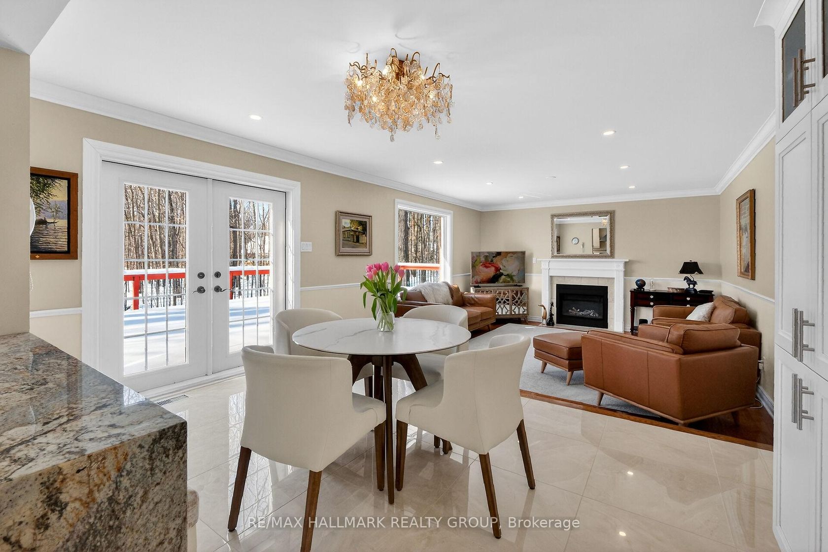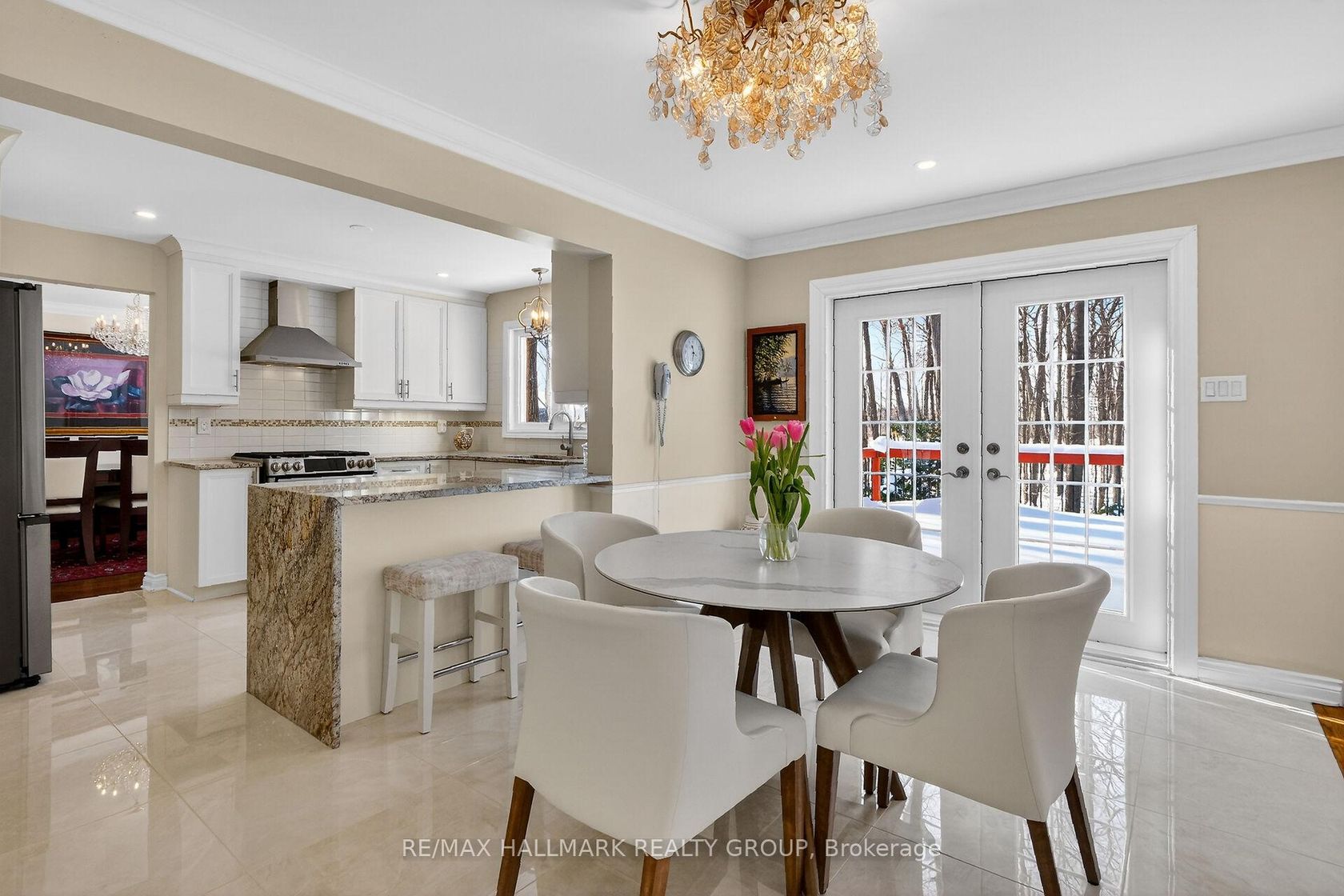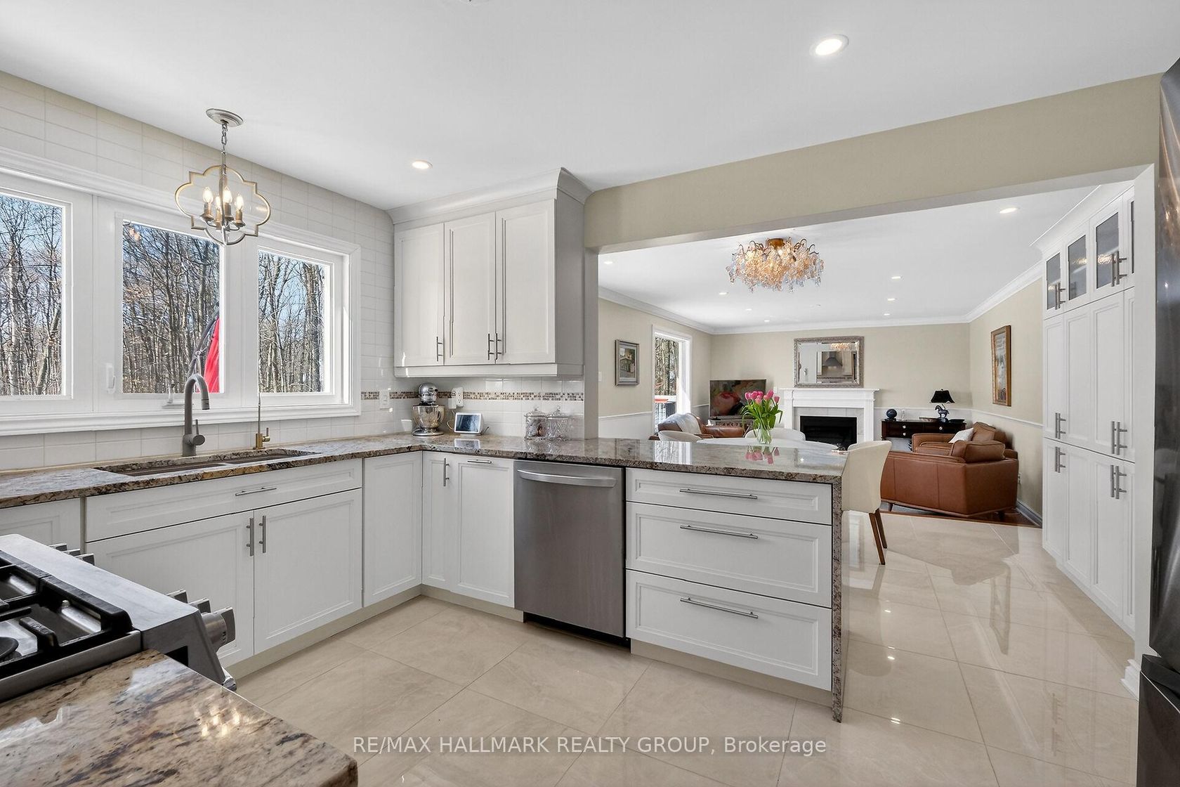 Welcome to 1372 Jules Leger Drive, where refined luxury meets exceptional country living. This fully renovated all-brick 4 bedroom home sits on a wooded 1.98-acre lot in Cumberland's coveted Du Gouverneur Estates, blending privacy, space & convenience. A spacious front verandah with a screened-in porch welcomes you into a meticulously maintained residence that showcases pride of ownership and quality upgrades throughout. Sunlight pours through expansive windows across the main & 2nd levels, highlighting rich hardwood & tile flooring, while pot lights create a warm ambiance. Crown moulding adds timeless elegance to the formal living & dining rooms. The stunning white kitchen is designed to impress with granite countertops, a breakfast bar, extensive custom cabinetry, Italian porcelain tile & recently updated stainless steel appliances, including a gas stove. The adjoining eating area opens to a deck that overlooks beautifully landscaped gardens, a tranquil pond, interlock walkway & a wooded backdrop for ultimate privacy-perfect for entertaining or relaxing. Seamlessly connected, the sunken family room features soaring 9 ft ceilings, a panoramic window & a cozy gas fireplace that anchors the space. The main level also offers a professional home office, a functional mudroom with laundry & direct garage access. Upstairs, the spacious primary retreat boasts a walk-in closet, additional closet, & a beautifully updated ensuite with double vanity, soaker tub & accessible shower. 3 generously sized bedrooms & a full bathroom complete the upper level. The fully finished basement adds versatile living space with a recreation area, gas stove & abundant storage. An oversized 2-car garage with a 240V EV plug & extended storage area enhances everyday convenience, while the widened driveway accommodates up to ten vehicles. Experience the tranquility of luxury country living just minutes from shopping, dining & amenities-an exceptional opportunity not to be missed.