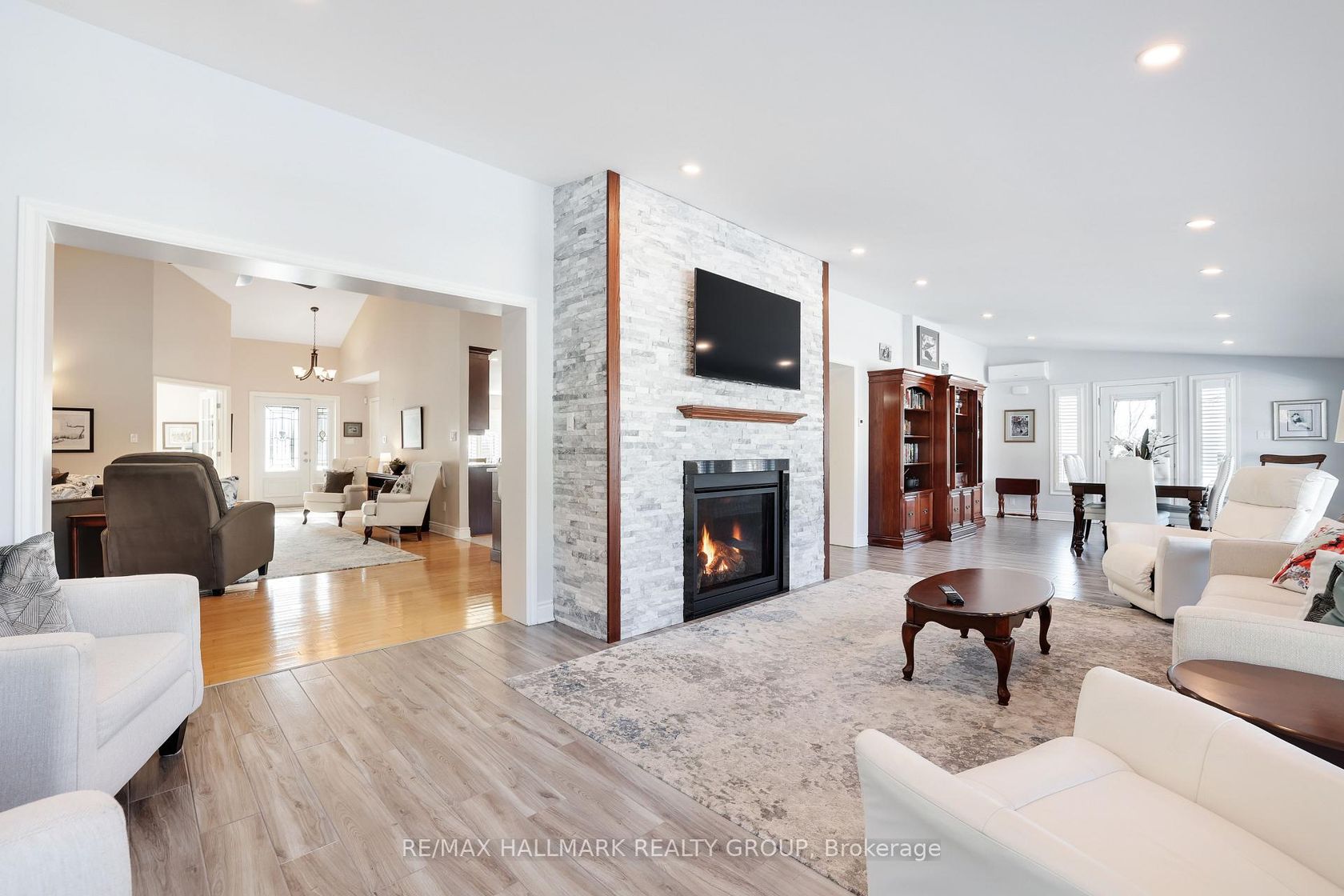 A rare blend of quality, style and thoughtful design make this spacious bungalow a stand out! From 200 amp service, full insulated concrete form construction & in-floor radiant heating on both levels (including the garage) to cathedral ceilings & oversized windows that flood the space with natural light this home has it all. The main floor boasts a dream kitchen which features: marble counter tops, SS apron sink and coordinating SS appliances (double oven electric smooth top range, 5 door fridge, double door BLUESTAR wall oven), pot-filler, a separate 6' x 3' baker's peninsula with its own sink, cabinet mixer lift & bar seating and a walk-through Butler's Pantry between the kitchen and sunroom ideal for hosting or everyday living. Get cozy by the gas fireplace sitting area, enjoy a meal at the dining table or access the back deck from the grand sunroom, perfect for entertaining or unwinding while enjoying the view. The primary suite enjoys cathedral ceilings, walk-in closet, spacious en-suite with 2 sinks, fireplace, walk-in luxury glass shower & separate water closet. Two more bedrooms, (segregated from the primary), full bathroom, laundry room, office nook & eating area complete the main level. Direct access from the garage to the basement offers serious versatility with its radiant floor heating, large windows, family room, huge lounge/games area with custom built-in rosewood cabinetry wall & extensive wet bar (including dishwasher, wine fridge, beer tap and more), a den, full bathroom & plenty of storage. This sprawling 1+ acre country setting is just minutes from charming Perth with its rich history, vibrant art scene & beautiful natural setting along the Tay River. The hedged, private, yard offers: cherry & apple trees, 2 gazebos, an attached, oversized, heated garage, detached double garage with workshop and abundant paved parking. Whether you are looking for extra guest space, a home office setup, or a potential in-law suite, the possibilities are endless.