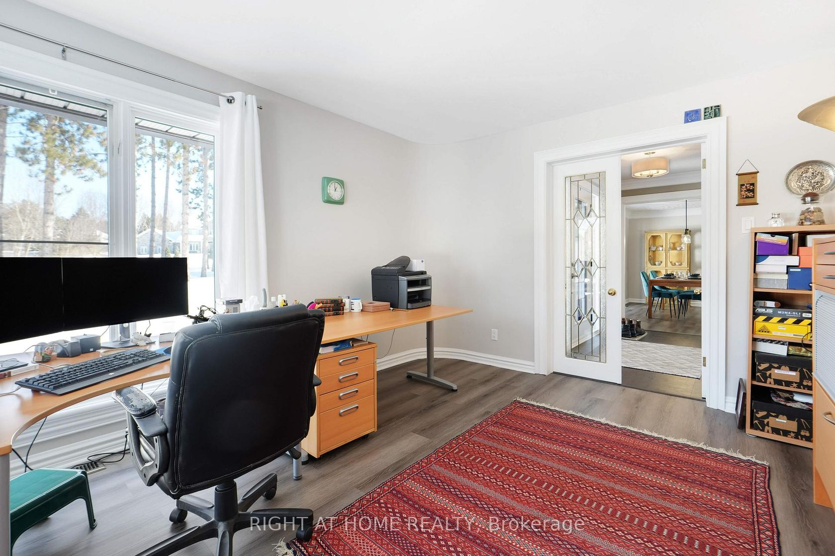Welcome to your private country estate in Dunrobin, where elegance meets tranquility on a beautifully treed 2+ acre lot just minutes from Kanata and the Ottawa River. Set well back from the road, this stately brick home offers exceptional privacy, timeless style, and refined living. Inside, thoughtfully designed spaces balance everyday comfort with effortless entertaining. Sunlight fills the vaulted living room, where a fireplace anchors the space with warmth and charm. The bay-windowed dining room provides a stunning backdrop for gatherings, while a bright corner office overlooks peaceful greenery; perfect for working from home. The gourmet kitchen is truly the heart of the home, featuring quartz countertops, custom cabinetry, and a generous island designed for both culinary creativity and casual connection. From here, step into the screened southwest-facing porch-your seasonal retreat for quiet mornings, summer dinners, and relaxed evenings. A functional main-floor laundry and mudroom with direct side-yard access adds everyday convenience. The main-floor primary suite is a serene sanctuary, complete with a spa-inspired ensuite offering a glass walk-in shower, deep soaker tub, and walk-in closet. Upstairs, two additional bedrooms and a charming loft nook provide flexible space for family or guests. The fully finished lower level expands your living space with a massive recreation room, a study or currently a storage room, a workshop, a cantina, and abundant storage. Outdoors, estate-like grounds invite exploration, from shaded retreats to sun-drenched lawns, complemented by the rare benefit of ownership of a shared tennis court in the cul-de-sac. Recent upgrades, including water purification and key mechanical improvements, provide lasting peace of mind. Offering space, sophistication, and a lifestyle defined by comfort and possibility, this is more than a home, it's a place to settle in, grow, and truly thrive.