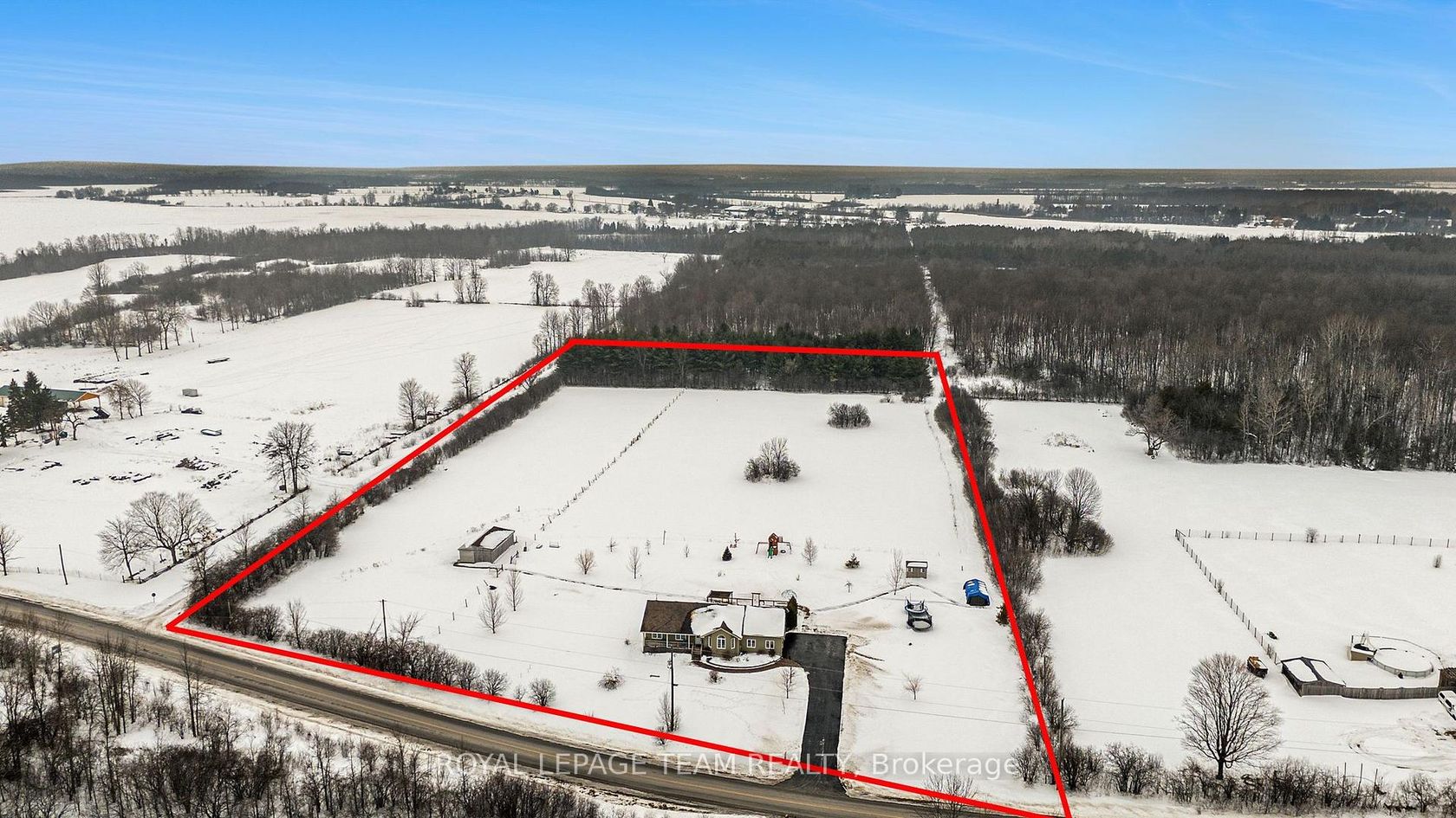 Wind your way home to this perfect country package, a charming 3-bedroom bungalow set on 6.8 acres with a 3-box-stall horse barn, dedicated pastures, and wide-open space to enjoy. Inside, the home offers a bright open-concept layout with vaulted ceilings and a large open-concept layout. The kitchen features a centre island, black appliances, and a view of the backyard, flowing nicely into a generous dining area with patio doors leading outside. This home is completely carpet-free, with hardwood flooring throughout the main level. The primary bedroom enjoys sunny southern exposure and peaceful views of the barn, along with a 3-piece ensuite and walk-in shower. Two additional bright and spacious bedrooms and the main full bathroom offer room to grow or host. Practical touches include an oversized double garage with inside entry to a mudroom and convenient main-floor laundry. Downstairs, the partially finished lower level provides a cozy family room with a corner fireplace, perfect for movie nights or quiet evenings in. Step outside and take in the views from the private rear deck overlooking the fields. A pergola offers shade and comfort, while the yard provides plenty of room for kids, pets, gardens, and all of the outdoor fun. There's also a garden shed and raised vegetable beds, and you can explore all the way back to the north boundary of the property. A beautiful rural lifestyle with space to grow, roam, and breathe, this one truly has it all.