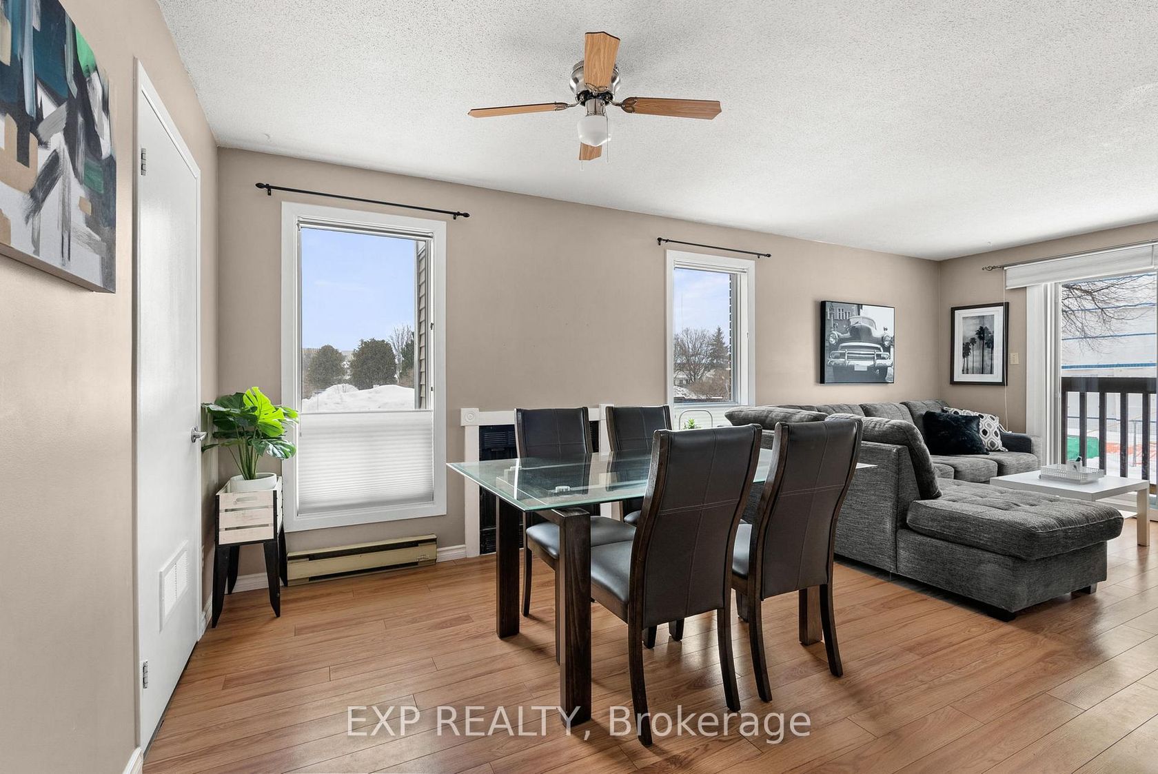 Welcome to this rarely available, beautifully maintained 3 bedroom, 2 bathroom, two-storey stacked townhouse condo in the heart of Kanata's family-friendly Katimavik neighbourhood. The bright open concept main level features a living and dining area with large windows and a patio door leading to a private balcony. An updated electric fireplace with remote and coloured lighting adds both warmth and character to the space. Updated laminate flooring runs throughout, giving the home a clean, move-in ready feel. The kitchen offers ample cabinet and counter space with a functional layout. A window above the sink brings in lovely natural light. Appliances are included - refrigerator, stove, dishwasher, hood fan, washer, and dryer. This level also includes a 2-piece powder room and a dedicated storage room. The lower level is where you'll find all three spacious bedrooms. Each bedroom features large windows, keeping the space bright and comfortable. The full 4-piece bathroom includes a tub/shower combination, modern vanity, and neutral finishes. The layout works well for families, roommates, or anyone needing additional office space. One parking space (#60) is included and located close to the unit for easy access. Situated minutes from Highway 417, Centrum Shopping Centre, transit, parks, schools, and everyday amenities, this is a strong opportunity for first-time buyers, investors, or anyone looking for an affordable entry into Kanata. Visit our website for further information about this Listing!