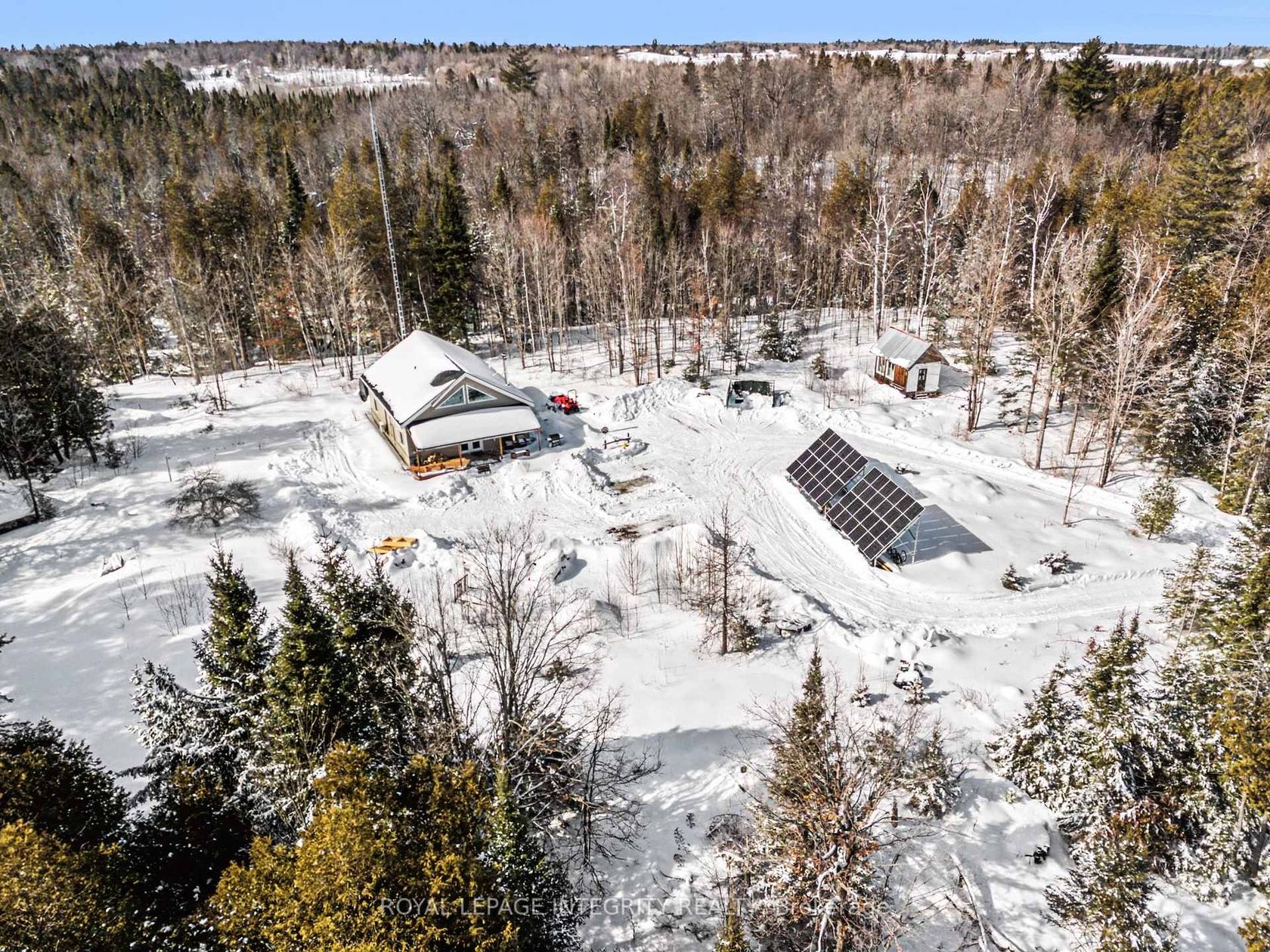 Set on approximately 25 acres of beautifully treed land with an incredible ~1,000 feet of frontage along the Clyde River, this one-of-a-kind 2021 build property offers a rare opportunity to live fully OFF GRID without giving up modern comforts. Designed with complete self-sufficiency in mind, the property is fully solar powered with Sol-Ark panels, brand-new top-of-the-line solar batteries, a gas generator for backup, propane, and a wood stove, ensuring comfort and reliability year-round. Every detail was carefully planned to create a true off-grid paradise, while still enjoying high-speed internet, doorstep Amazon deliveries and a quick 20 minute drive to Perth or Carleton Place for everyday amenities, Life here is about slowing down and reconnecting with nature, from watching the sunrise off the back deck to walking the trails throughout the property, tending the perennial gardens, gathering around bonfires while listening to owls, spotting deer, foxes, and rabbits, kayaking and fishing on the Clyde River, skating in winter, snowmobiling, and enjoying breathtaking stargazing and northern lights. The home features two main-floor bedrooms, a full bathroom, and a flexible den or storage room, perfect for everyday living or guests. Upstairs, a massive open loft serves as a third bedroom or expansive family room, easily accommodating a king-sized bed and TV area with a large sectional. The loft also includes a half bathroom with ample space to add a tub or shower if desired, and opens onto a second-storey deck facing true west, offering some of the most spectacular sunset views imaginable, with stairs leading directly down to the ground below. Driving down Proulx Road feels like entering a special place, with mature trees and natural landscaping that evoke the calm of a national park. This property truly offers the best of all worlds: peace, privacy, sustainability, and convenience.