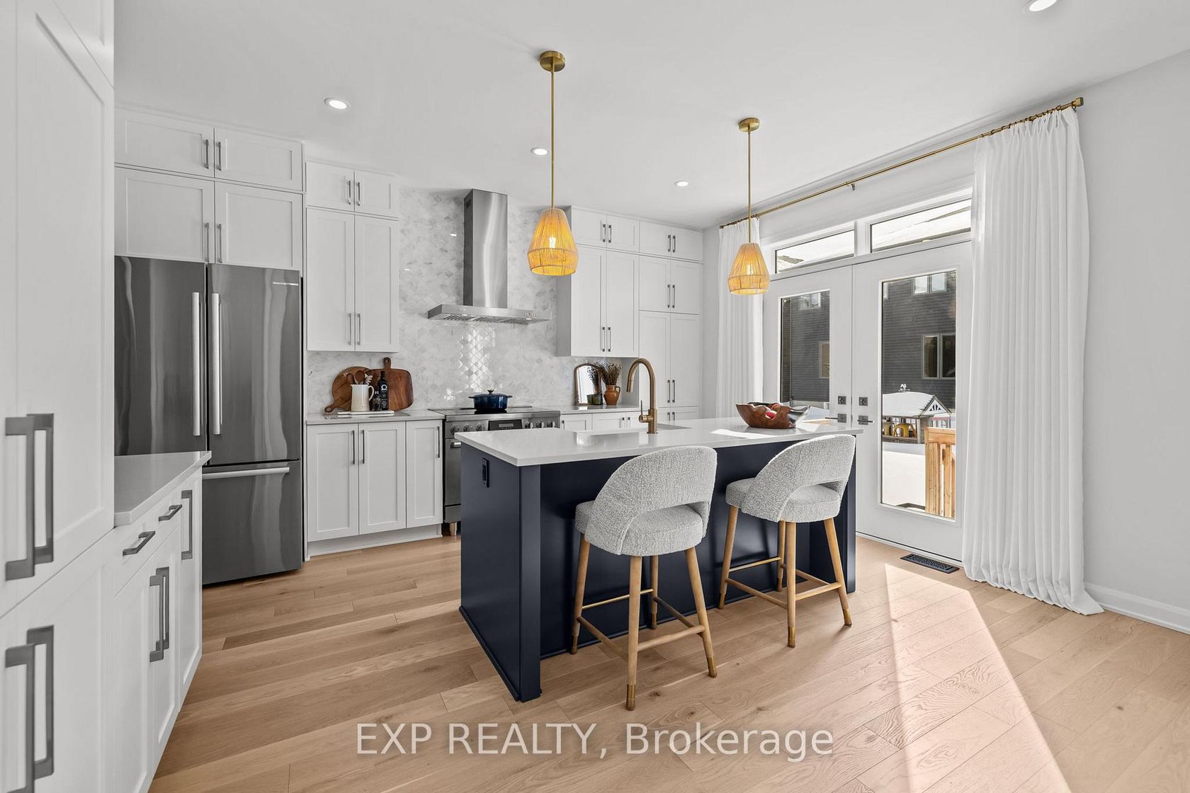 Nestled within the prestigious enclave of Mahogany in Manotick, this home is a masterclass in QUIET SOPHISTICATION and light-filled grace. Bathed in the soft glow of its SOUTH-WEST EXPOSURE, the home has been meticulously refined with over $160,000 in DESIGNER UPGRADES, creating a sanctuary that feels both timeless and deeply intentional. Both levels of the home unfold with soaring NINE-FOOT CEILINGS and the organic warmth of WHITE OAK HARDWOOD, where every element from the welcoming foyer to the seamless flow of the OPEN, AIRY LAYOUT is designed to let the home breathe. The heart of the home is a GRAND CHEF'S KITCHEN that balances high-end function with artisanal beauty, featuring CUSTOM TWO-TONE CABINETRY, a MOROCCAN MOSAIC MARBLE BACKSPLASH, and a classic statement apron sink. Ascending to the second floor, the sense of serenity continues with an EXPANSIVE OPEN LOFT and OVERSIZED BEDROOMS that ensure privacy for every member of the household. The PRIMARY SUITE serves as a TRUE RETREAT, offering DOUBLE WALK-IN CLOSETS and a spa-inspired FIVE-PIECE ENSUITE designed for ultimate relaxation. Set within one of Ottawa's most coveted communities, surrounded by nature and the charm of Manotick Village, this is a home crafted for BALANCE, LONGEVITY, and a lifestyle of ELEGANT TRANQUILITY.