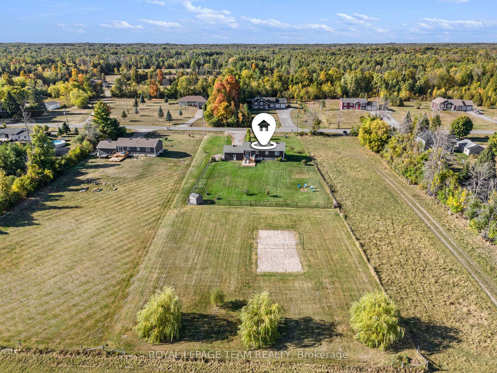 Welcome to 1503 Hyndman Road, a beautifully maintained 5 bedroom Multigenerational raised bungalow set on 1.5 acres of peaceful countryside between Kemptville and Spencerville. Located on a quiet country road just minutes from Highway 416, this property offers the perfect balance of rural living with convenient 30-minute access to Ottawa. The bright open-concept main floor features engineered hardwood flooring, porcelain tile, upgraded trim and lighting, and a custom kitchen with quartz countertops and ample cabinetry. The main level includes three bedrooms, including a spacious primary suite with private ensuite, plus an additional full bathroom. The fully finished lower level offers excellent flexibility and is ideal for multigenerational living or in-law suite potential. This level includes two additional bedrooms, a large bathroom, comfortable living space with propane stove, and a kitchenette complete with dishwasher and beverage fridge. A convenient mudroom provides direct access to the garage and backyard. Outdoor living is designed for both relaxation and recreation. The property features a large deck, fenced yard, propane BBQ hookup, and a rare regulation-size beach volleyball court. Additional highlights include trailer parking with electrical plug, Gener-Link system with portable generator, multiple outdoor water taps, and a septic system serviced in 2024 with risers installed for easy maintenance. Offering 5 bedrooms, flexible living space, and room to enjoy the outdoors, this property is ideal for families seeking space, privacy, and easy commuting access.