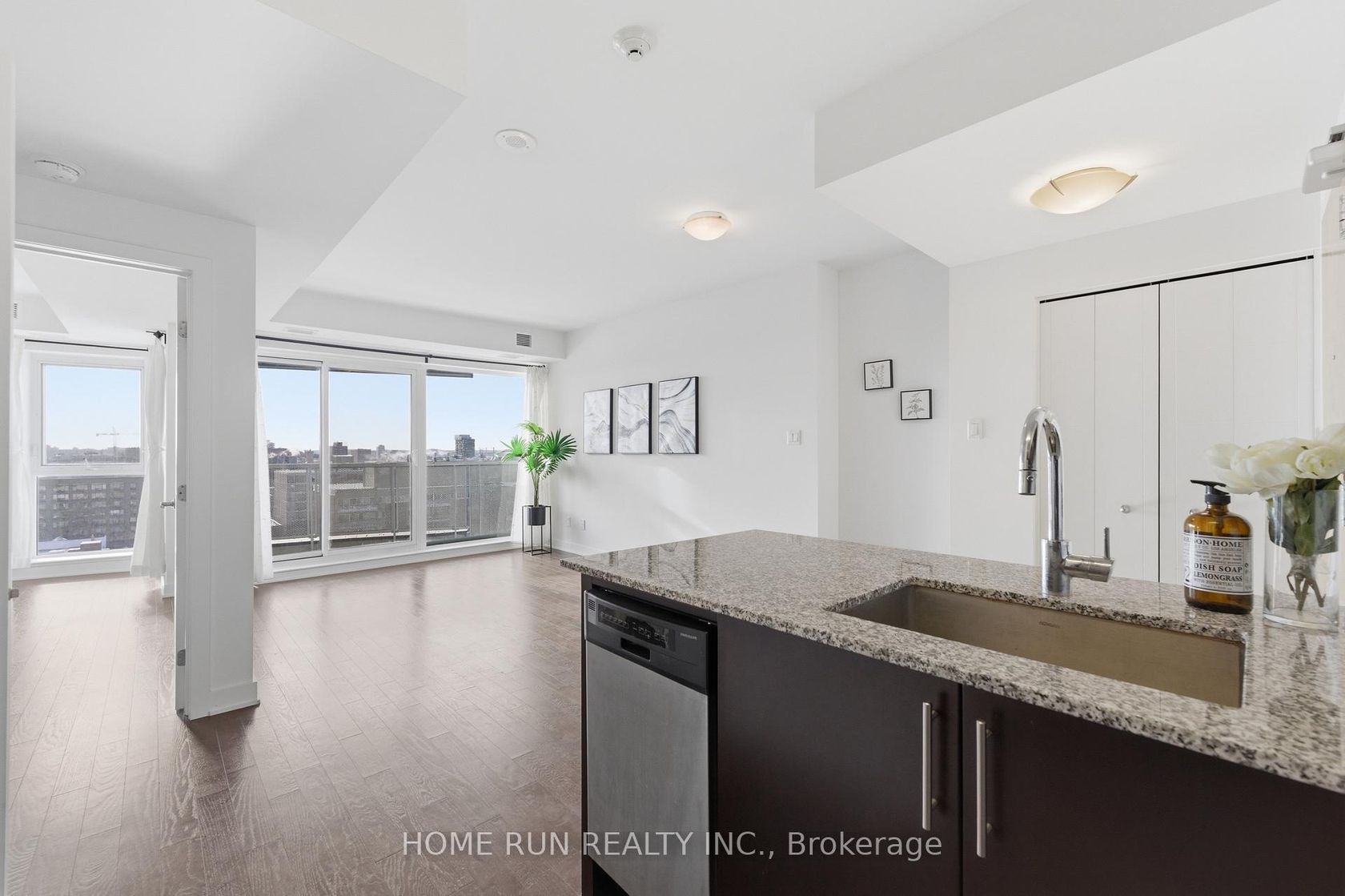 MOVE IN READY! Welcome into this bright and beautifully designed 1 Bed + 1 Bath condo on the 13th floor, offering approx. 670 sq. ft. of modern open-concept living. SOUTH facing Floor-to-ceiling windows fill the suite with natural light and showcase UNOBSTRUCTED city views. The contemporary kitchen boasts granite countertops, a breakfast bar, stainless steel appliances, and ample cabinetry-perfect for cooking and entertaining. The spacious living area flows seamlessly to your private balcony, an ideal spot to relax and enjoy the views. The bedroom offers a generous layout with space for more than just a bed, and includes a walk-in closet for excellent storage. The sleek 3-piece bathroom includes convenient in-suite laundry. One LOCKER is included. Enjoy resort-style amenities, including 24-hour concierge/security, indoor pool, fitness centre, guest suite, outdoor terrace with BBQs, and party/conference rooms. Located steps from Farm Boy (in the building), plus restaurants, pharmacy, LCBO, and a short walk to the LRT station, Parliament Hill, the National Arts Centre, and the Financial District. Experience luxury, location, and lifestyle - all in one address.
