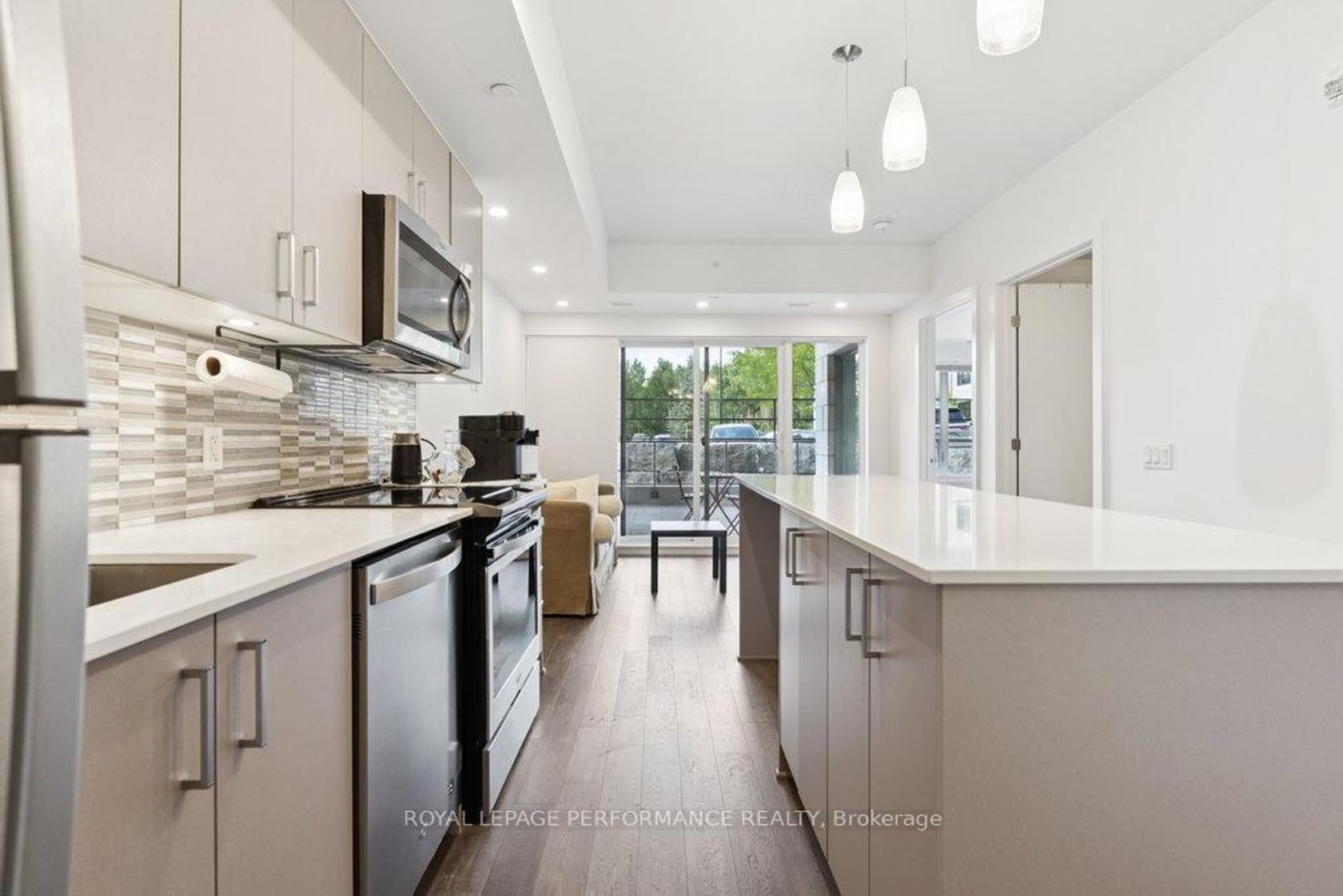 Welcome to 104-280 Herzberg! This stylish ground-level 1-bedroom plus den condo in The Serenity offers 729 sq. ft. of thoughtfully designed living space with premium finishes throughout. Step inside to discover 9' ceilings, wide-plank hardwood flooring, and a modern neutral palette that creates an airy, inviting atmosphere. The open-concept kitchen boasts sleek grey cabinetry, quartz countertops, stainless steel appliances, and a large island with seating that also serves as extra prep space. The versatile den is perfect for a home office or additional living area, while the spa-inspired bathroom features a glass shower with rain head, porcelain tile, and a quartz vanity. A true highlight is the spacious private terrace, ideal for entertaining, outdoor dining, or simply relaxing in a tranquil setting backing onto NCC green space. Additional conveniences include in-unit laundry, heated underground parking, and a storage locker. Residents of Serenity Condos also enjoy access to a rooftop terrace with forest views, a fitness centre, bike storage, and more. Perfectly located near golf at The Marshes, scenic trails (including a 4 km trail just steps from your door), as well as shopping and dining, this home offers the ideal blend of comfort, style, and convenience. Find floor plans, the status certificate, and more details at nickfundytus.ca.