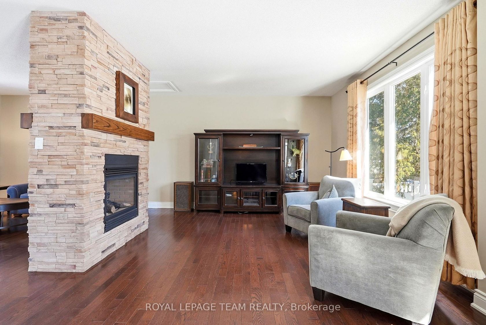 Set on a private 100ft x 150ft lot, this striking stone-front custom home in Morgan's Grant offers over 3,500 sq ft of beautifully finished space. Rebuilt in 2013 (foundation retained), the 3+1 bedroom, 2.5 bathroom residence combines modern comfort, thoughtful design, and family-friendly functionality with the rare feel of tranquil country living, just minutes from Kanata. The welcoming front porch leads into a dramatic two-storey foyer with equally impressive windows. The bright main level features thoughtfully designed living spaces, highlighted by a double-sided gas fireplace shared between the living & family rooms. The Deslauriers crafted chef's kitchen is well equipped for both family meals & hosting, offering a gas cooktop, double wall ovens, stainless steel appliances, generous prep & storage space, a breakfast area & a formal dining space. Upstairs, the oversized primary suite offers a walk-in closet, infrared sauna & a striking double-sided fireplace shared with its ensuite that features double vanities, a separate shower & a tub overlooking the backyard. Two additional bedrooms, a full bathroom - and a versatile loft overlooking the foyer (providing the perfect reading nook, office, or flex space!) completes this upper level. The fully finished basement extends the living space with a large recreation room, electric fireplace, storage room & optional guest or teen space. Step outside to the rear deck with awning, overlooking the expansive landscaped backyard complete with fruit trees - perfect for outdoor dining, entertaining, or relaxing in the natural setting. Plus, an attached two-car garage with inside entry, a mudroom with ample storage, main-floor laundry with powder room, and a paved driveway with space for additional vehicles. Take advantage of this unique opportunity to enjoy space, nature & community living with transit, shops, schools, ponds, parks, hiking, walking, and ski trails nearby. Min 48hr irrevocable.