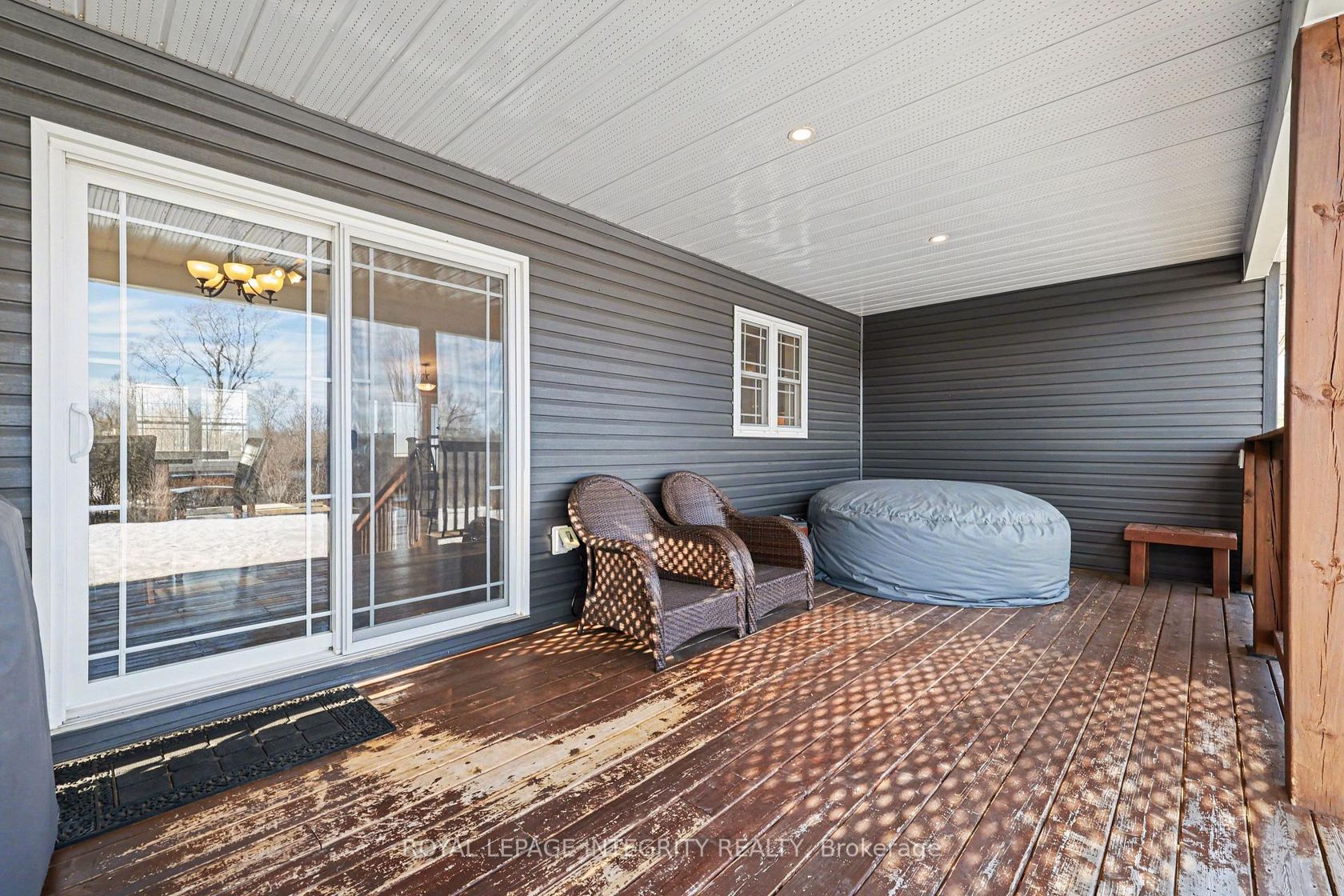 Welcome to this wonderful executive style bungalow in Montague Estates that neither lacks in space or high-end finishes. Just minutes outside the growing town of Smiths Falls you have that touch of country that so many desire in an established neighbourhood with executive style homes. A perfect place to raise a family or enjoy the home of your dreams. As you enter, the home greets with a grand open concept living/dining & kitchen. The living room has vaulted ceilings that lead into the dining area & kitchen as well. The dining area provides access via patio doors to the covered back deck with pot lighting. The back deck where you can enjoy morning coffee in the privacy of your backyard with no rear neighbours. Back inside the gorgeous kitchen offers plenty of storage, ss appliances & a convenient breakfast bar. Beautiful vinyl plank flooring runs through out most of the main floor. Down the hall is the main floor laundry, 2nd full bath, generous sized 2nd bedroom, mud room area with garage access and finally the spacious master suite with walk-in closet & 4 pc ensuite & linen closet. The L/L is home to an oversized family room with cozy wood pellet stove, expansive 3rd bedroom & 2pc bath. Potential for a 4th bedroom. There is also a large utility/storage room as well as walk-out to the garage. The 30' x 28' garage gives you plenty of space for vehicles as well as room for extra toys or storage. Make this your new home you won't be disappointed!