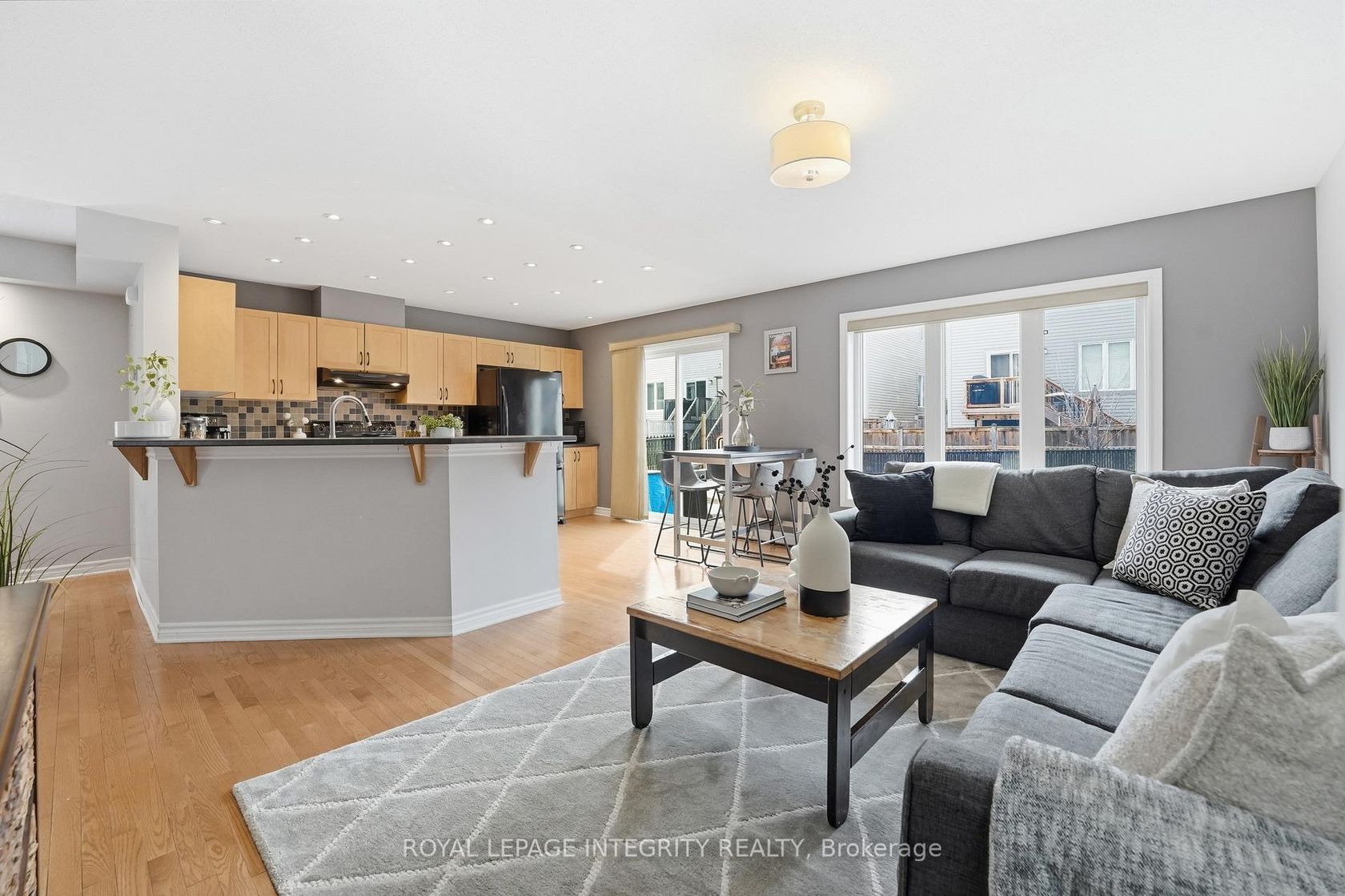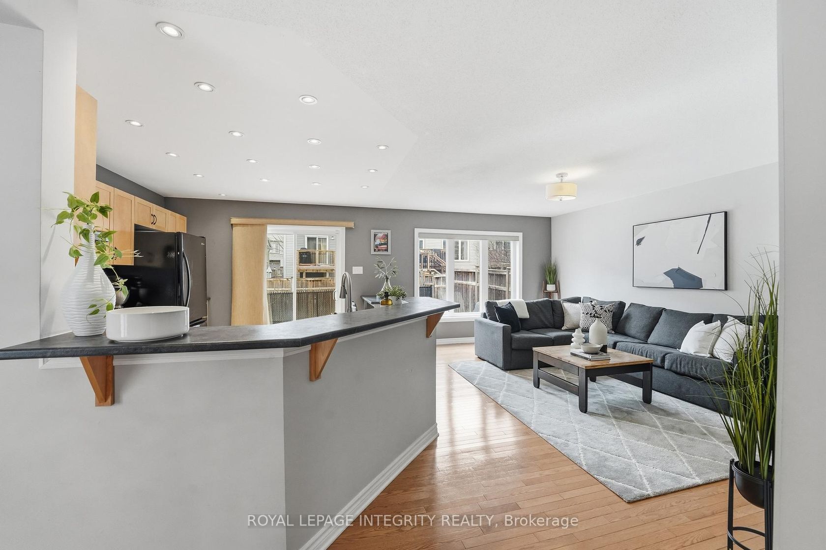 This end-unit townhome is nestled on a quiet, family-friendly street in sought-after Fairwinds. The bright and spacious main level features an open-concept kitchen, living, and dining area-perfect for everyday living and entertaining. The kitchen offers upgraded appliances, stylish backsplash, and a convenient breakfast bar, while large windows throughout the home flood the space with natural light. Upstairs you'll find generously sized bedrooms, including a primary retreat with a large walk-in closet and private ensuite with shower. Fresh paint in the front bedroom and ensuite (2025) adds a crisp, modern touch. The second-floor laundry provides everyday convenience. The professionally finished basement features pot lights throughout and a raised floor, creating a comfortable additional living space along with plenty of storage. Step outside to a fully fenced backyard-ideal featuring an updated interlock back patio perfect for relaxing or entertaining. Recent updates include a new shingles (2025), hot water tank (2025), and dishwasher (2025) for added peace of mind. Conveniently located just a short walk to transit and close to the Canadian Tire Centre, Highway 417, restaurants, and shopping.