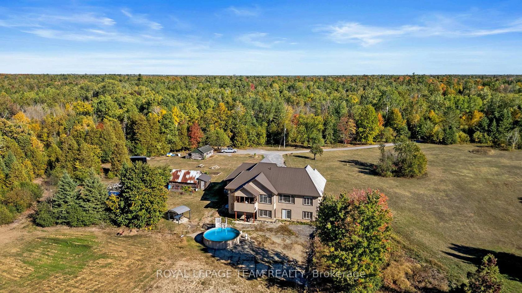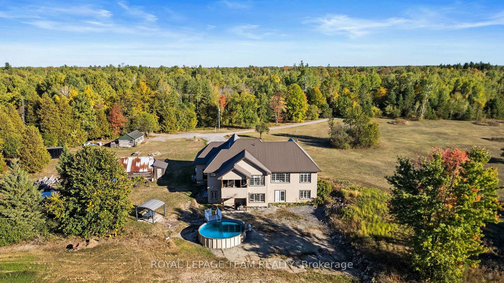Welcome to your dream country escape! Nestled on nearly 300 acres of pristine land, this exceptional 5-bedroom, 3-bathroom walk-out bungalow offers the perfect blend of comfort, quality, and opportunity. Built approx 10 years ago to the highest standards, this home features ICF construction from foundation to roofline, providing superior energy efficiency (ask about the R-value!) and incredible year-round comfort, topped with a lifetime steel roof for peace of mind. The spacious main floor boasts a high-end kitchen, with a bright dining area and walk-out to the elevated deck (ideal for morning coffee with wildlife views), a cozy living room, and three generous bedrooms including a private primary suite with ensuite bath. The two additional bedrooms share a full bath. A main floor office & bonus room above the garage give more flexibility. Below, the light-filled, walk-out basement offers radiant in-floor heating, two more bedrooms, a roughed in bathroom, and a family room that opens to a backyard oasis complete with a pond that freezes for winter skating & hockey. Dual heating systems, propane and a large outdoor wood furnace, keep utility bills in check. Cut your own wood from the land and heat the home for next to nothing! Radiant floor heating extends into the insulated triple car garage. The wood furnace is powerful enough to heat additional structures, offering excellent flexibility for future development. Outbuildings include a cabin with a wood stove and bunkbeds, perfect for guests or a rustic retreat. There's also a large barn with dual rafters for storage or hobby use. With hydro capacity to support a second home and zoning that permits one, the potential for expansion or multi-generational living is real.Trails wind through the landscape, teeming with deer, moose, turkey, and even the occasional bear, a true paradise for nature lovers, hunters, and those seeking peace and privacy. Contact the listing agent for a full list of premium construction details.
