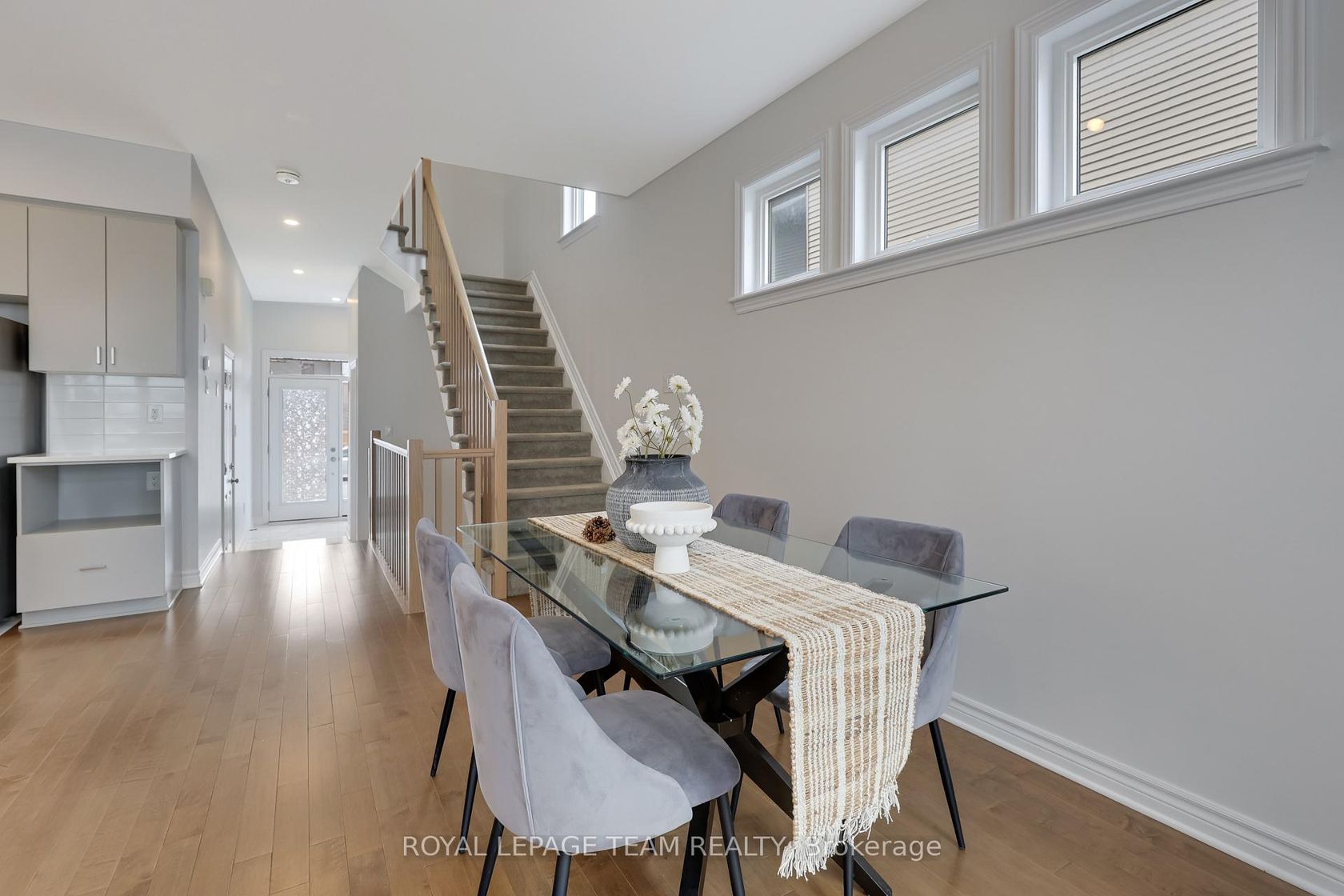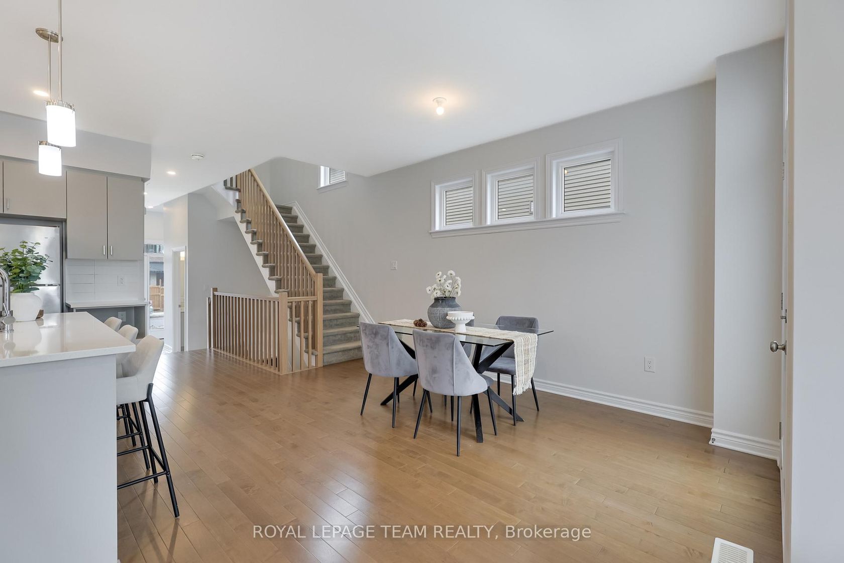This beautifully upgraded END-UNIT townhome with a 2NE-LEVEL LOFT and a WALK-IN PANTRY offers the perfect blend of space, natural light and modern finishes in the family-friendly community of Stittsville South. Built by renowned builder Richcraft and featuring the popular Cobalt layout with about 2000 sq ft of living space including a finished basement family room, this home stands out with its desirable end-unit lot that provides additional privacy and 6 SIDE windows, bringing even more natural light into the home. The welcoming front entrance leads into a thoughtfully designed main level where hardwood flooring and pot lights create a warm, contemporary feel throughout the open living and dining areas. The kitchen is both stylish and functional, featuring quartz countertops, modern cabinetry, stainless steel appliances, a walk-in pantry, and workspace that flows seamlessly into the dining area, where additional end-unit windows bring in abundant natural light. A powder room and interior access to the garage with automatic opener complete the main floor. Upstairs, the 2nd level offers 3 bedrooms and 2 full bathrooms, including a spacious primary bedroom with its own ensuite and walk-in closet. Quartz countertops continue in the upstairs bathrooms, adding a consistent modern finish throughout the home. A bright LOFT area is a standout feature, providing flexible space for a study, reading nook, or home office. The finished basement expands the living space with a large family room and a cozy gas fireplace ideal for relaxing or entertaining, while unfinished space and the 3-piece rough-in offer storage and future possibilities. Outside, the end-unit lot provides more openness and light than typical townhomes. Located within the highly regarded All Saints school boundaries and close to parks, transit, grocery stores, cafés, schools, and everyday amenities, this home combines modern comfort and a convenient location in one of Ottawa's most desirable neighbourhoods.