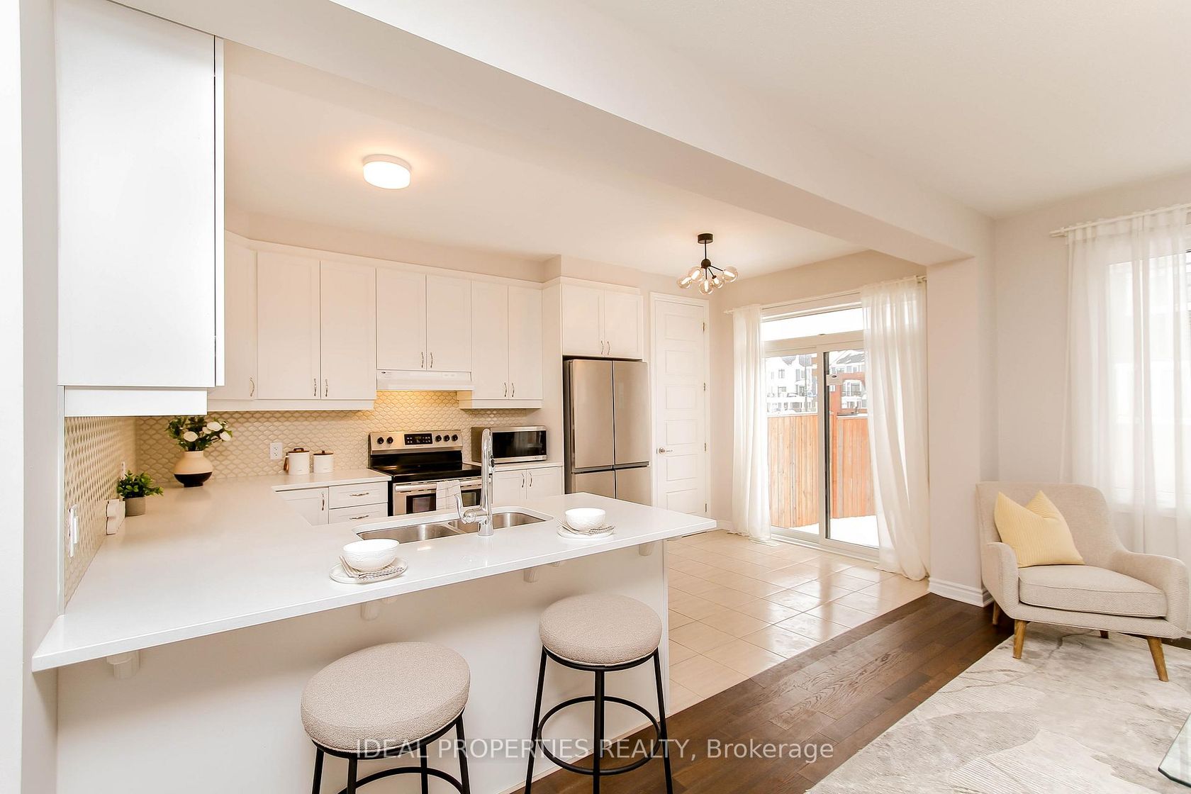 This beautifully upgraded Mattamy Lilac model welcomes you with a charming front porch and a bright, inviting foyer with walk-in closet. The main level features a spacious open-concept living and dining area, perfect for everyday living and entertaining. Enjoy morning coffee at the breakfast bar in the stylish U-shaped kitchen, complete with quartz countertops and enhanced by designer lighting fixtures throughout. The sun-filled breakfast nook offers bright patio doors that open to a fully fenced backyard, ideal for relaxing or hosting guests. Upstairs, the home offers 3 bedrooms and 2.5 bathrooms, including convenient second-floor laundry located near the main bath between bedrooms two and three. A dedicated computer alcove provides the perfect space for a home office or study area. The private owner's retreat features a walk-in closet and a beautifully appointed ensuite. Additional highlights include a single attached garage and a basement with rough-in, offering future flexibility.