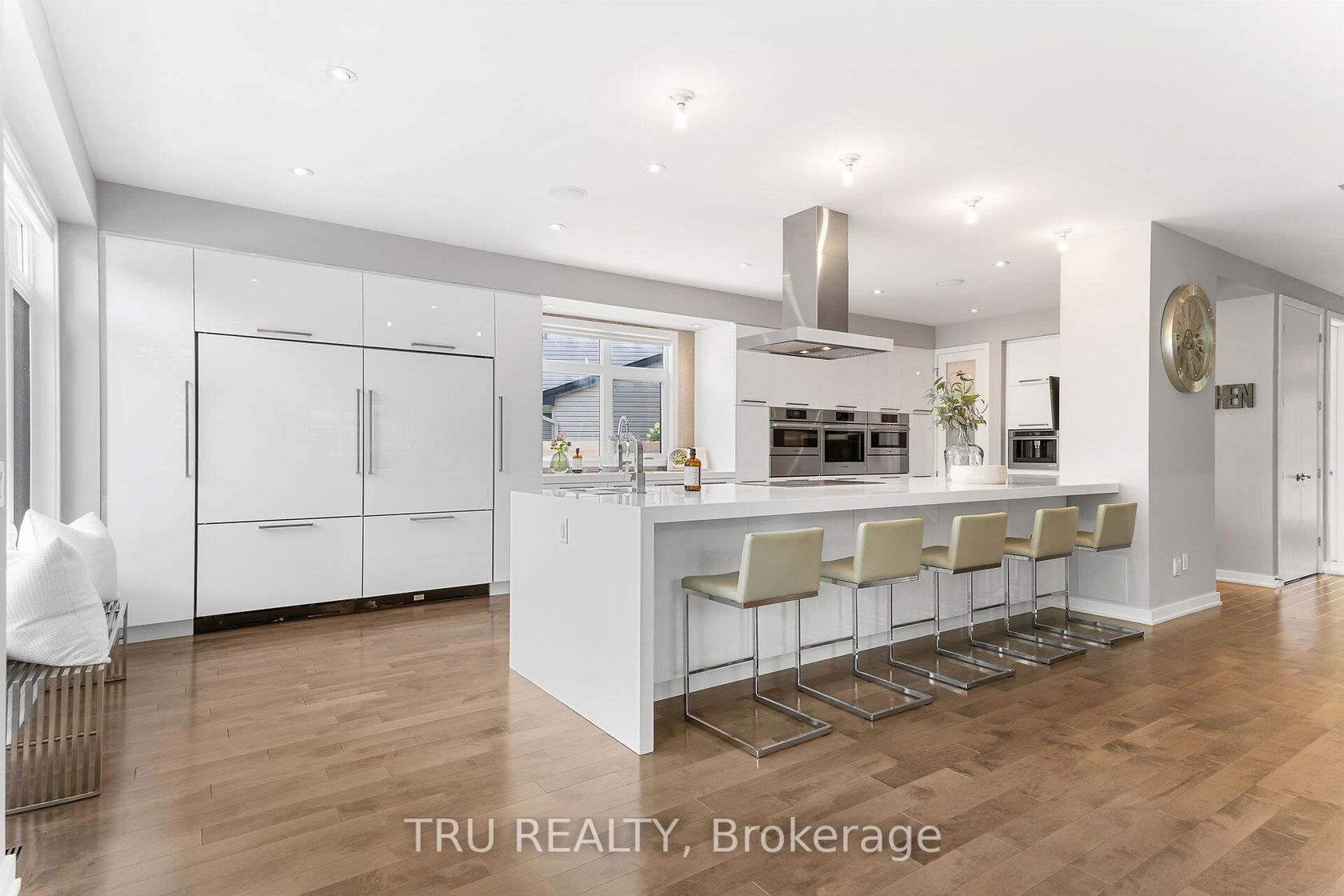 Absolutely one of a kind- experience the extraordinary in the heart of Bridlewood. This fully customized Borden model is a home unlike anything else in Kanata, where luxury, sophistication, and comfort reach a level rarely seen.Set on an oversized lot with over $330,000 in premium upgrades, this property isn't just a house-it's a statement. From its striking curb appeal to its modern architectural lines, every detail reflects one of the most distinguished homes in Ottawa.Inside, a sun-filled open-concept layout with pristine hardwood floors flows seamlessly into a true chef's kitchen-a masterpiece featuring a massive island, built-in ovens, an induction cooktop, and a dedicated coffee station, all designed for elevated entertaining.The living room impresses with soaring two-storey ceilings, a dramatic floor-to-ceiling tiled feature wall, and a sleek linear gas fireplace with integrated media-creating a space that is both refined and unforgettable.Upstairs, the primary suite offers a spa-inspired retreat, while three additional bedrooms each feature their own ensuite, delivering comfort and privacy for family and guests alike.The fully finished basement extends the living space with a fifth bedroom, a full ensuite, and a stunning home theatre-perfect for hosting and unwinding in style.Step outside to your private backyard sanctuary, complete with Premium Mega Melville XL slab interlock, a 5-ft in-ground pool, and mature cedar trees, offering a serene, low-maintenance escape.This is more than a home-it's an unparalleled luxury residence in one of Ottawa's most sought-after communities.