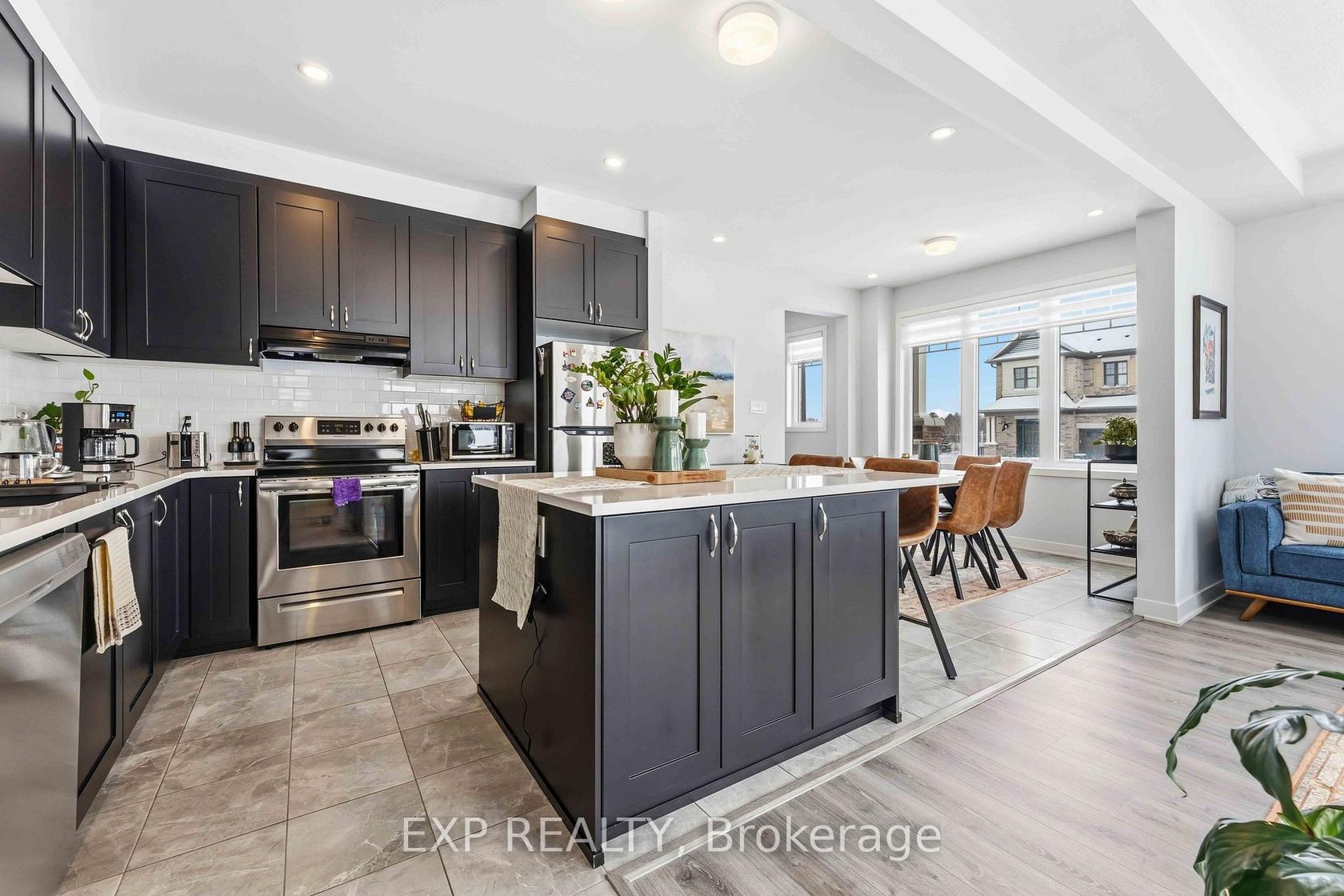 Welcome Home. A beautifully upgraded 3-bedroom, 2.5-bath Mattamy end-unit, corner townhome on large premium lot in the desirable community of Richmond. This home offers extra windows, abundant natural light, and stylish modern finishes throughout. The bright foyer opens to an impressive open-concept main floor featuring 9-foot ceilings, elegant vinyl flooring, and pot lights. Enjoy a spacious family room and dining area perfect for entertaining, plus a versatile separate living room or home office and convenient powder room. The modern kitchen and pantry is designed for both functionality and style; it showcases a crisp white backsplash, stainless steel appliances, ample cabinetry and generous counter space. Upstairs, the primary bedroom retreat features a walk-in closet and private ensuite bathroom. Two additional well-sized bedrooms, a full bathroom, and second-floor laundry complete the upper level. Located on a premium end-unit lot, this home offers the perfect blend of comfort, style, and convenience in a growing family-friendly community. It feels brand new. You will be impressed!