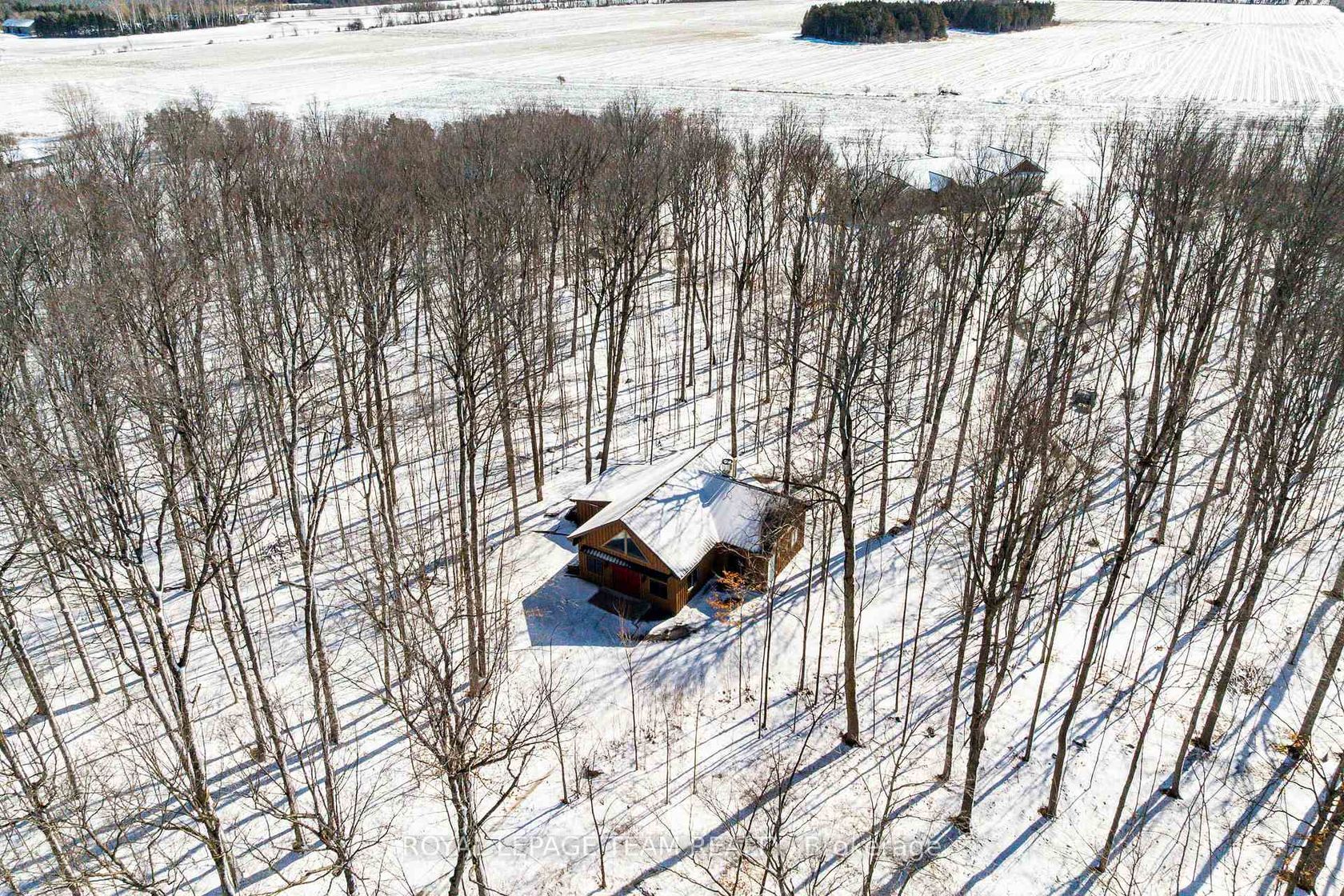 Set on nearly 12 acres of breathtakingly private countryside, this extraordinary custom-built estate offers a rare blend of refined luxury & peaceful rural living. Surrounded by mature forest & farmland, the property offers privacy with no neighbours; creating a serene retreat within easy reach of city amenities. Inside over 3,300sf of beautifully finished living space above grade unfolds beneath soaring ceilings and oversized windows that flood the home with natural light. The elegant living room is anchored by a floor-to-ceiling stone fireplace, while extensive millwork, wainscotting, & designer lighting elevate every space. The gourmet kitchen is both sophisticated and functional, featuring s/s appliances, cabinetry, island & a bright dining area that opens onto the expansive rear deck-perfect for entertaining while enjoying sweeping country views. A stunning sunroom with a double-sided fireplace offers a cozy yet refined space to relax and seamlessly connects indoor & outdoor living. The luxurious primary retreat features vaulted ceilings, private deck access, & a spa-inspired ensuite; complete with a double shower, soaker tub overlooking the countryside, & walk-in closet. Four additional bedrooms & an oversized laundry room with dual washer and dryer sets provide exceptional functionality. The fully finished walk-out lower level with radiant in-floor heating offers versatility, featuring 3 bedrooms, a full bathroom, & expansive recreation areas, ideal for extended family or multi-generational living. Built with ICF construction & a timeless heritage-style metal roof, this bungalow showcases superior craftsmanship, efficiency, & lasting quality. A large insulated outbuilding offers endless possibilities with hydro service, propane heating, & infrastructure for future radiant heat. The grounds also feat a goat barn with electricity, fenced animal areas, extensive landscaping, a large two-tier deck, & a substantial concrete pad ideal for sports or recreation.