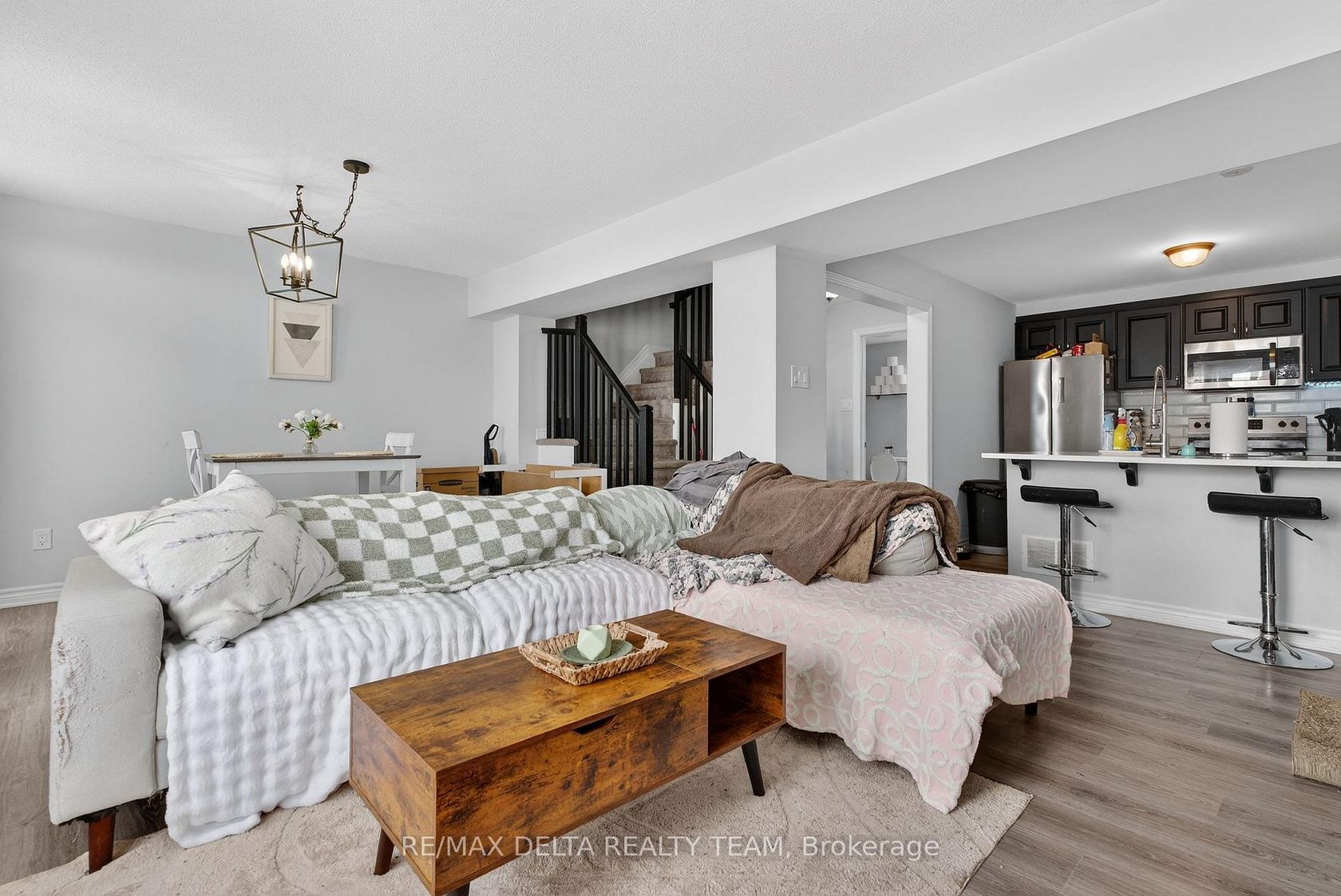 Welcome to 94 Feathertop - a stylish and well-maintained 2-bedroom, 3-bathroom townhouse located in the highly desirable Trailwestcommunity of Kanata. Built by Mattamy (Sweetriver model), this home offers a modern, open-concept layout designed for both comfort andfunctionality. The main level features a versatile den, ideal for a home ofce, gym space, or quiet retreat. Upstairs, enjoy a bright and spaciousliving and dining area with seamless fow into the contemporary kitchen, complete with stainless steel appliances, quartz countertops, breakfastbar, double undermount sink, and a sleek tile backsplash. Step out onto your private balcony - perfect for summer BBQs and relaxing evenings.The top foor offers a generous primary bedroom with a walk-in closet and private 3-piece ensuite. A second well-sized bedroom and fullbathroom complete the level. Convenient second-foor laundry adds to the home's practicality. Located close to parks, schools, shopping, andtransit, this home offers the perfect blend of convenience and modern living. R