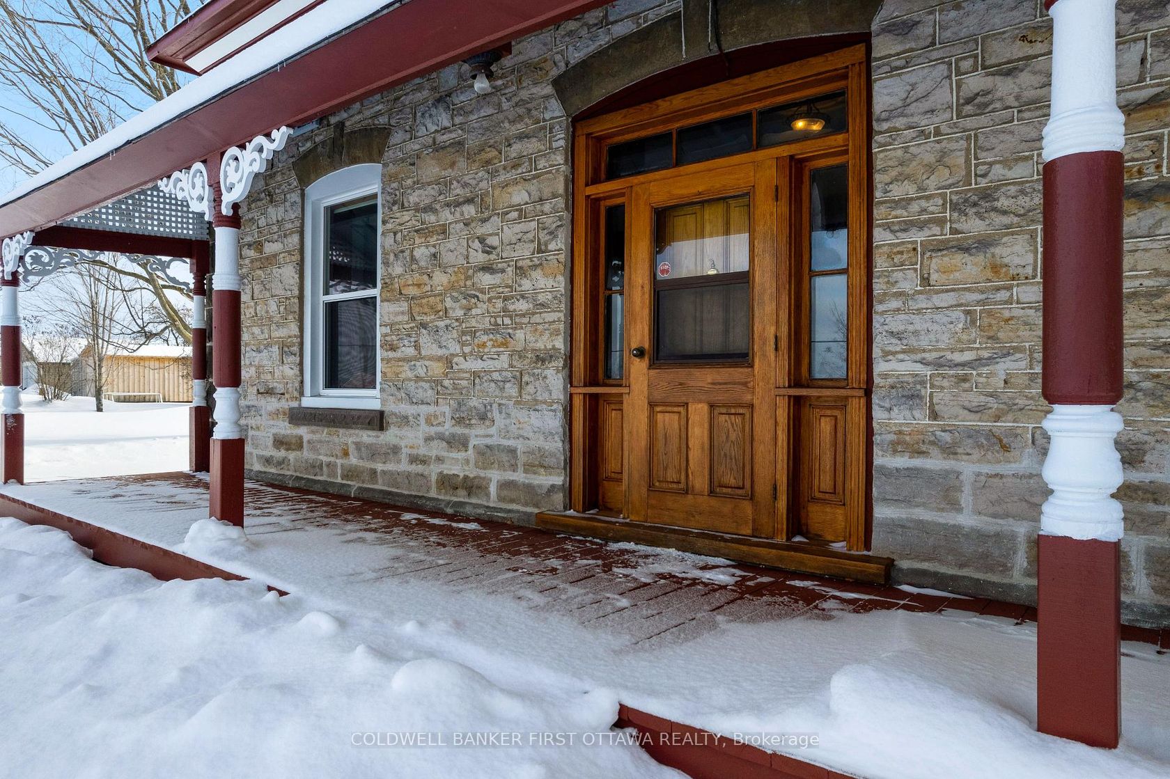 The appeal of this century stone home begins with its attractive quoin corners and gingerbread trim on the endearing verandah. Welcoming front entrance has lovely stone arch above the solid wood door with charming side panels and transom. Inside, the design is of warm tradition with 9 ft high ceilings, deep window sills and wide baseboards. The 4 bedroom 2 full bathroom home is also freshly painted throughout, with a pleasing calm colour palette. In the living room, light flows through three big windows and reflects off the laminate plank flooring. The formal dining room has two tall windows that are so beautifully trimmed, it could only have done by yesteryear handcraft. Classic French door opens to country kitchen with eating area and counter-to-ceiling pine cabinetry that provides endless storage. The main floor 3-pc bathroom has wall of storage cabinets. Mudroom has another wall of closets and laundry station. On the second floor, you have sitting nook, three-piece bathroom and four good-sized bedrooms with lots of extra-large closets. Attached to the back of home, accessed via the mudroom, is huge former summer kitchen with expansive loft - providing great flex space for possible family room, workshop or studio. The basement has thick stone walls and utility area. And, you will be pleased with all the home's upgrades including 2018-2021 windows, new 2024 propane furnace with smartphone compatible thermostat, 2022 hot water tank and 2022 septic system. Outside is large half acre with mature trees and space for gardens. Plus, barn-styled shed with loft and metal roof, ideal for storage and projects. High speed and cell service available. Located on paved township road with mail delivery and school bus route. Just 10 mins to Perth.