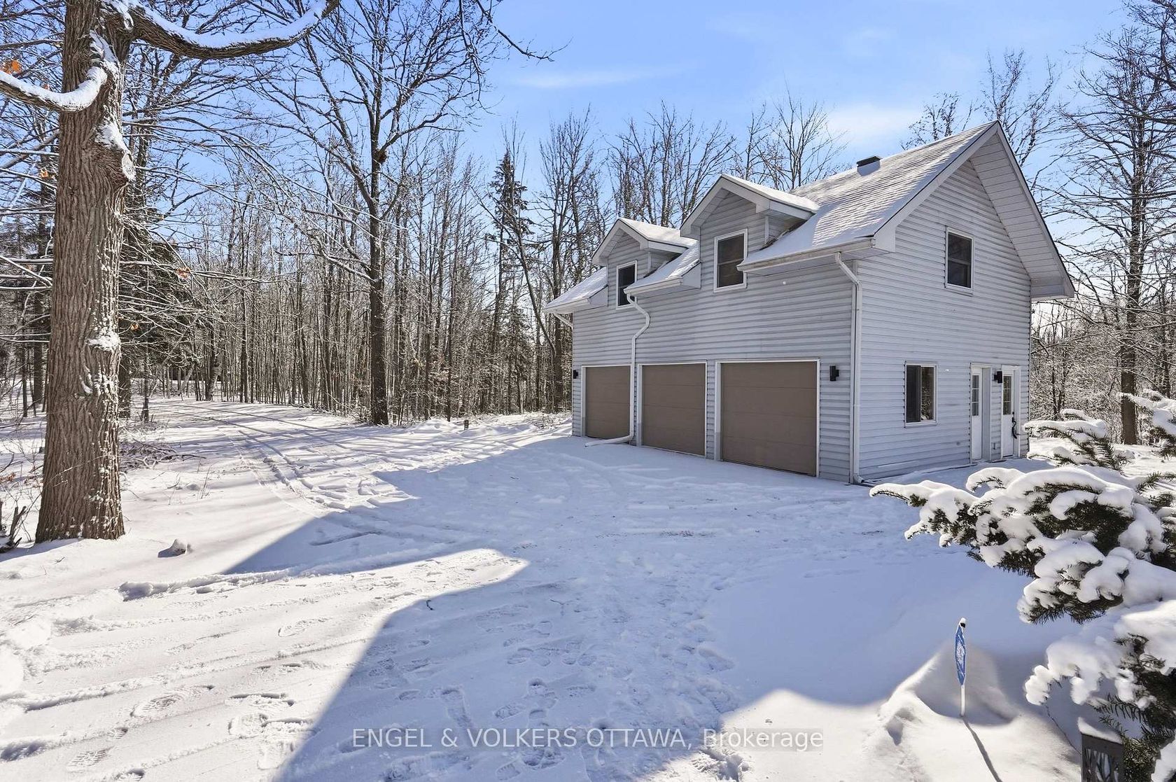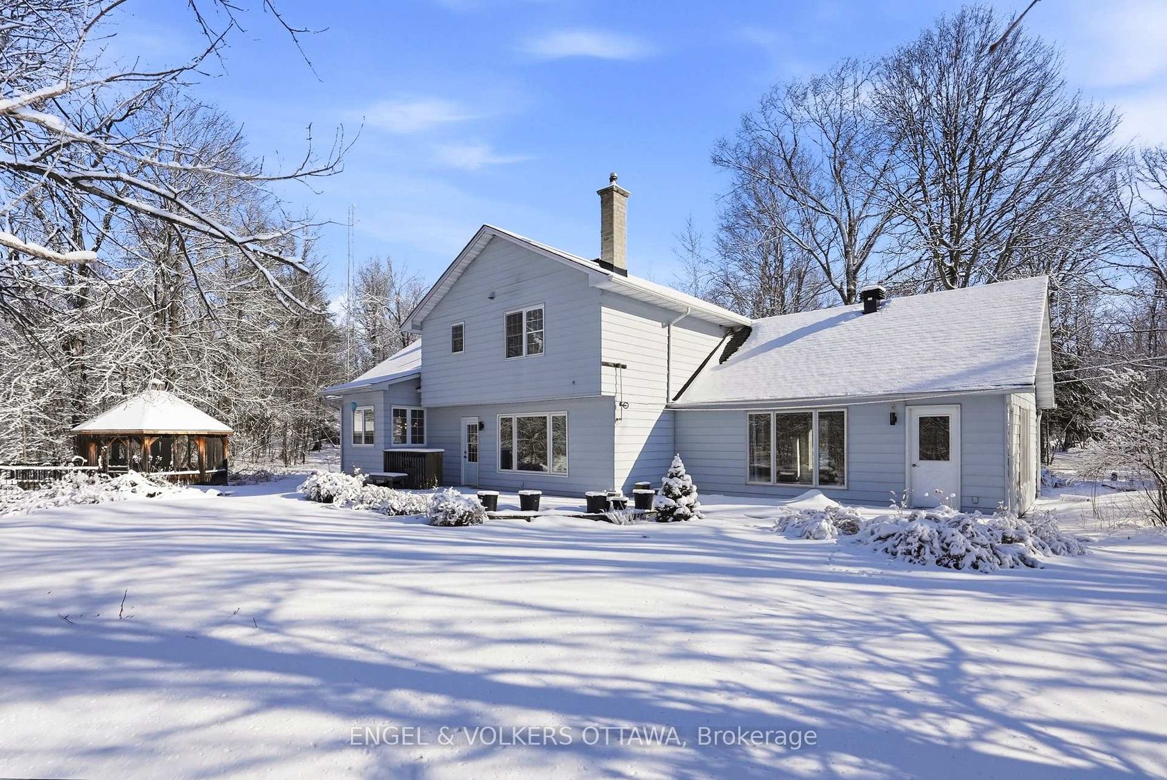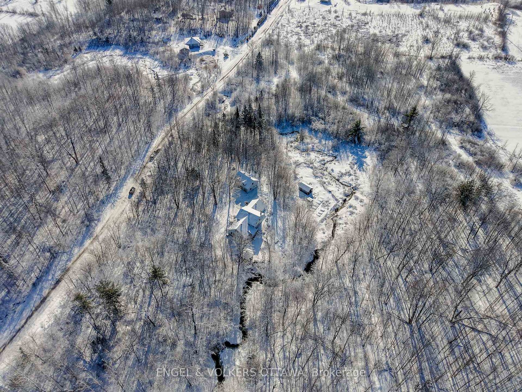 Set well back from an already quiet road, this 6-acre Dunrobin property offers a rare kind of privacy, fully treed, with a creek running through the backyard and nothing but forest around you. It's the kind of setting that feels remote, but isn't, just 15 minutes to March Road shopping, including the March Rd McDonald's and nearby retail. Country living, without the friction. The home has been thoughtfully updated and exceptionally well-maintained. Fresh paint and new flooring carry throughout, with natural light pouring into every level. A front office just off the entry offers a practical work-from-home setup. The main living space is warm and inviting, anchored by a wood-burning fireplace, exposed beams, and large windows that bring the outside in. The kitchen features quartz countertops and a unique eat-in pocket, perfect for a built-in diner-style booth or casual table setup. The layout is generous, with 4 bedrooms, 3 bathrooms, a recently updated ensuite, plus a massive dedicated gym space. Big-ticket items are handled, roof 4 years, furnace, A/C, and hot water tank 5 years, baseboard heating converted to central air, oil converted to propane and a reverse osmosis water system. The unfinished basement offers excellent storage now, with clear potential to be fully finished down the line. Outside is where this property really separates itself. A large deck spans the rear of the home, anchored by a substantial gazebo with a newly redone roof, ideal for entertaining or just slowing things down. Gardens, a chicken coop, and open usable land blend into the surrounding forest. Above the detached 3-car garage, the 1-bedroom loft with its own kitchen offers flexible space ideal for a teen retreat, guest suite, or creative use like a studio or woodworking space. Previously generating approximately $1,000 per month, it's there if you want the income or simply the added versatility.