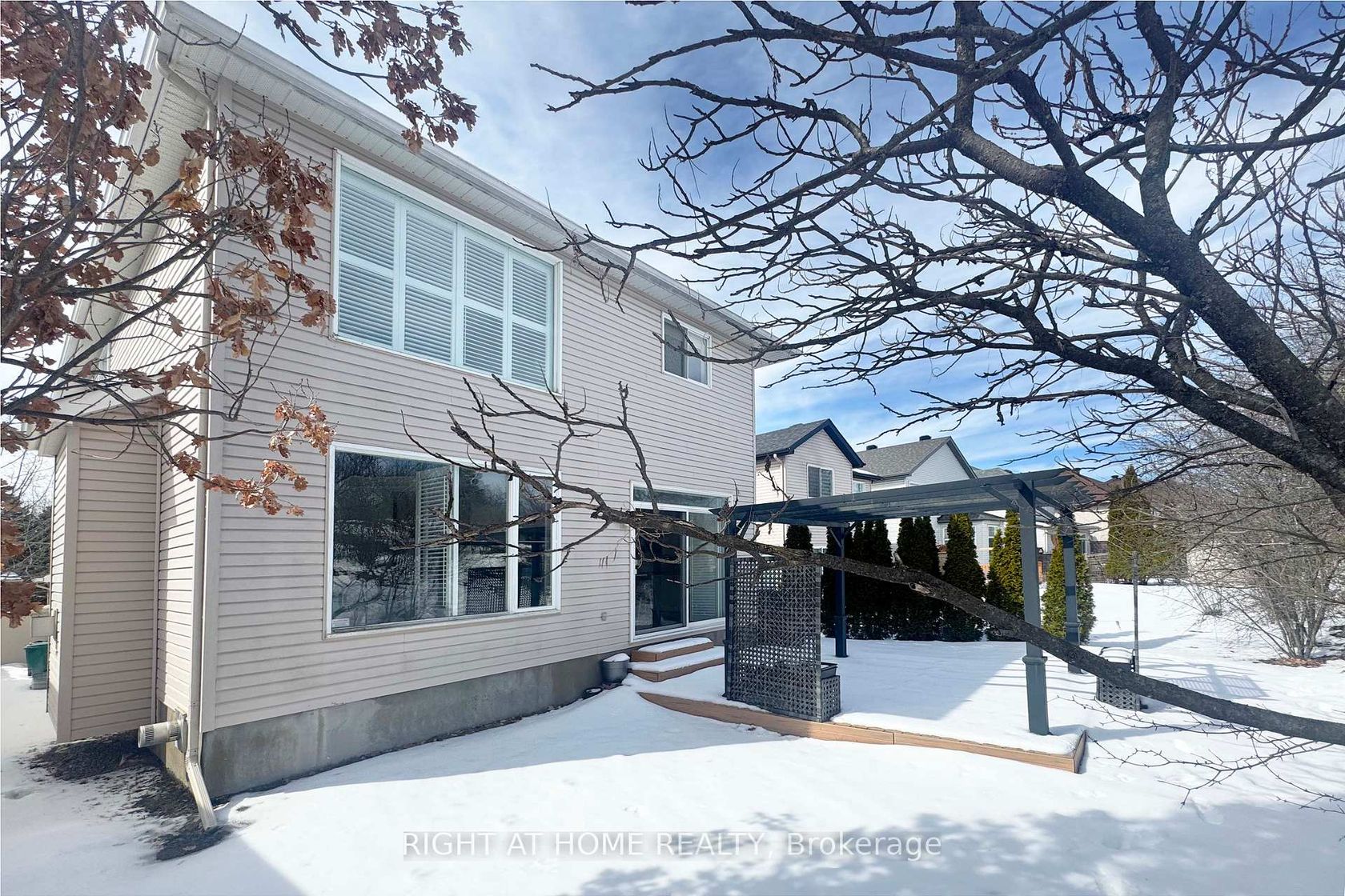 RARELY OFFERED! Rare opportunity to be in one of Ottawa's top school areas and at the same time enjoying Natural Beauty! This Classic detached home sitting on a generous 45ft x 157ft PREMIUM LOT in the sought-after Kanata Lakes community, enjoys a beautiful view of the TREES and the attractive ROCK OUTCROP in the PRIVATE Backyard. The exterior features a charming covered Porch, a FULL interlock driveway, front walkway and raised flower bed. The inside is just as impressive with many updates including the 8ft * 4ft Huge Island with Granite Countertops & Up-To-Ceiling Cabinets in the Renovated Chef kitchen, Fully renovated full bathrooms in 2022, 4-inch Hardwood flooring on 1st floor and 2nd floor hallway, high-end carpet (2018) in all bedrooms, and more. Imagine evenings spent in the impressive family room, crowned by a full 2-Story Window Wall with California Shutters that bathes the space in natural light. Boasting around 9-foot ceilings on the main floor, elegant hardwood stairs with Iron Spindles lead to the upper level, where four well-proportioned bedrooms await, highlighted by a tranquil primary bedroom with a vaulted ceiling, a cosy Window Seat with Additional Storage, a walk-in closet, a private balcony and a fully renovated ensuite complete with a modern Double Sink vanity and a High-end sleek Glass shower. 3 other good-sized bedrooms and a fully renovated full bath complete 2nd level. Basement is fully finished offering additional living room and recreation room with the 2nd gas fireplace, many pot lights and plenty of storage. A Private backyard with a deck & Pergola offers both privacy & the perfect setting for entertaining or quiet moments with nature. Furnace-2014, AC- 2014, Roof-2013, Garage Door-2023, Basement flooring-2025. 10+! JUST MOVE IN !!!