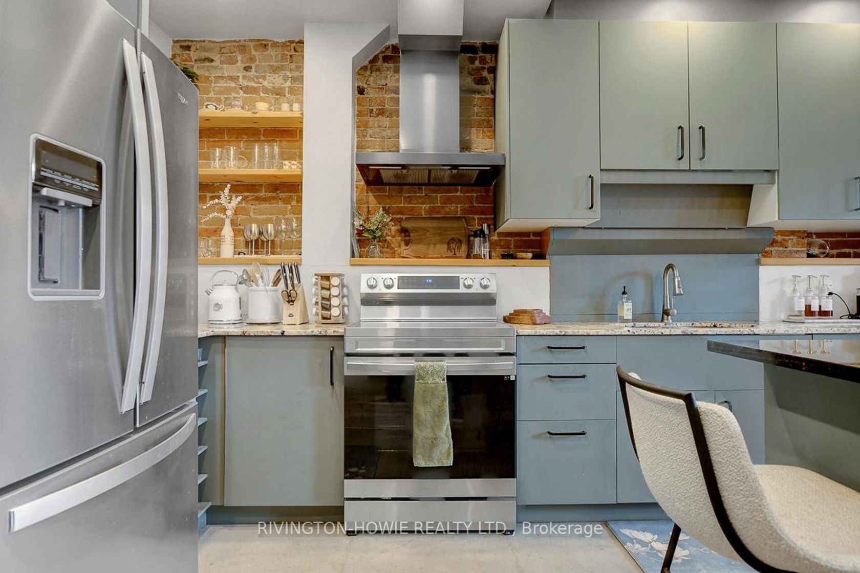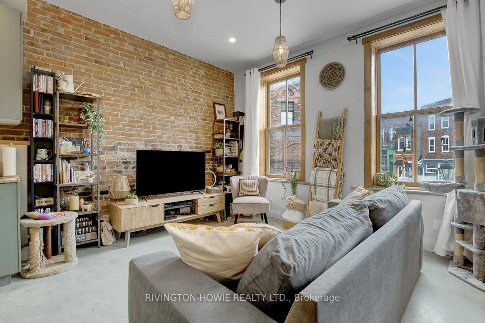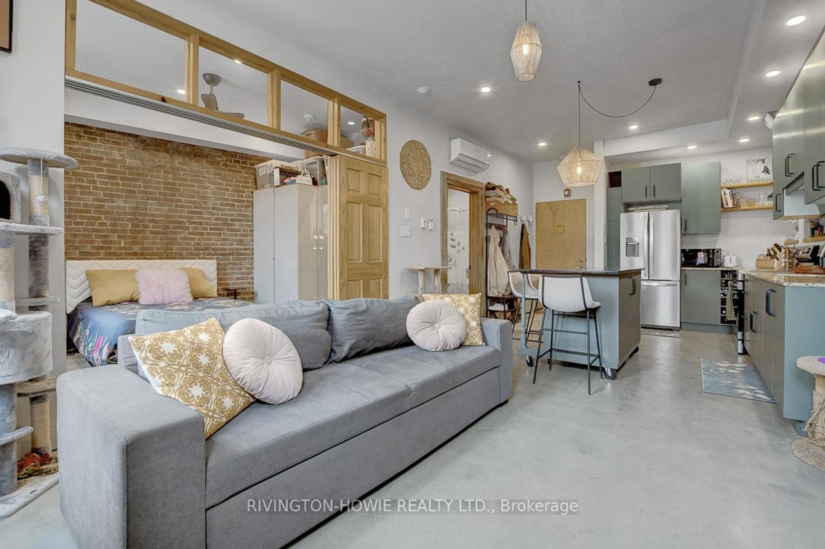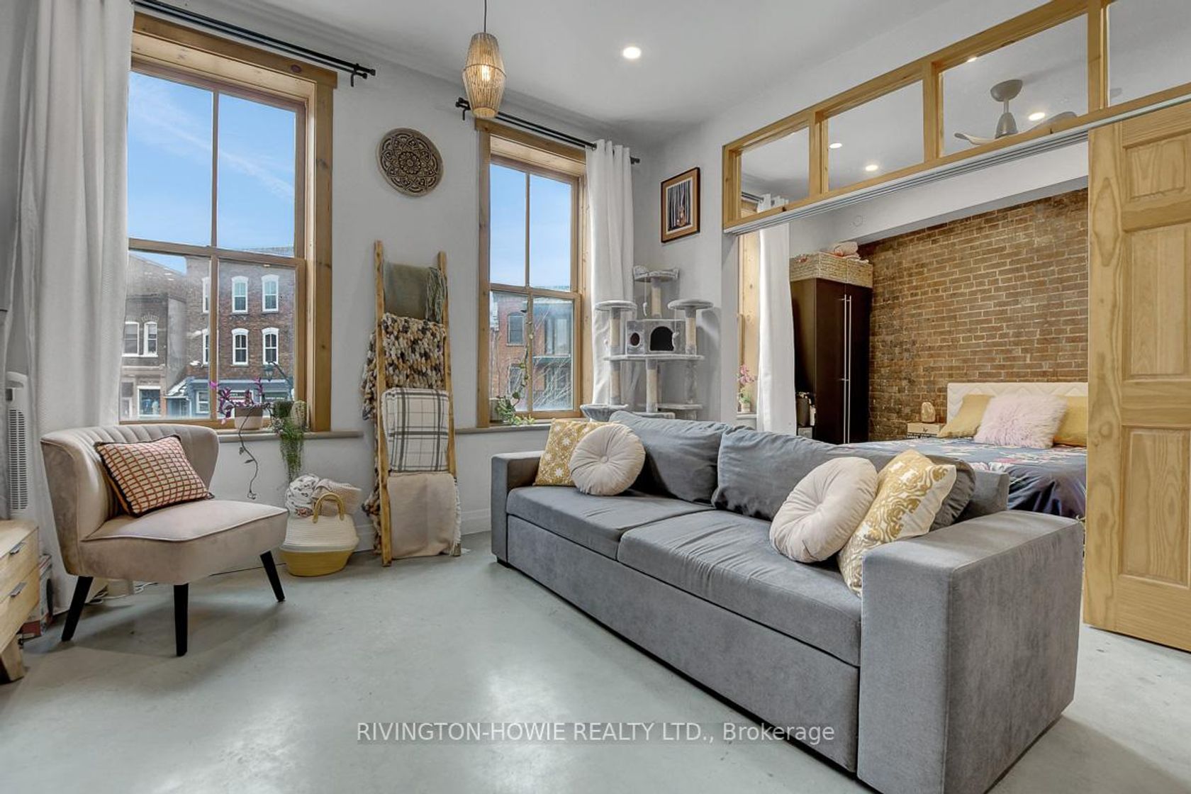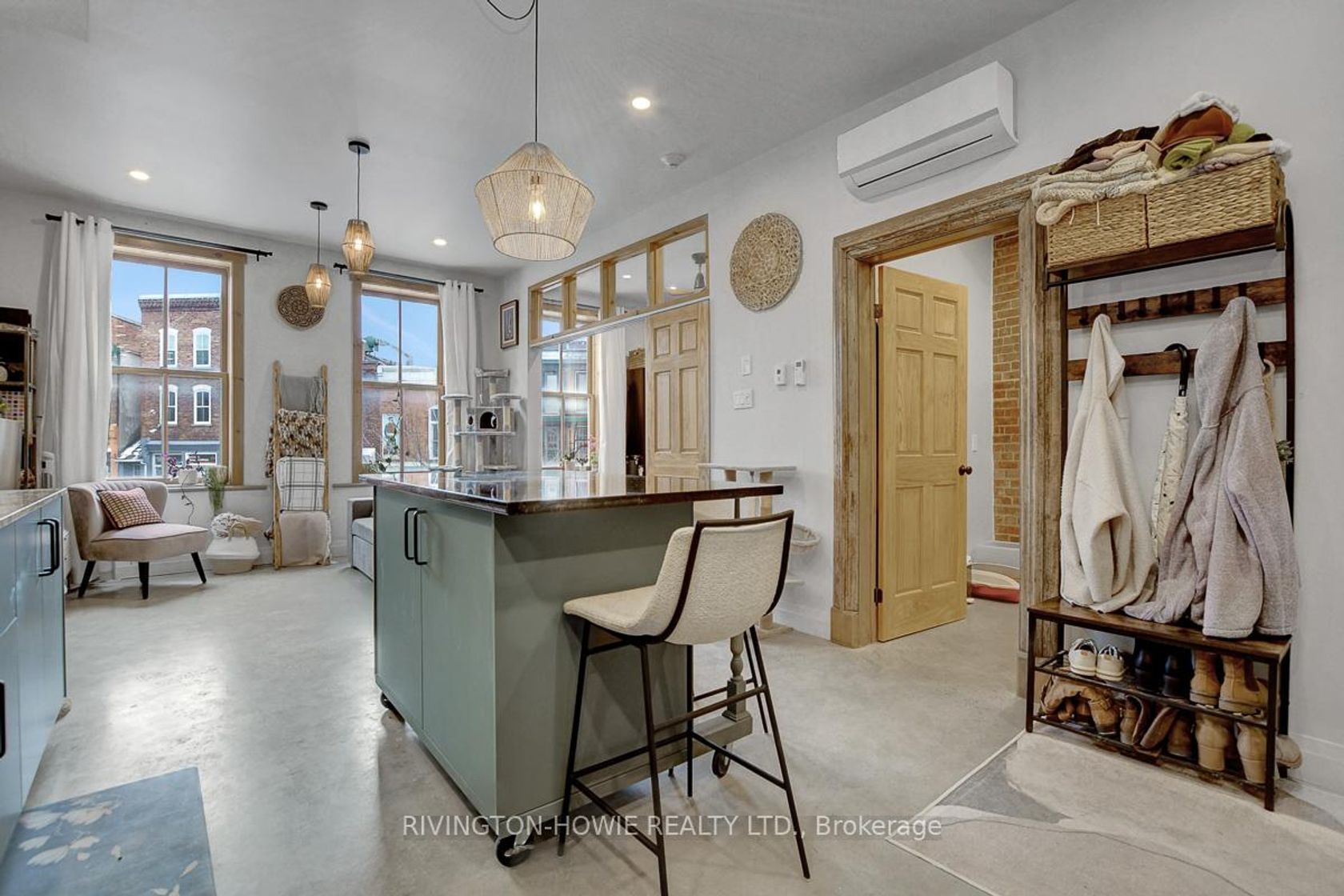 Welcome to 65 Mill Street, Unit 203 - where modern comfort meets historic charm in the heart of downtown Almonte. This beautifully designed 512 sq ft second-floor condo showcases exposed original brick, polished concrete floors, and soaring ceilings with recessed lighting, all complemented by picturesque street views. The kitchen is both stylish and functional, featuring granite counters, stainless steel appliances, ample cabinetry, open shelving, and a large central island with breakfast bar seating-perfect for everyday living and entertaining. The bright bedroom offers sliding barn-style doors for added privacy, while the 4-piece bathroom blends contemporary finishes with warm, rustic elements, complete with a soaker tub/shower, vessel sink, and sleek fixtures. In-suite laundry, air conditioning, and radiant in-floor heating add to the comfort and convenience. Enjoy the unbeatable location-just steps to Almonte's vibrant main street, with its fantastic restaurants and pubs, local bakery, butcher shop, and unique specialty stores. An excellent opportunity for first-time buyers, downsizers, or investors seeking a stylish, low-maintenance condo in a walkable and highly desirable community. This is the perfect place to call HOME!