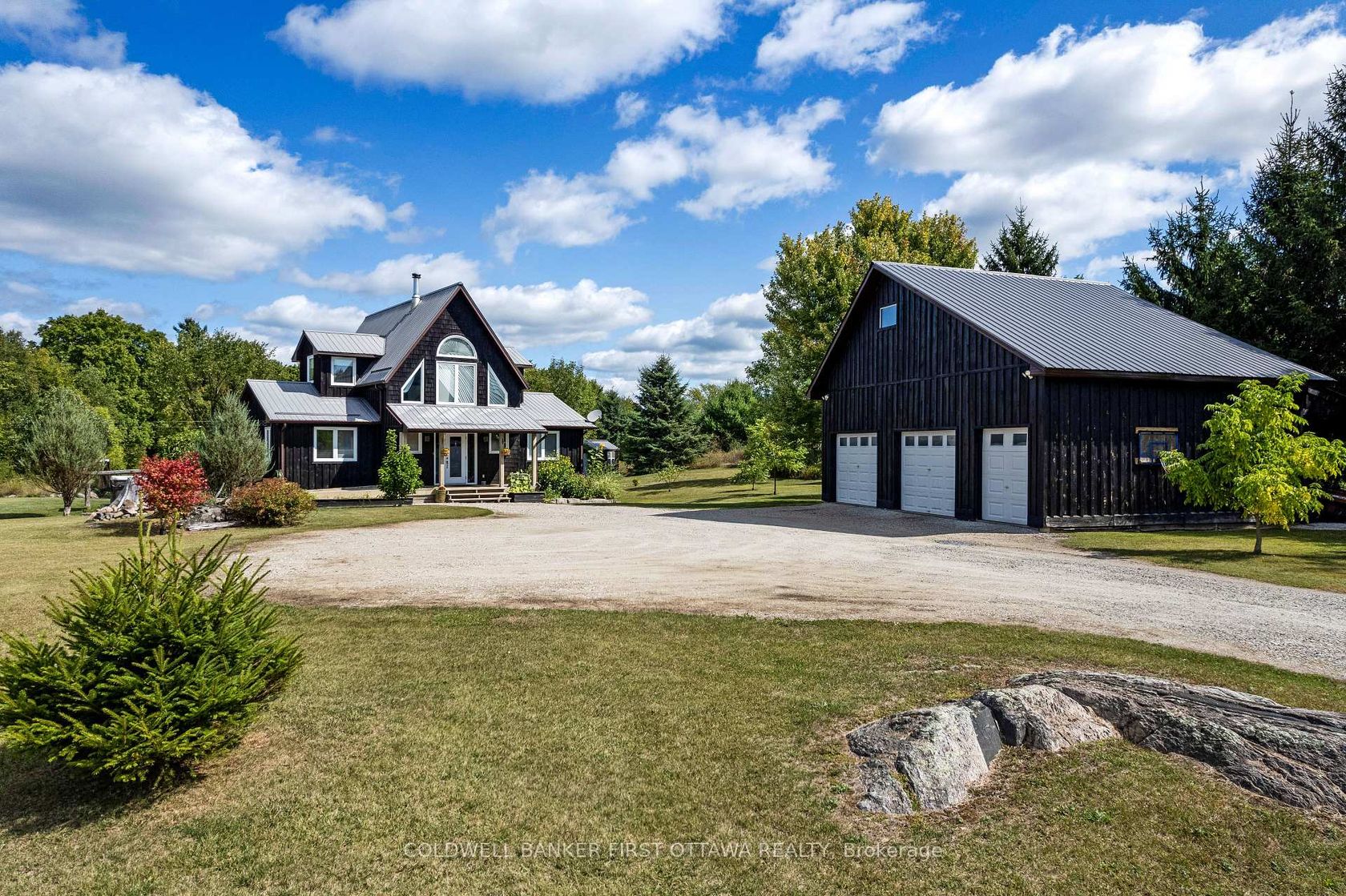 Every spring, the maples wake up on this 29 acre haven before anything else. The sellers have been tapping them for years - buckets on the trees, syrup boiling down over an outdoor burner - and that ritual is yours now if you want it. Trails wind through the mature hardwood bush behind the house, a bountiful forest abundant with wildlife, native plants, and an endless supply of firewood your family will enjoy for decades to come. The home is warm, well-built, and designed for comfort: built in 2005, three bedrooms up including a primary with its own ensuite and soaker tub, a kitchen and dining space that invites people to linger, and a walkout lower level with a fourth bedroom or office. Heat is never a concern. Electric forced air handles the baseline, and the woodstove, tied directly into the ductwork, can warm the whole house from one fire. And then there is the garage. Three bays. Timberframe construction. A loft above. It is the kind of structure that stops people mid-step when they first see it. Ideal for a woodworker, a mechanic, a collector, or anyone with a serious hobby, this garage will make you realize you have been compromising your whole life. It is not an add-on. It is a destination. The location completes the picture. Swim in the clean, deep, fast-moving water of the Mississippi River just three minutes away. Blue Heron Golf Club is four minutes down the road. Perth is twelve minutes away. Kanata is forty-five. Far enough to feel like you've left. Close enough that you actually will. Land with character, a home worth coming back to, and a garage that exceeds every expectation. If the idea of tapping your own maples next March is more than a passing thought, come see this house before someone else does.