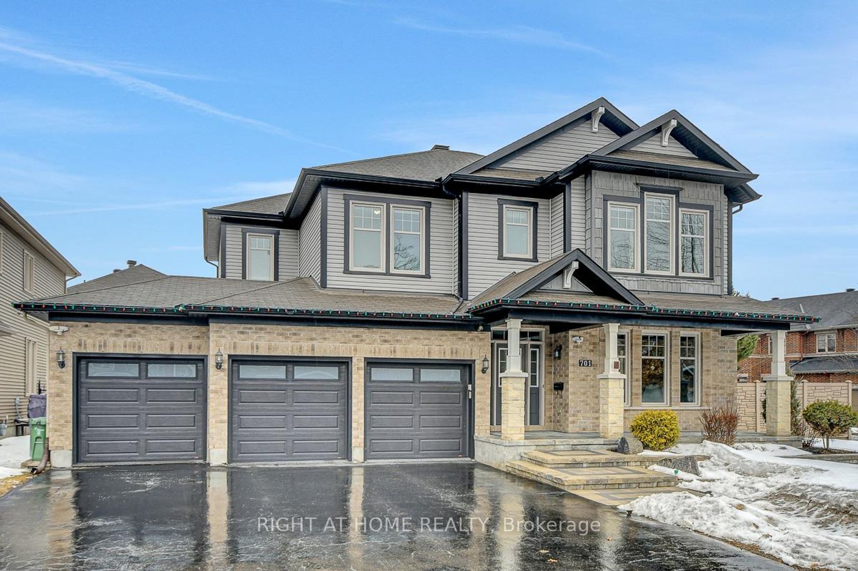 Welcome to this stunning 2 storey home set on a premium oversized corner lot in one of Ottawa's most desirable family-friendly communities. This beautifully maintained residence offers exceptional curb appeal, a rare triple car garage, and over-the-top upgrades that truly set it apart. Step inside to a bright and elegant main floor featuring upgraded hardwood flooring, a thoughtfully designed layout, and a high-end kitchen complete with custom cabinetry, granite countertops, stainless steel appliances, and a sleek hood vent. The attention to detail continues throughout the home, with quality finishes, upgraded fixtures, and large windows dressed with premium Hunter Douglas blinds, filling the space with natural light.Upstairs, you'll find 4 spacious bedrooms with newly upgraded hardwood flooring throughout. The primary suite offers a luxurious retreat with a custom walk-in closet organization system and a private ensuite bath. The remaining bedrooms are exceptionally well served by two additional 3-piece bathrooms, providing comfort and convenience for family and guests alike. A second-floor laundry room adds everyday practicality, making daily routines seamless and efficient. The fully finished basement offers incredible additional living space, including a large recreation room, a full bathroom, and a generously sized bedroom-perfect for guests, extended family, or a private retreat.Outside is where this home truly shines. The backyard is a private oasis, fully fenced with composite fencing and professionally landscaped. Enjoy summer days on the multi-level composite deck with gazebo, unwind in the hot tub, or relax among mature trees and thoughtfully designed outdoor spaces. The front yard features extensive interlock landscaping, enhancing the home's already impressive curb appeal. This is a rare opportunity to own a meticulously upgraded, move-in-ready home that offers space, luxury, and lifestyle-all in one exceptional package.