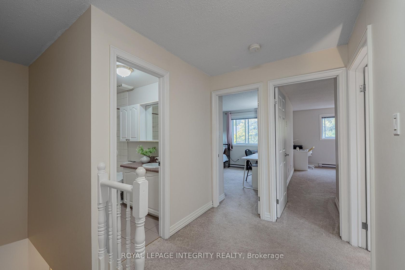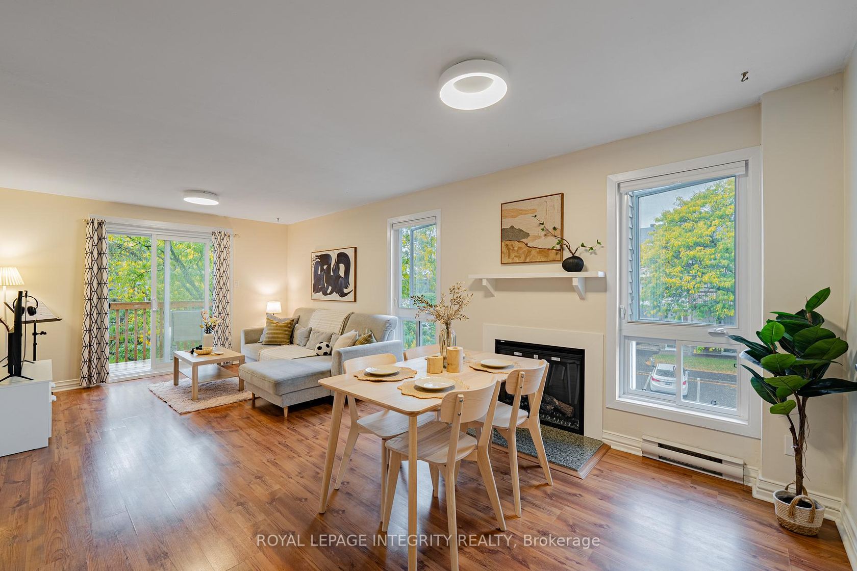 Welcome to 400 Fenerty Crt! This bright and spacious 3-bedroom, 2-bath upper-unit condo offers a well-designed kitchen and a generous living/dining area flooded with natural light from large windows and a patio door. A new electric fireplace adds cozy ambiance perfect for quiet nights or family gatherings. The main level includes a convenient storage room, in-unit laundry, and a 2-pc bath; upstairs you'll find three good-sized bedrooms with excellent closet space and a 3-pc family bath. Upgrades: washer & dryer (2023), new paint and carpet (2023). Prime location just minutes to Hwy 417, close to schools, parks, shopping, and more an ideal opportunity for first-time buyers, investors, or down sizers. A must-see! Photos were taken before the furniture was removed.