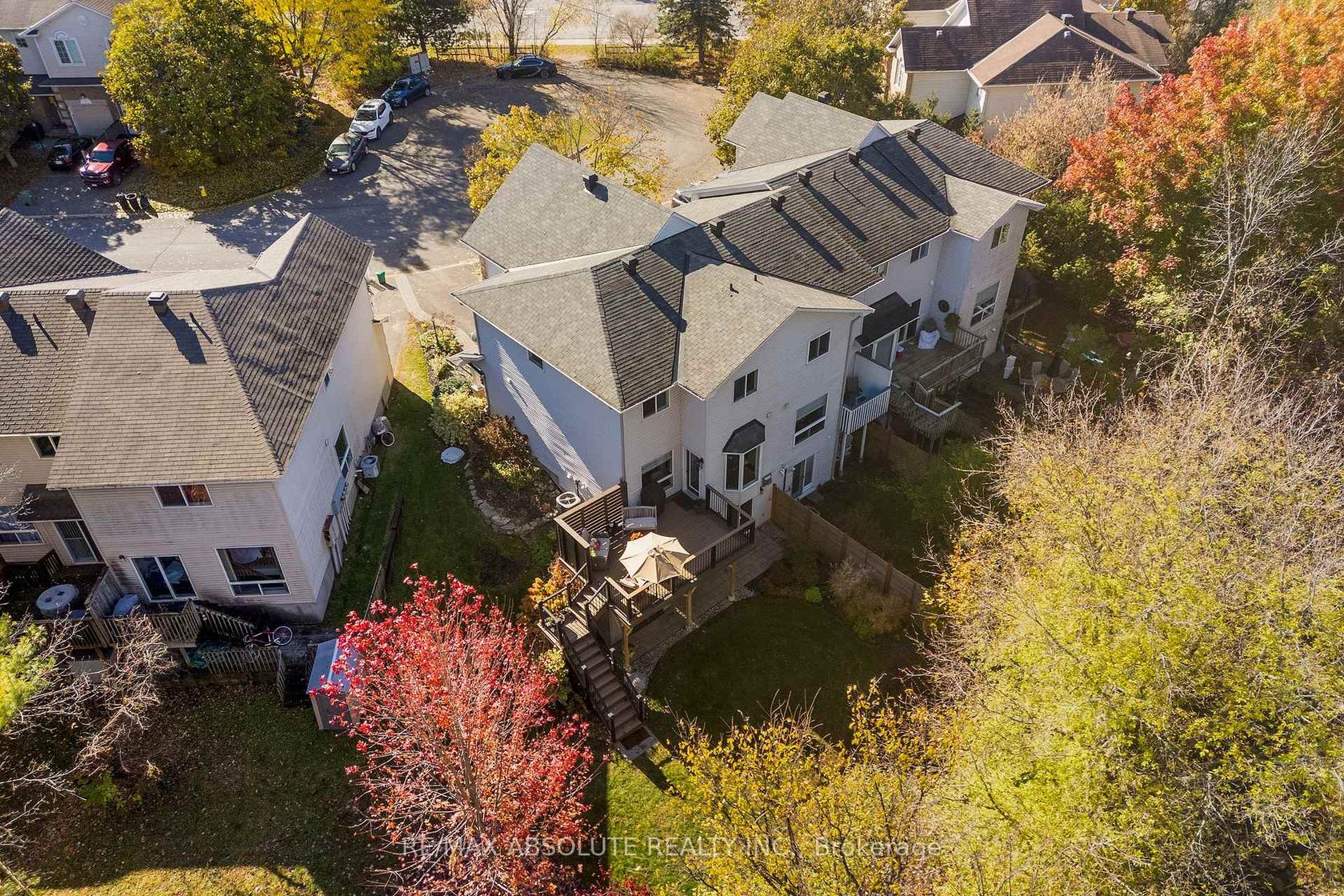 Welcome to 23 Riverbank Court-an exceptional Holitzner end-unit townhome set on a premium, fully fenced lot backing onto Poole Creek. This rare offering combines privacy, natural beauty, and extensive updates, all within walking distance to local amenities. Enjoy the outdoors from the spacious second-storey composite deck-an ideal setting to relax and take in the sights and sounds of nature. The beautifully landscaped yard provides a safe and secure space for children and pets to play. Inside, there are tasteful renovations throughout. The main and second levels feature bleached oak flooring, complemented by a hardwood staircase. The main floor boasts a stylish eat-in kitchen with quartz countertops, set against natural slate flooring. A full-length bay window in the breakfast nook frames peaceful, treed views. The dining area offers built-in banquette seating with convenient storage, maximizing both function and style. A welcoming living room and a updated powder room complete the main level. Upstairs, the sun-filled second floor features a primary retreat with a cathedral ceiling, walk-in closet, and a beautifully renovated ensuite. The spa-inspired bathroom includes a large low-threshold shower with rain shower head, ambient lighting, and custom built-ins. Two additional bedrooms offer tranquil views, including one with a Murphy bed. A versatile office or fourth bedroom adds flexibility for modern living. These rooms share a fully renovated main bathroom featuring a deep soaker tub with shower. The bright, walk-out lower level extends the living space with a cozy natural gas fireplace, a laundry/utility area, and storage room. Sliding doors lead to a covered patio, complete with an oversized storage shed. Located in a quiet, sought after cul-de-sac, this home is part of a friendly, established community. It truly offers the best of both worlds: everyday convenience and a private natural oasis in the heart of Stittsville.