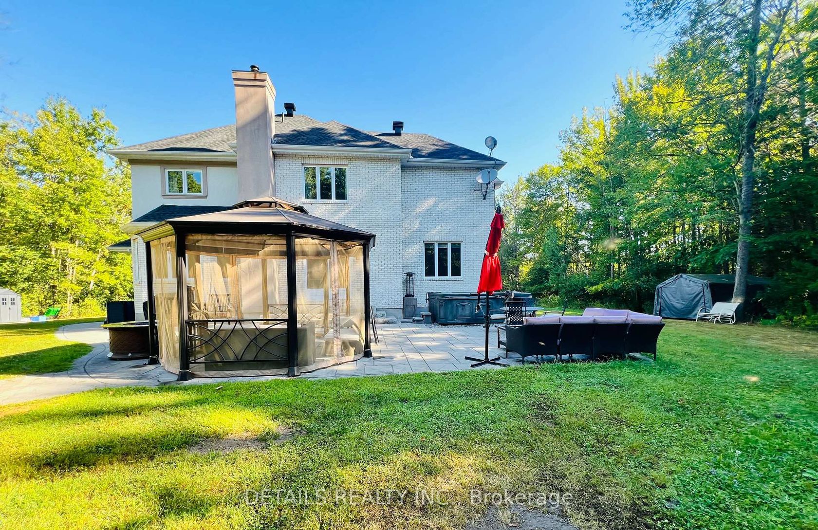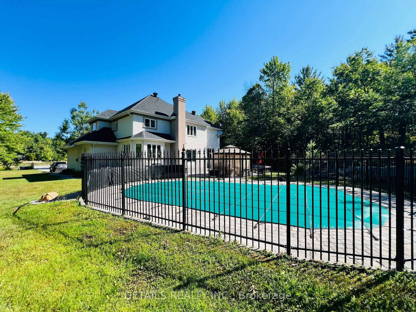 Welcome to your dream home in sought-after Kanata north! This beautiful place of retreat is in prestigious Saddlebrooke Estates with around 3.6 acres of private treed property with Canadian shield outcroppings. Outside, this elegant home boasts an impressive stamped concrete long 12-car 2-lane driveway with stone pillars and walls, with an entertainment galore backyard that features an extensive stamped concrete patio, an armour-stone landscape, a heated in-ground pool, hot tub, and a private basketball court. Step inside, this custom-built residence offers 5 bedrooms and 4 baths. Be greeted by the 2-storey bright spacious foyer with the grand chandelier and gleaming large bright ceramic tiles and hardwood floors throughout. The updated (2025) 2-tone gourmet kitchen boasts granite countertops, stainless steel appliances, pantry, and a large 4 ft quartz breakfast island perfect for family gatherings. Enjoy the sun-filled Great room with wall-to-wall windows for relaxing get-togethers. The Living room features an elegant fireplace and lots of natural light pours through the abundant 9 ft Palladian window overlooking the grand view of the expansive front property. The main level also includes a dining area, a spacious office with bright bay windows, a spacious laundry/mud room, and a heated garage. The 2nd floor includes the Primary bedroom with a 5-pc ensuite bath featuring a huge tub, shower, double sinks, heated floors, and a walk-in closet. The upper floor also includes 3 additional bedrooms and a full bath. The lower level features a bedroom, a full bathroom, a library, a recreation area, and storage rooms. Don't miss this opportunity, book a showing!