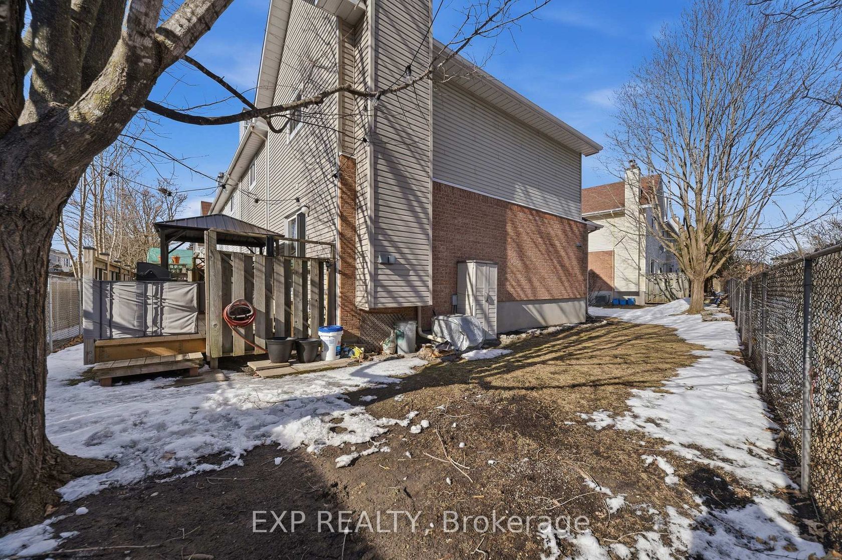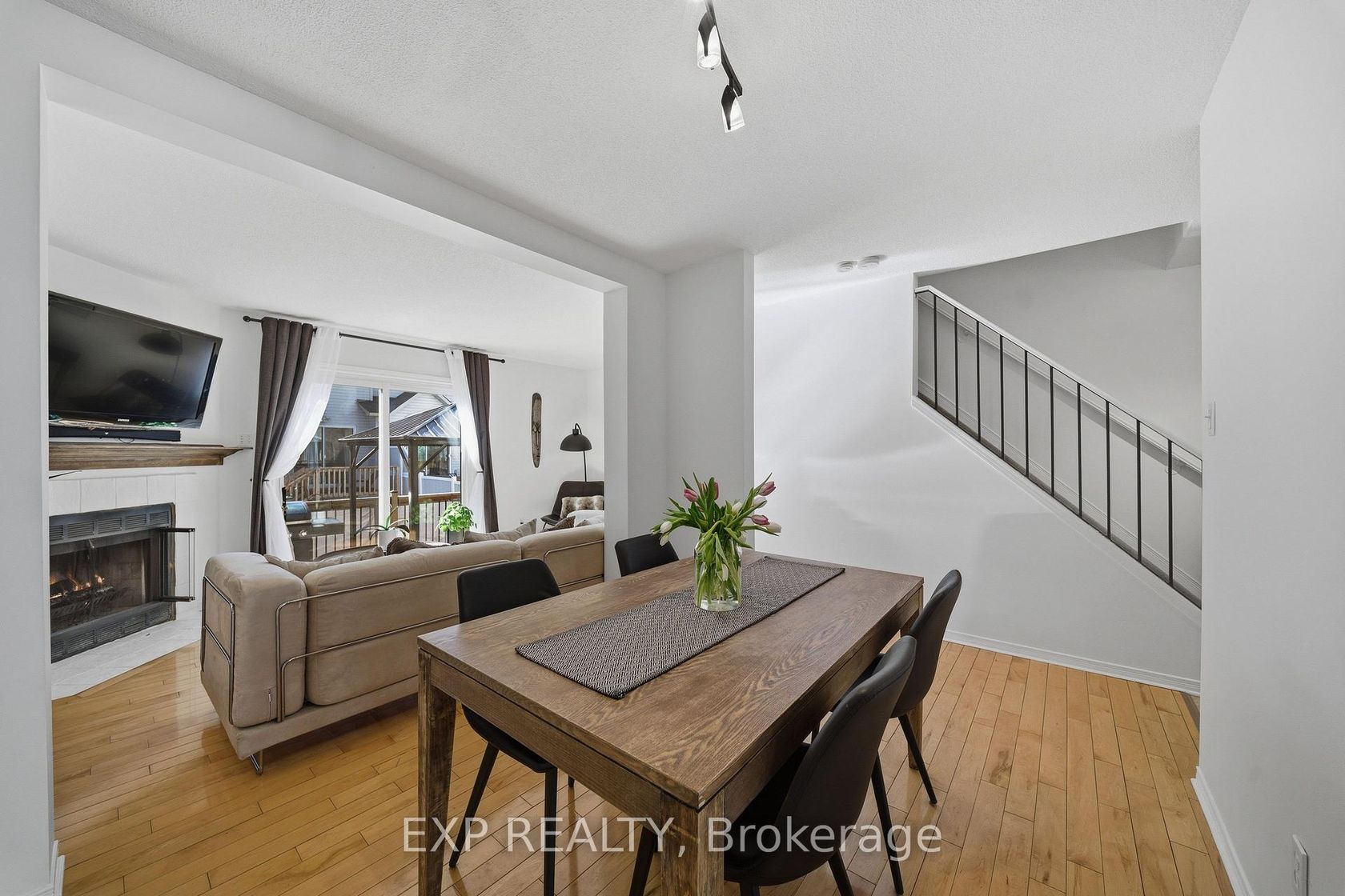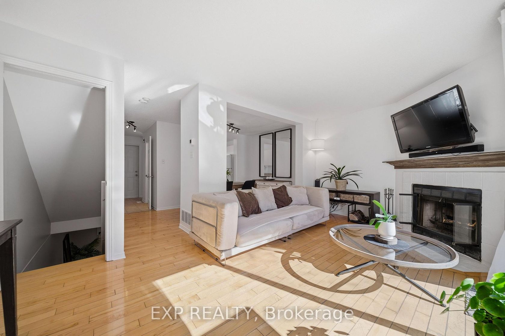 Situated on a quiet court, this inviting 2-bedroom, 2-bathroom end-unit condo townhome offers comfort, functionality, and added privacy. The bright main level features a dedicated dining area, a spacious living room with a cozy wood-burning fireplace, and walk-out access to the fully fenced rear yard with deck - perfect for relaxing or entertaining. The eat-in kitchen and convenient powder room complete the main floor. Upstairs, you'll find two generously sized bedrooms with large closets and a well-appointed 3-piece bathroom. The fully finished basement adds valuable living space with a large recreation room and ample storage. Ideally located close to shopping, parks, and transit, this home is a fantastic opportunity for first-time buyers, downsizers, or investors looking for a well-maintained property in a desirable setting.
